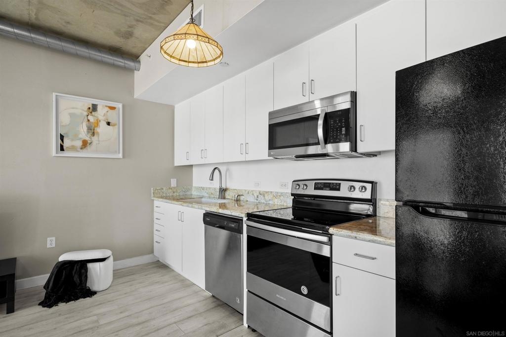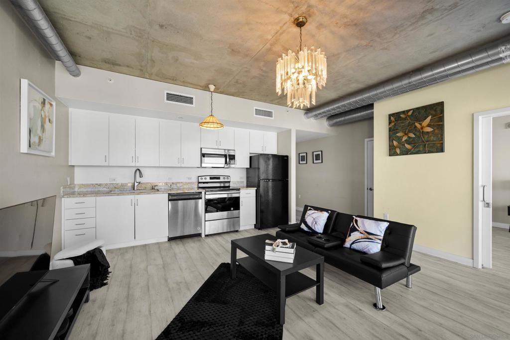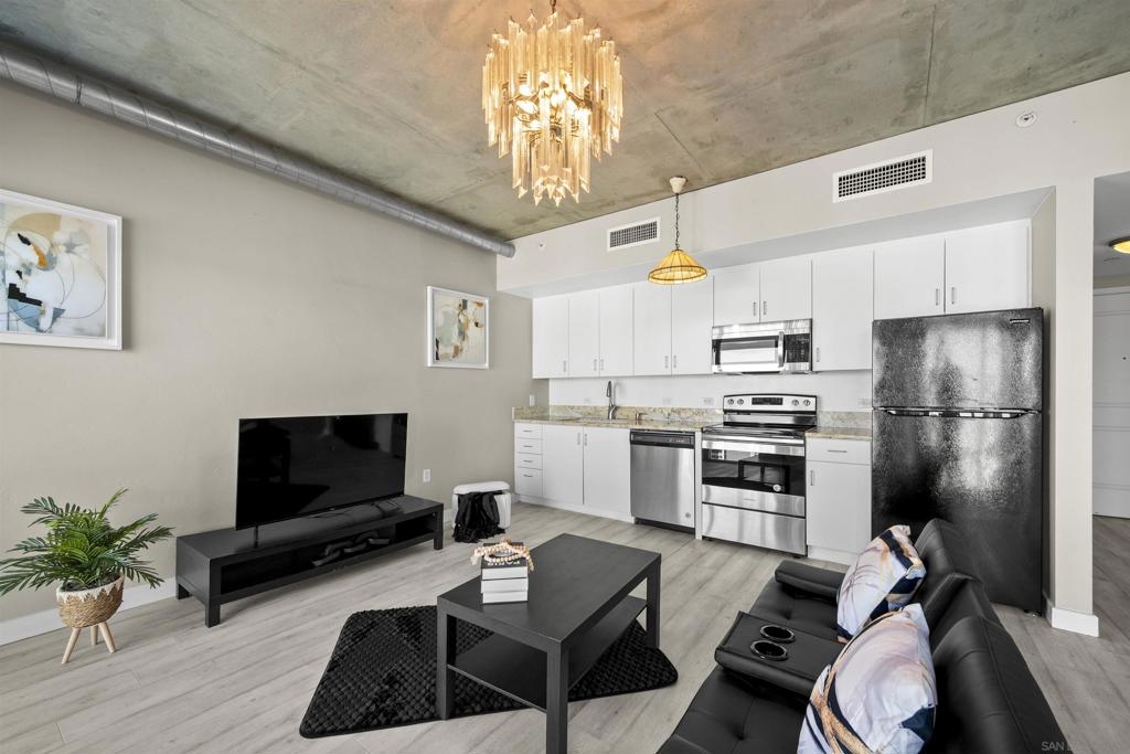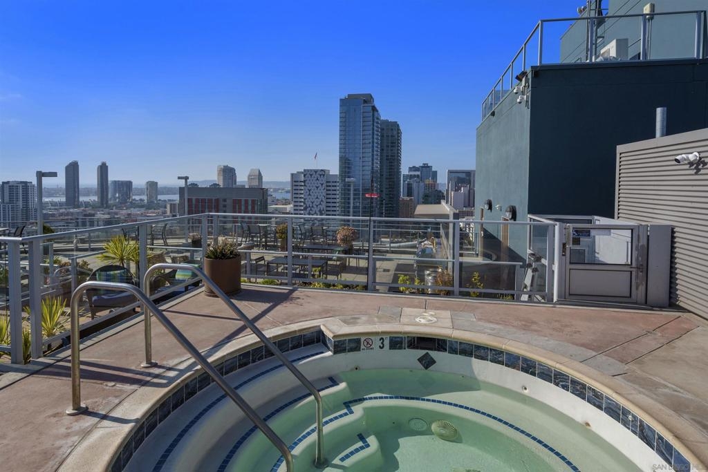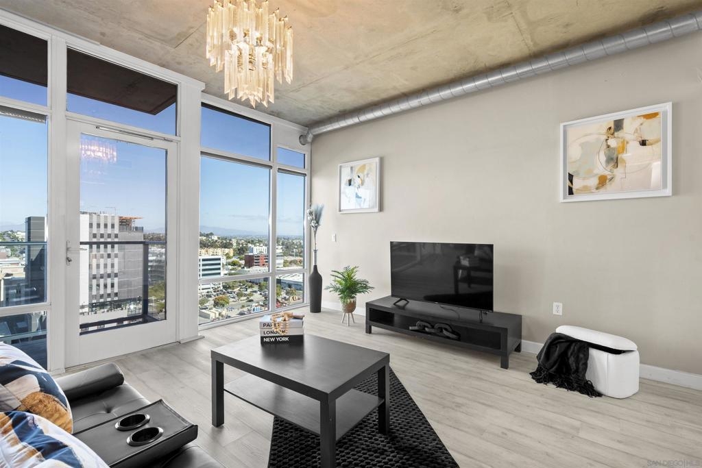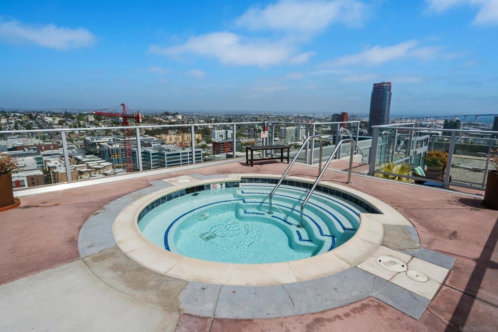 Welcome to your move in ready downtown retreat! This immaculate 1 bed 1 bath residence offers floor to ceiling windows, and a balcony with striking city views. The kitchen is appointed with stainless steel appliances and generous cabinetry, while high ceilings, in unit laundry, and quality finishes create a stylish yet practical living space. Enjoy resort style amenities including a rooftop deck with spa, barbecue areas, lounge seating, a fitness center, secure underground parking, and 24 hour building access. Perfectly situated just steps from the trolley and moments from Petco Park, Gaslamp Quarter, Balboa Park, and the airport, with quick connections to major freeways. An ideal choice for a primary home, vacation retreat, or investment. VA approved!