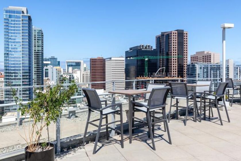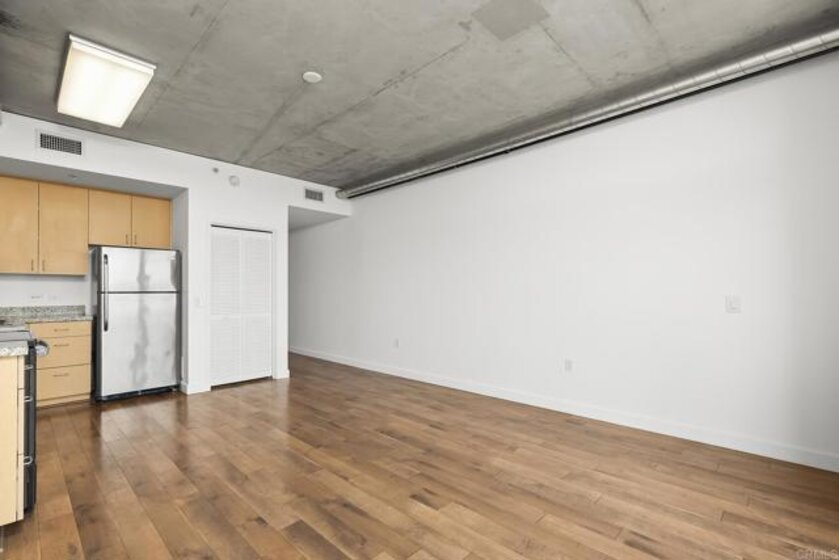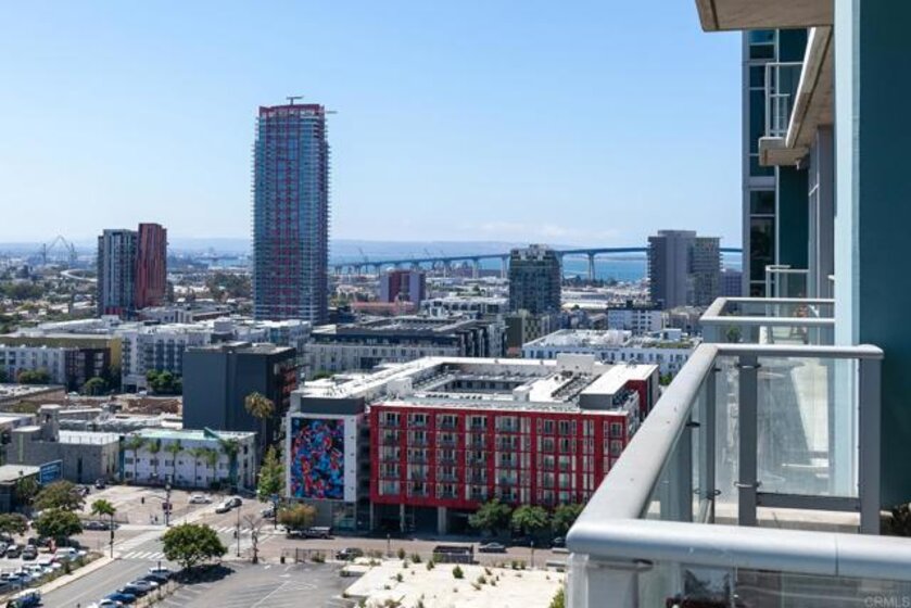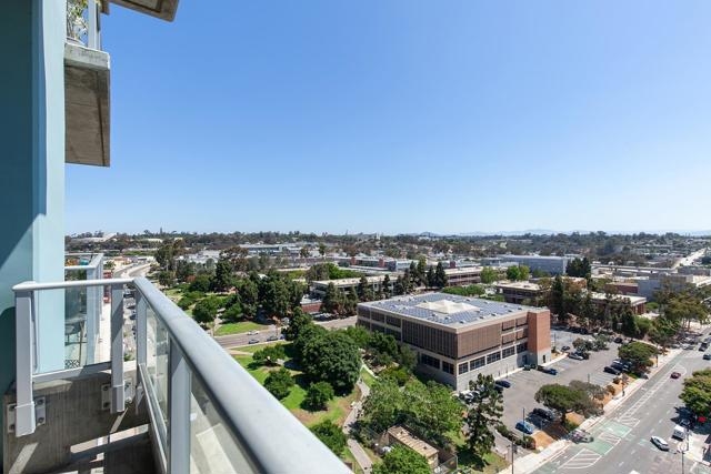 Welcome to the 15th floor of Smart Corner, where modern design meets unbeatable city views. This studio features an open-concept layout, perfect for today’s lifestyle. Industrial-chic touches like exposed concrete, sleek hardwood flooring, and floor-to-ceiling windows create a bold, contemporary feel. Step out onto your private balcony and take in panoramic vistas of Balboa Park, the mountains, Coronado Bridge, and beyond. The unit comes equipped with a refrigerator, dishwasher, electric range, in-unit washer and dryer, and includes one underground parking space. Smart Corner residents enjoy exclusive access to a spectacular rooftop lounge featuring BBQ grills, a hot tub, and a community garden all set against sweeping skyline and ocean views. Located next to City College with immediate access to the Trolley and major freeways, this VA-approved building puts the entire city within reach. Don't miss your chance to live in one of East Village’s most desirable high-rises where style, convenience, and views come together.