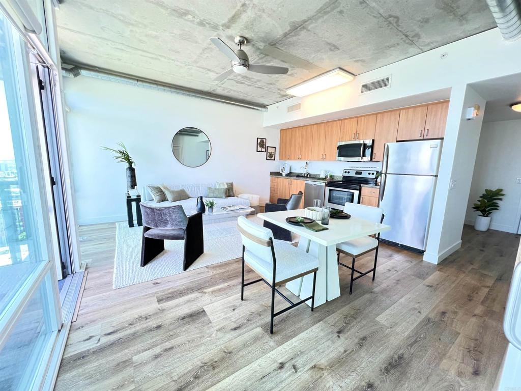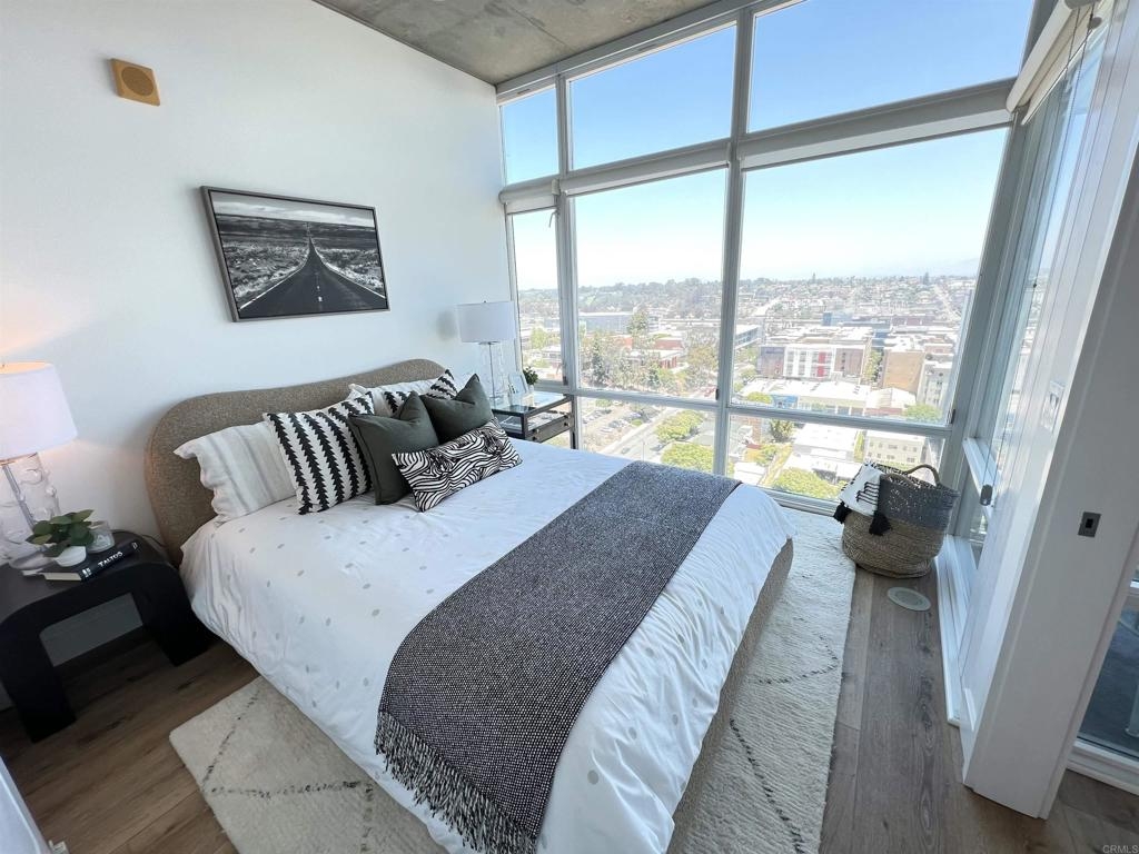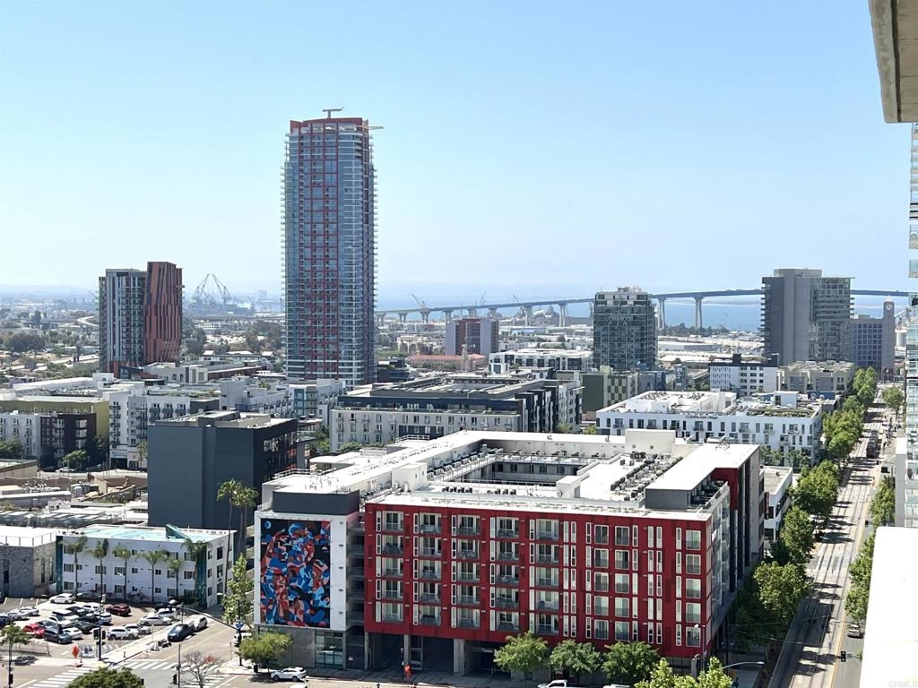 Seller to accept offers subject to cancellation of the current escrow. Enjoy the San Diego downtown lifestyle from this open and vibrant 15th level condo with floor-to-ceiling windows offering sweeping easterly views including the Coronado bridge. This industrial-chic design with concrete accents and exposed ducting features a separate bedroom with custom closet, roll-down shades, private balcony, new laminate wood flooring, granite counter tops, Frigidaire stainless steel appliances, Bosch dishwasher, Aquasana water filtration system, stacked washer/dryer and electric Brondell bidet/tiolet. Amenities include on-site fitness center with showers/bathrooms, a rooftop entertaining area with lounge chairs, two barbeques with prep sink/area, and open spa over looking most of the city. Easy to access to I-163, I-5 and I-94 freeways and just steps to the trolley station. Short drive to the San Diego Airport and just one block walk to City College. Close proximity to dining hot spots in downtown Gaslamp, Barrio Logan, Little Italy or South Park areas as well as SD's own paramont Petco Stadium and Balboa Park. This condo has one assigned parking space within gated parking and 24 hour secure building access.