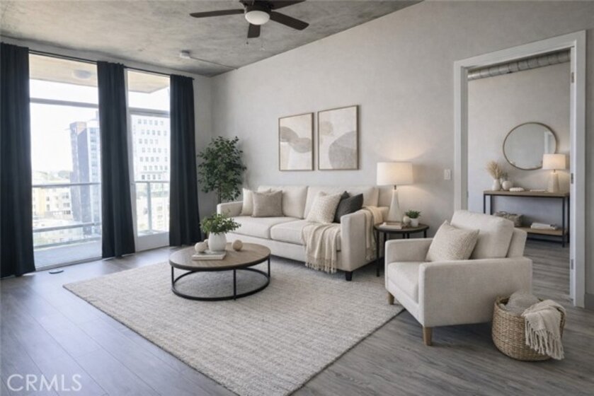 Experience elevated urban living in this stunning residence located in the highly sought-after Smart Corner community in downtown San Diego’s vibrant East Village. This spacious 1-bedroom, 1-bath condo offers approximately 748 square feet of modern living space with floor-to-ceiling windows that flood the home with natural light and showcase sweeping city skyline and Balboa Park views. The open-concept floor plan seamlessly connects the living, dining, and kitchen areas, creating the perfect setting for both everyday living and entertaining. Step out onto the private balcony to enjoy fresh air and panoramic urban scenery. The well-designed layout offers comfortable bedrooms, ample storage, and contemporary finishes throughout. Residents of Smart Corner enjoy resort-style amenities including a rooftop terrace with spa, BBQ areas, and breathtaking panoramic views of downtown San Diego. Additional highlights include a fitness center and secure building access. Ideally located just steps from the San Diego Trolley, this home offers unbeatable convenience with easy access to Petco Park, the Gaslamp Quarter, restaurants, shopping, and entertainment. This is downtown living at its finest—where lifestyle, location, and modern design come together.