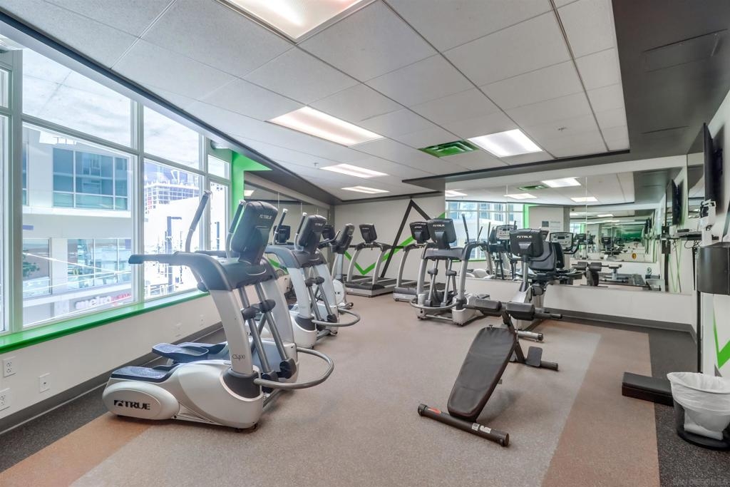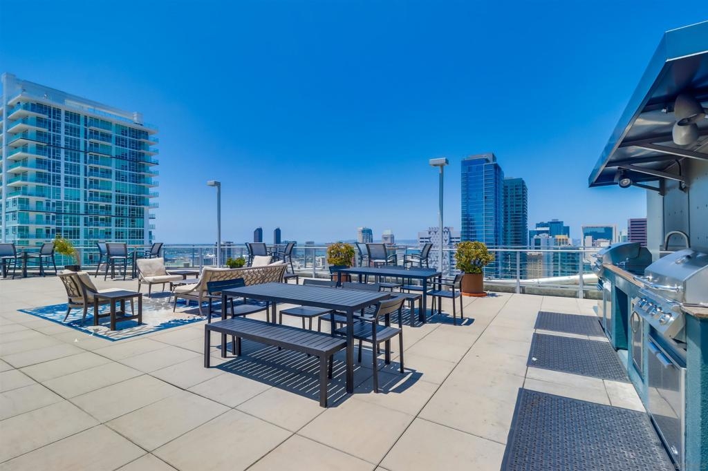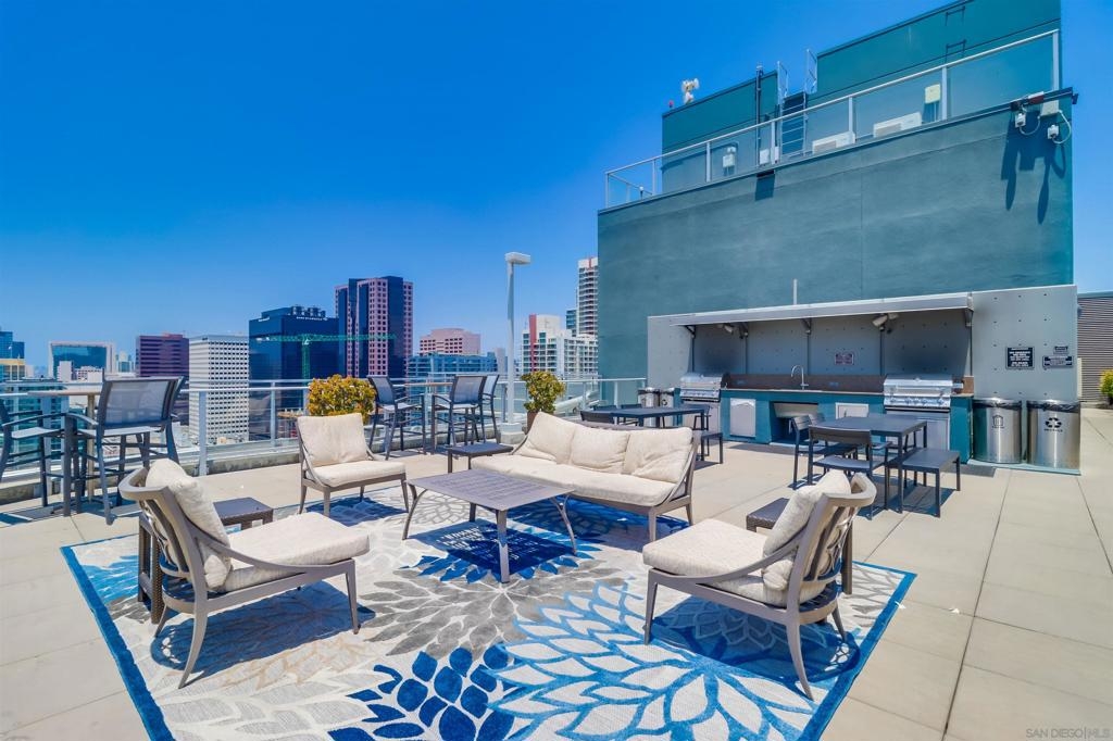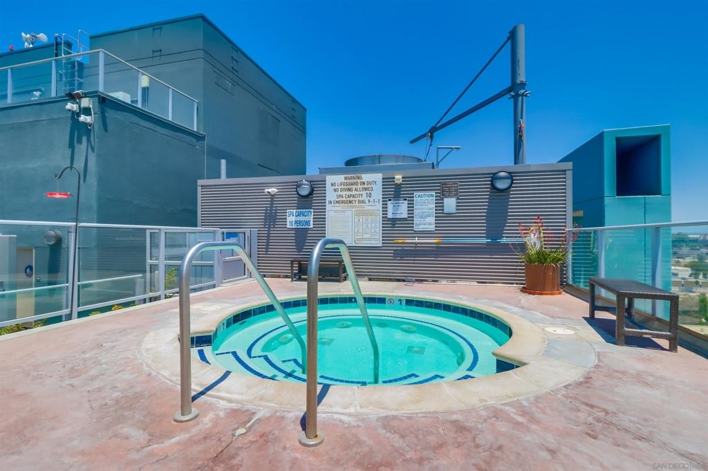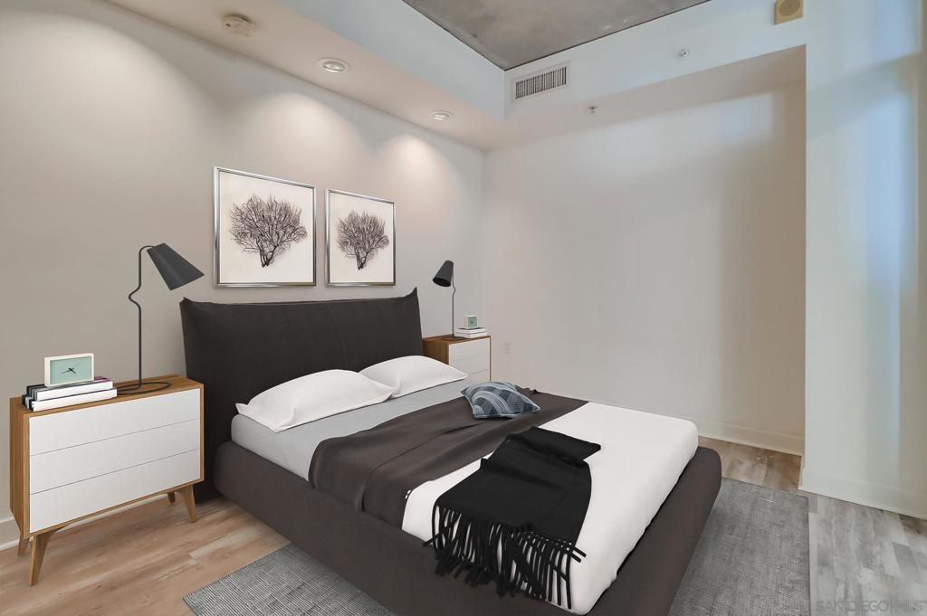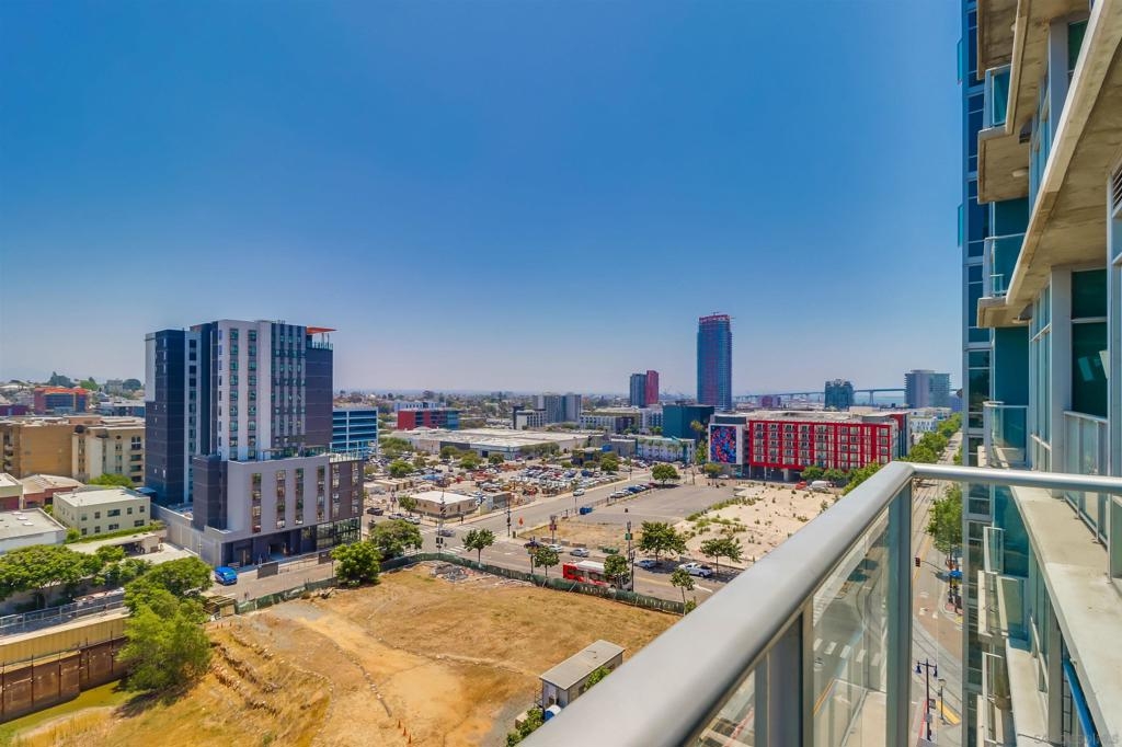 Urban chic at an incredible value! This immaculate 1-bedroom condo features tall ceilings, concrete accent walls and ceilings, exposed A/C ducts, a wall of windows, wood floors, and a light-filled den perfect for a home office. Enjoy a gourmet kitchen with European cabinets and granite counters, custom shelving, a private balcony, and in-unit washer/dryer. Includes secured garage parking. Amenities: rooftop terrace, spa, gym, 24-hour security. Walk to top dining and shopping! Has been a successful rental for our sellers. Downtown urban chic at an unbeatable price! This immaculate 1-bedroom condo blends industrial charm with modern comfort, featuring concrete accent walls and ceilings, exposed A/C ducts, tall ceilings, warm wood floors, a wall of windows, and abundant natural light. A spacious, sun-filled den offers the perfect home office. The gourmet kitchen shines with European cabinetry, granite countertops, and custom shelving. Enjoy a private balcony, in-unit washer/dryer, and a secured garage parking space. Building amenities are top-tier: a 20th-floor rooftop terrace with outdoor kitchen and dining, a spa/hot tub with views of Balboa Park, sundeck with loungers, a fully equipped fitness center, and 24-hour security for peace of mind. Centrally located with easy access to major highways, the airport, Balboa Park, and San Diego’s beautiful beaches, this home places you in the heart of it all. Just steps to downtown’s best restaurants, shops, and vibrant nightlife—this is stylish city living at its finest.