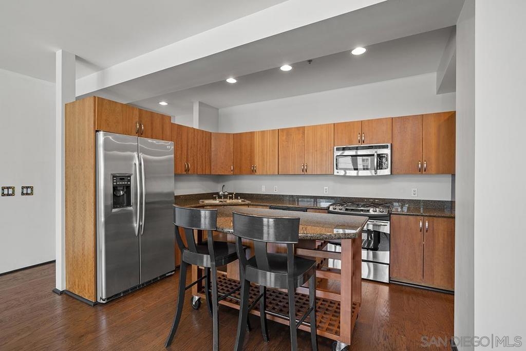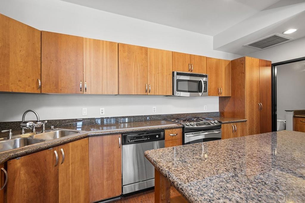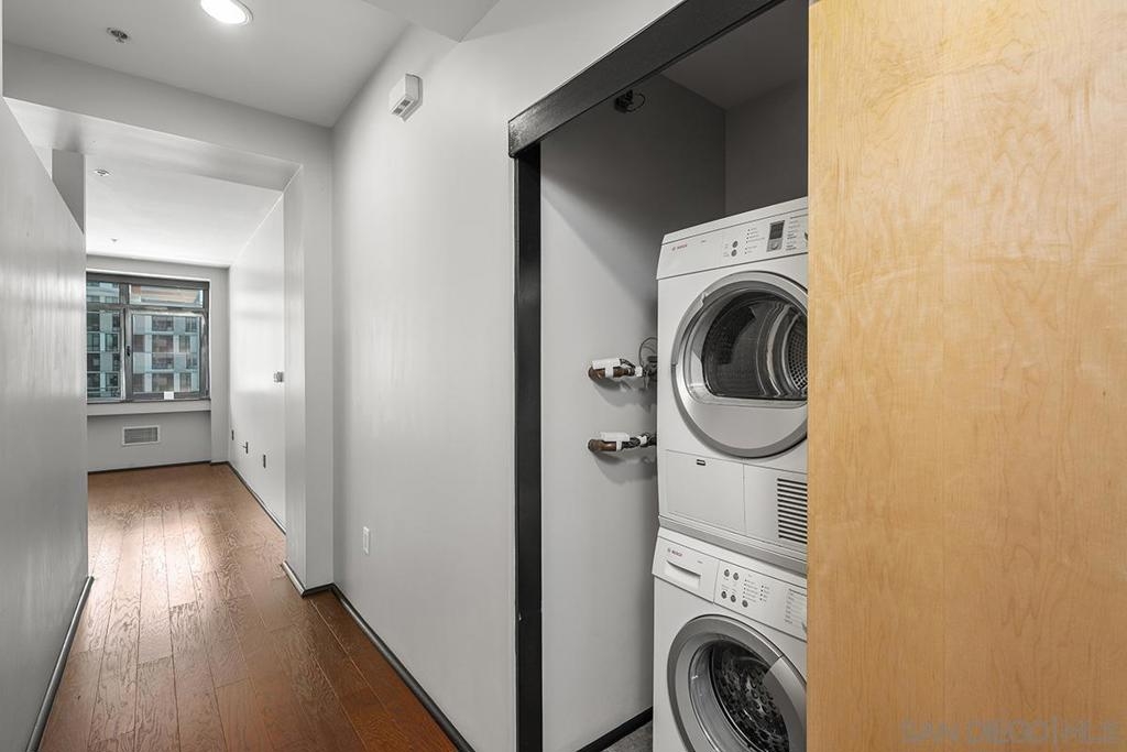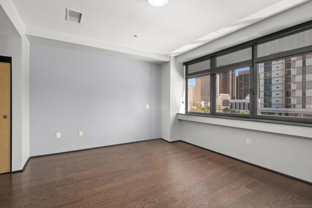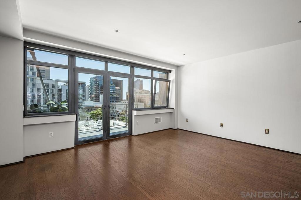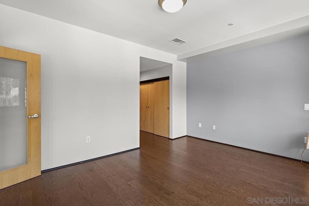 Modern Downtown living can be yours from this end-unit at Solara Lofts with 2 parking spaces and amazing storage! Nearly 1200 square feet with a large balcony & dramatic city views! This rarely available oversized 1 bedroom/1.5 bath floor plan features a coveted glass-door enclosed den – perfect flex space for use as a formal dining room, office or optional 2nd bedroom. South-facing for ideal light with banks of high-end sound attenuating European windows and French doors create an urban sanctuary. Professionally customized “California Closets” and an extra-large storage unit too (twice the size of most). The open kitchen features granite countertops, stainless appliances, and a moveable island for added convenience. Solara Lofts features a well-equipped gym, bike storage, racquetball courts, and LOW HOA DUES! VA Approved! Solara Lofts is an all-encompassing hub of work and play! Ideally nestled in the desirable Cortez Hill neighborhood near beautiful Balboa Park, residents enjoy walking distance to all the benefits of Little Italy, Banker's Hill, San Diego Bay, and the historic Gaslamp Quarter -- without the chaos of traditional urban living. This pet-friendly community features a well-equipped fitness center, the only racquetball courts in a condo building in all of Downtown San Diego, secure bike storage, and rare GUEST PARKING! With easy access to both the 5 and 163 freeways, your commute will be a breeze!