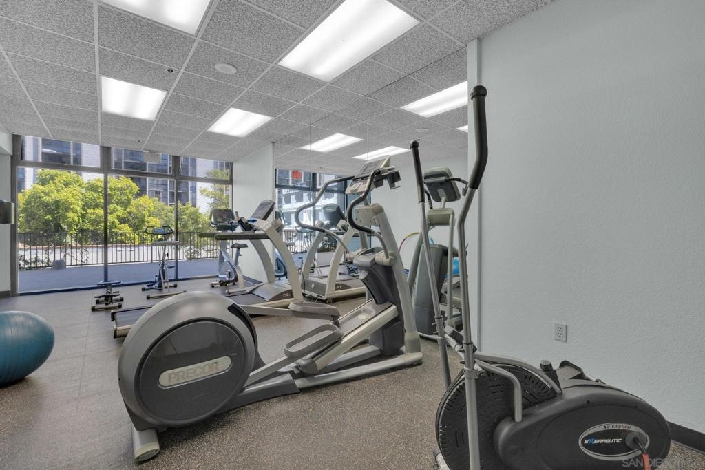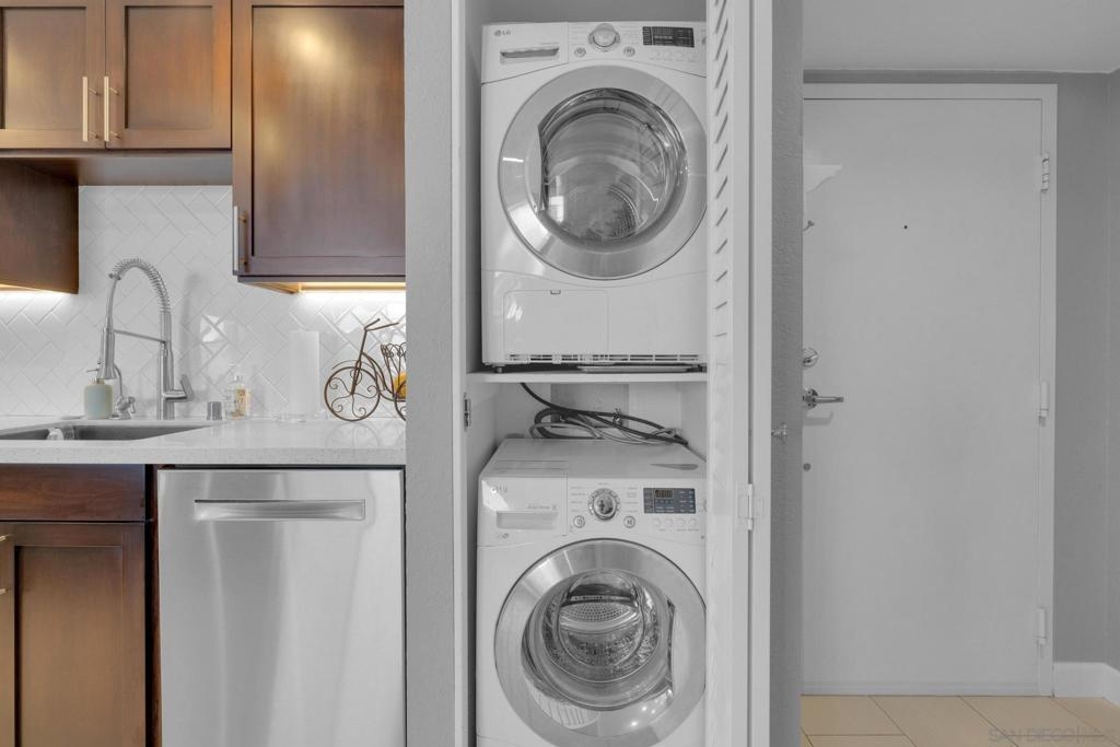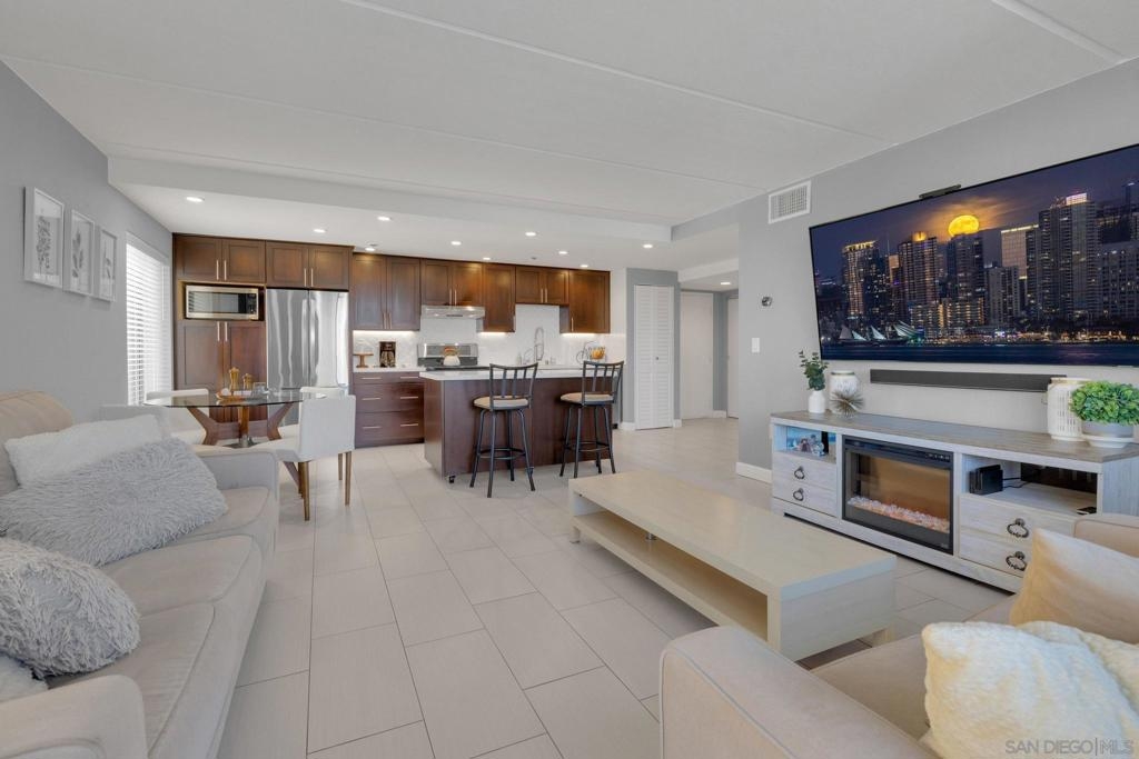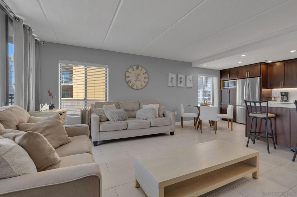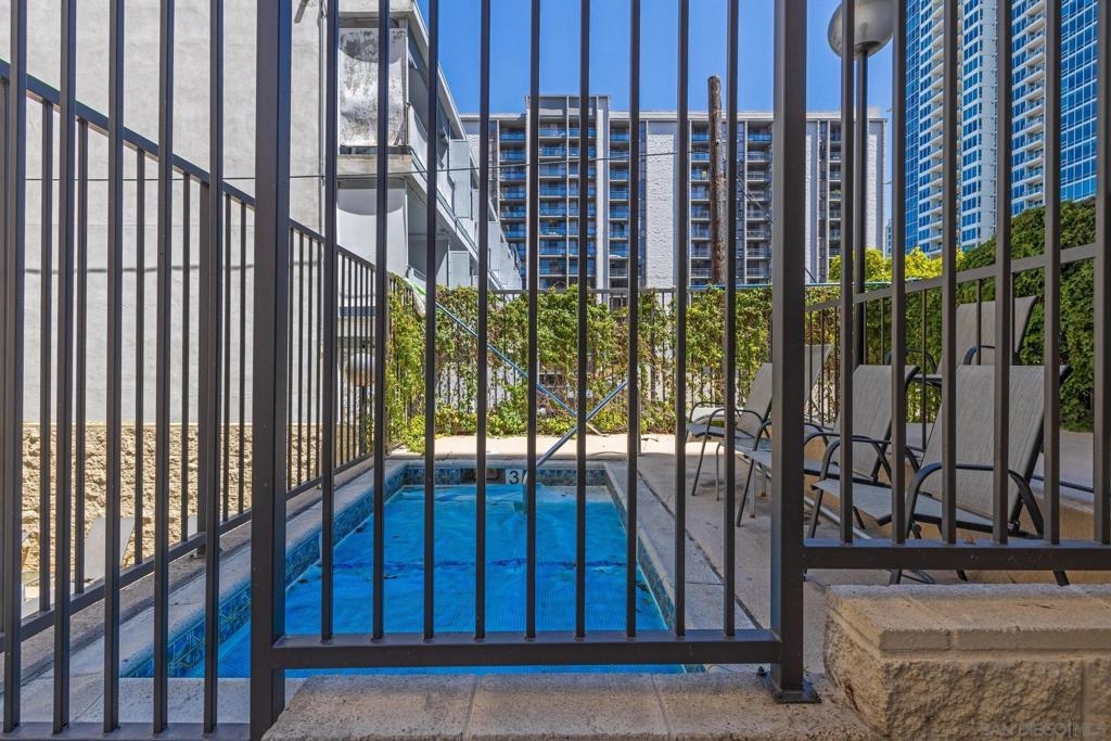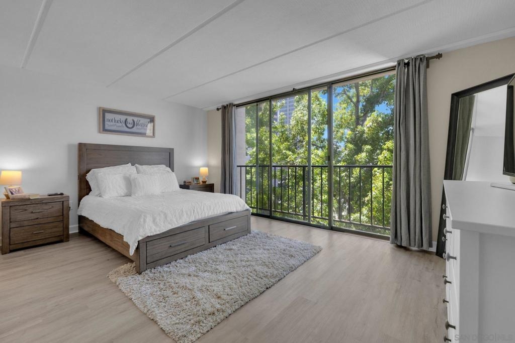 Welcome to Symphony Terrace in the Cortez Hill neighborhood of downtown San Diego. Enjoy the cool cross breezes in this Northwest corner location with a lot of natural light and great city views from the living room and balcony. The primary bedroom has lovely views of the tree tops. Modern, classic finishes like quartz countertops, contemporary appliances, and tile flooring have been upgraded in this home. There is a walk-in shower and closet in the main suite. There are two parking spots and a storage locker included. Fantastic building features include a guest suite, sizable lobby, pool, fitness center, sauna, steam room, bike room, and a poolside barbecue. Cortez Hill offers easy freeway access and is a short walk to Little Italy and the Gaslamp Quarter.