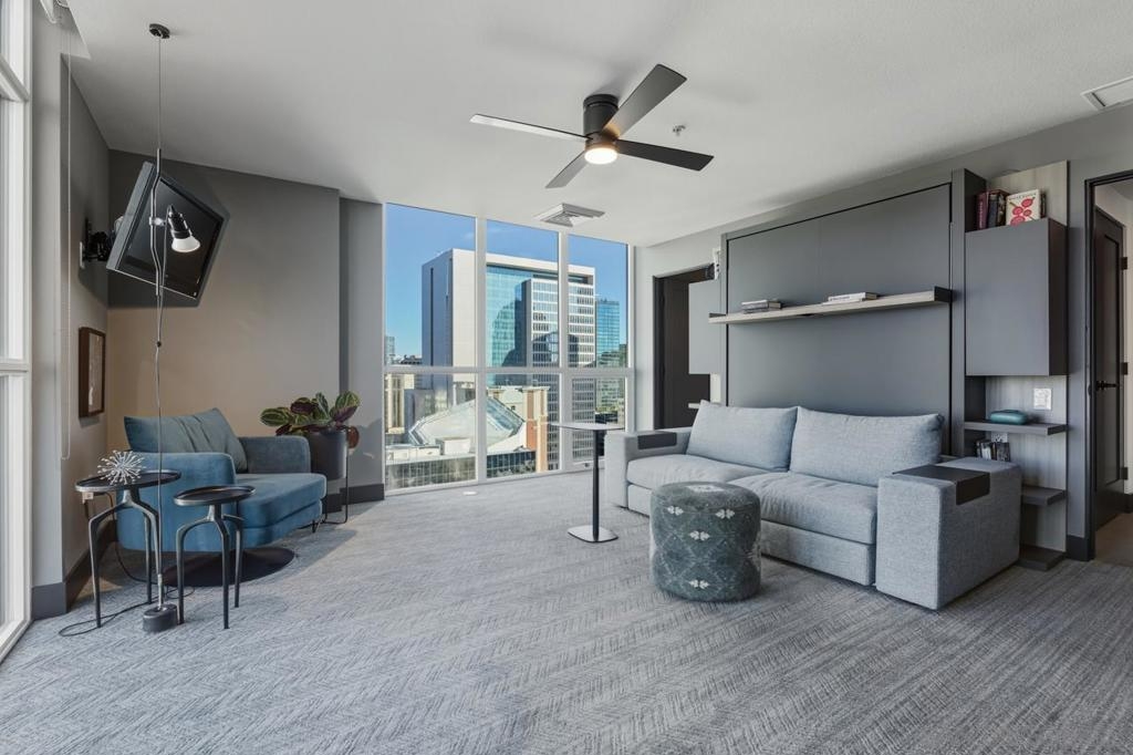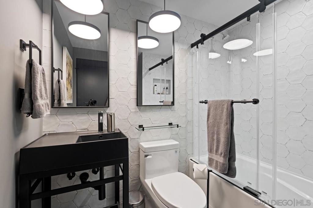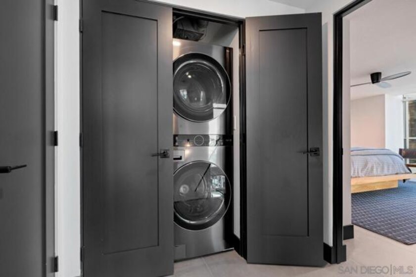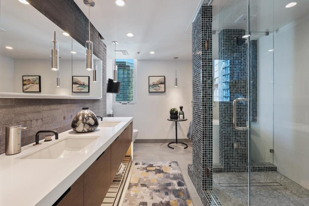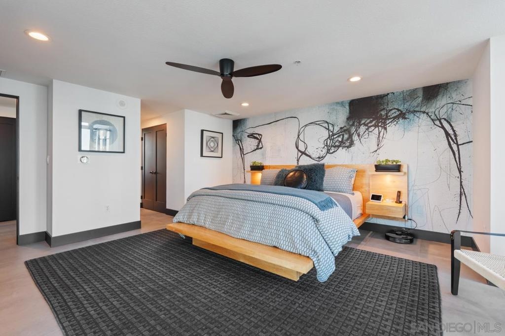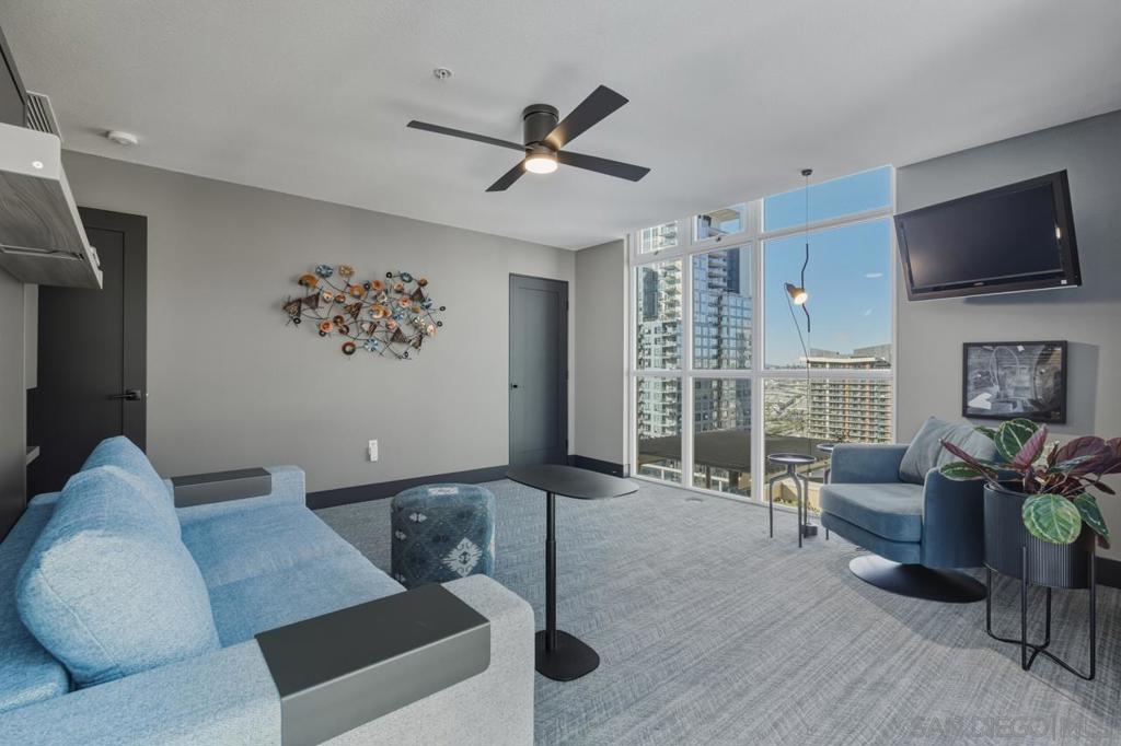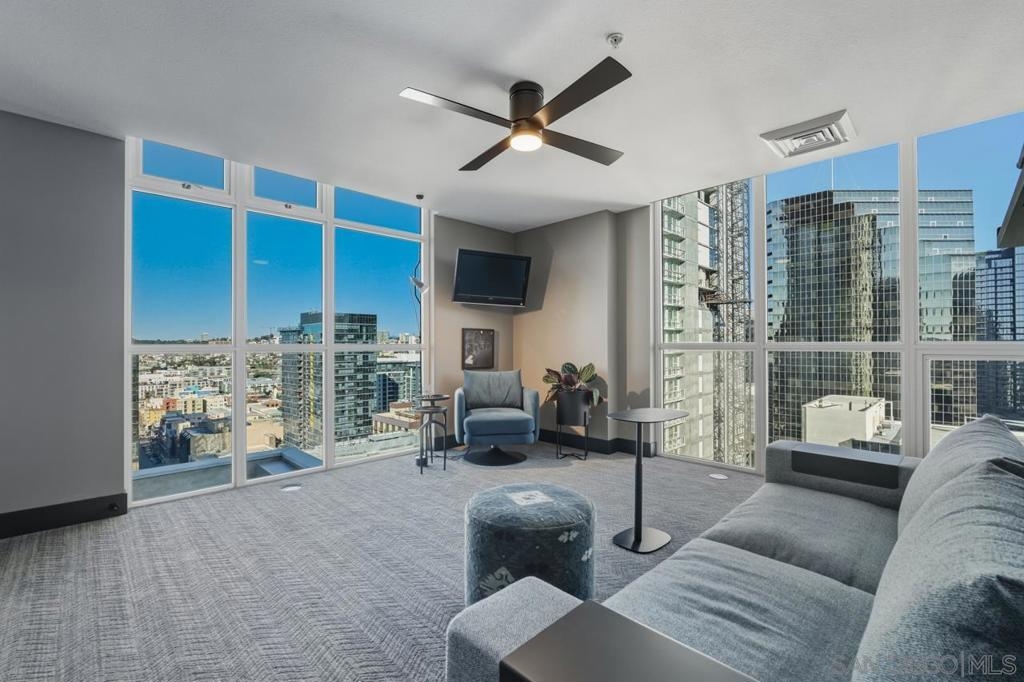 Range pricing: $2.4-$2.6. An extraordinary penthouse in the highly sought-after TREO building, which lies on the edge of Little Italy, offering one of the largest private patios in all of Downtown—more than 1,200 sq. ft.. Designed for elevated indoor-outdoor entertaining, the expansive terrace captures sweeping City and Bay views and breathtaking sunsets at every turn. In fact, the extraordinary views can be enjoyed from multiple rooms, with floor-to-ceiling windows to maximize light and those awesome city/bay views. Experience luxuriously appointed, state-of-the-art finishes, custom cabinetry, premium stone surfaces, designer lighting, and high-end appliances throughout. The open-concept layout is perfectly balanced with both private and intimate spaces, while a separate laundry room adds everyday convenience. Additional highlights include two dedicated parking spaces and a private storage unit. Every detail reflects meticulous craftsmanship, elevated materials, and refined design, creating a rare, sophisticated retreat in the heart of downtown. Just steps from Little Italy’s celebrated dining, waterfront promenade, and vibrant cultural attractions, this penthouse delivers an unparalleled urban lifestyle. Please read attached upgrade list and supplement. This residence has been thoughtfully enhanced and professionally redesigned from top to bottom with a comprehensive collection of high-end upgrades, blending innovation, comfort, and refined design throughout. The kitchen has been recently elevated for both performance and style, featuring a custom pantry with pull-out shelving, Fisher & Paykel dual-drawer dishwasher, JennAir built-in microwave drawer, Kraus oversized single-basin sink, Electrolux Icon five-burner gas range, and a double oven with convection and three adjustable racks. A Sub-Zero refrigerator with built-in ice maker anchors the space with timeless luxury. Adjacent dining and entertaining areas include a 196-bottle temperature-controlled wine cooler and a custom built-in bar, ideal for hosting at scale. The living area is centered around a Dimplex fireplace with a custom recessed television (included), paired with a statement ceiling fan controlled by remote. The primary bathroom has been newly curated with spa-level features, including Toto Washlet bidet system with remote controls, a Japanese soaking tub with massage jets, and an indulgent Mr. Steam shower with isteamX function, built-in speakers, and premium fixtures. Dual, side-by-side recessed medicine cabinets offer mirrored fronts with interior power outlets, complemented by motion-activated floor lighting for a seamless, elevated experience. Throughout the residence, enjoy remote-controlled window shades, Google Fiber internet, updated NextGen4 smart thermostats with 3 controls across three HVAC zones, offering both comfort and efficiency. A new stacked LG washer and dryer adds convenience, while all 3 bedrooms feature walk-in closets that provide generous, well-designed storage. Every enhancement has been artfully executed to deliver a luxurious, intuitive high-rise living experience—where technology, design, and comfort converge effortlessly.