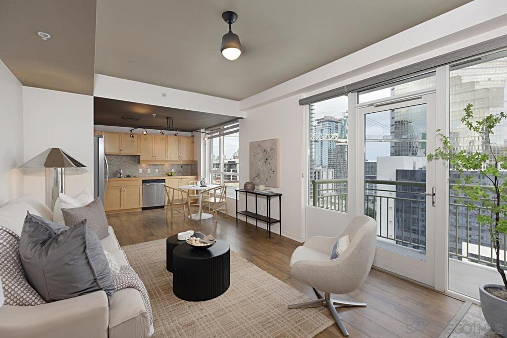 WELCOME TO LUXURY URBAN LIVING at Treo in Little Italy. This stunning 20th-floor condo offers breathtaking panoramic views of San Diego’s Downtown skyline. The bright and airy open floor plan features modern finishes, gas fireplace, and floor-to-ceiling windows that flood the space with natural light. With 1 bedroom and 1 bathroom, along with a private balcony, this unit is perfect for those seeking a stylish and sophisticated downtown lifestyle. The kitchen is equipped with stainless steel appliances, sleek countertops, and ample storage, making it ideal for both cooking and entertaining. The primary suite provides a spacious retreat, complete with a large closet as well as floor-to-ceiling windows. Residents of Treo enjoy a range of premium amenities, including a resort-style pool and spa, fitness center, community lounge, BBQ area, and 24-hour security. With its prime location, you’re just steps away from the best dining, shopping, and entertainment that Little Italy and the Gaslamp Quarter have to offer. Easy access to major freeways, public transportation, and the airport makes this an unbeatable location for urban dwellers. Don’t miss your chance to own a piece of one of San Diego’s most vibrant neighborhoods. Experience the best of city living at 1240 India St, Unit 2005!