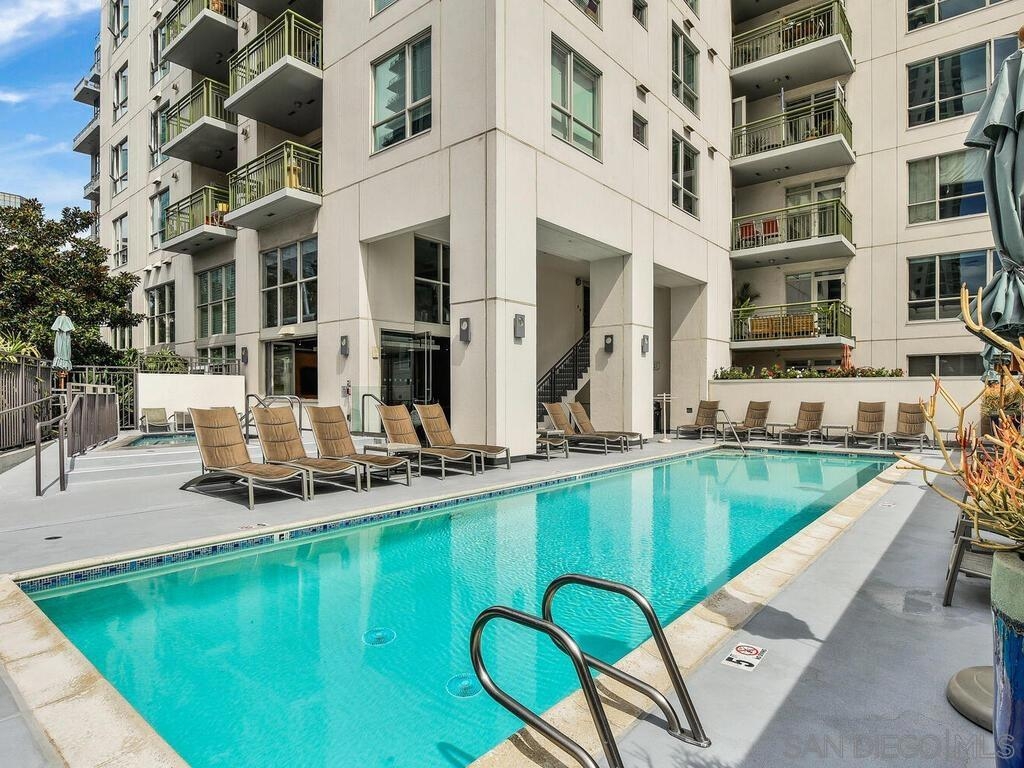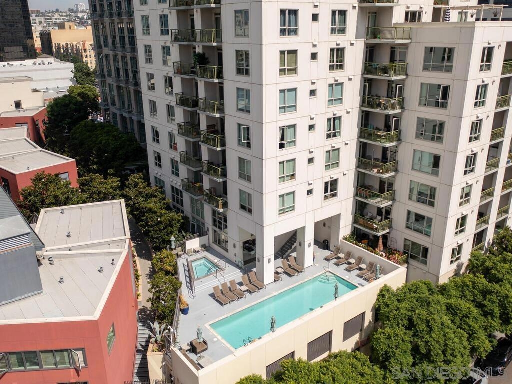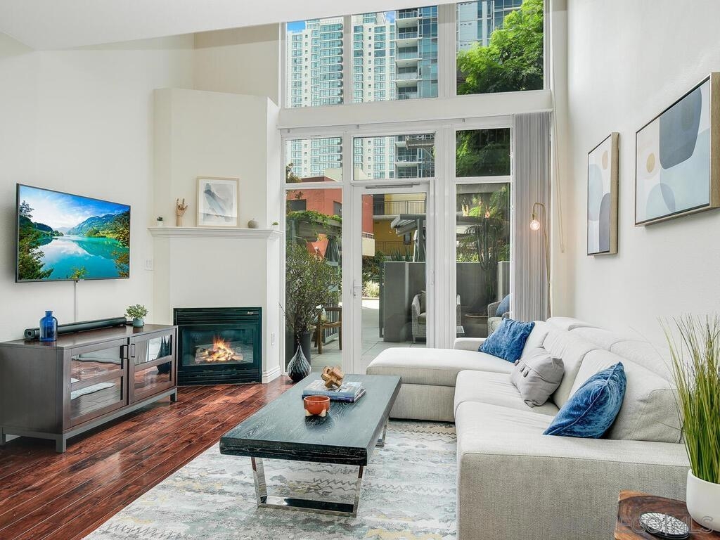 Welcome to this stunning two level, loft-style home in the heart of downtown San Diego's vibrant Columbia District. With its modern design and prime location, this 1 bedroom, 1.5 bath residence offers the perfect urban oasis. Step inside and be greeted by large floor-to-ceiling windows that flood the living room and second floor bedroom with natural light and offers beautiful cityscape views. Available fully furnished, the interior features updated bathrooms, wood flooring, and a pristine, clean aesthetic. Outside, a spacious patio opens up to a serene common courtyard, perfect for entertaining or enjoying peaceful moments. Within steps from your patio, you'll have easy access to the pool, spa, and gym facilities. This home offers the ultimate urban lifestyle as it is within walking distance of Little Italy, the embarcadero, and an abundance of restaurants and bars. Discover the charm of neighborhood cafes, trendy boutiques, and active culture in Little Italy, or soak in waterfront views and engage in recreational activities along the embarcadero. This gorgeous home offers the perfect blend of luxury, convenience, and urban living. Immerse yourself in the vibrant downtown scene, indulge in culinary delights, and embrace the energy of the city. Don't miss your chance to own this remarkable residence. Schedule a viewing today and make your downtown San Diego dreams a reality. Discover the incredible growth and transformation happening in downtown San Diego! Exciting revitalization plans are in the works, including the transformation of Seaport Village, the addition of a stunning park near the USS Midway Museum, the Manchester Pacific Gateway project, and the complete overhaul of the historic Horton Plaza. These developments are set to attract tourists, businesses and create more high paying job opportunities resulting in rising property values. Investing in real estate in this thriving city is a fantastic opportunity for growth and long-term value appreciation.