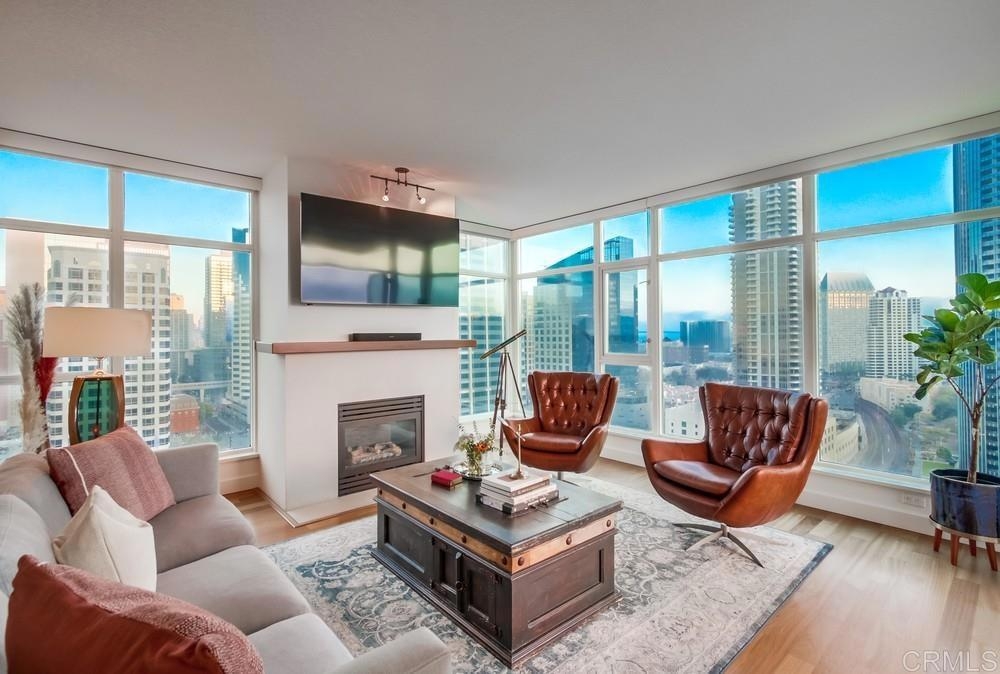 Located in the heart of Downtown San Diego, this stunning 2-bedroom, 2-bathroom condominium offers luxury living on "Millionaires Row" in the prestigious Core Columbia district. Positioned on the 20th floor of The Grande South, this property boasts panoramic bay views and an abundance of natural light from windows facing west, south, and east. Enjoy breathtaking weekly firework shows from the Midway and the convenience of being just steps away from the embarcadero. This home is ideally situated across from the much-anticipated Research and Design District (RaDD), which features high-end tenants such as Equinox, Rivian, Javier's and other fun dining options ensuring you are at the center of San Diego's best retail, dining, and entertainment. Inside, the unit has been meticulously upgraded with high-end finishes throughout. The kitchen features brand-new Wolf ovens, while the bathrooms have been modernized with sleek plumbing fixtures and contemporary lighting. Brazilian cherry hardwood floors run through the main living areas, with tile in the bathrooms. Granite countertops add a touch of elegance. The expansive master bedroom includes a walk-in closet and ample space for rest and relaxation. The spare bedroom is thoughtfully designed to double as a home office, complete with a built-in Murphy bed made of 100% solid wood, which also serves as a bookcase. Both bedrooms are upgraded with blackout curtains, ensuring a restful sleep, even after a night out in Little Italy or the Gaslamp. Additional amenities within the building include a newly renovated gym, a luxurious locker room and spa area, a sauna, steam room, pool, hot tub, grills, community room, and 24-hour security. The Grande South is currently undergoing a full exterior repainting project and pool deck rehabilitation, ensuring the property remains in tip-top condition. The well-funded HOA reserve fund that provides peace of mind relative to nearby buildings.
