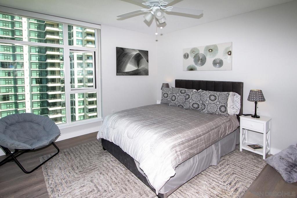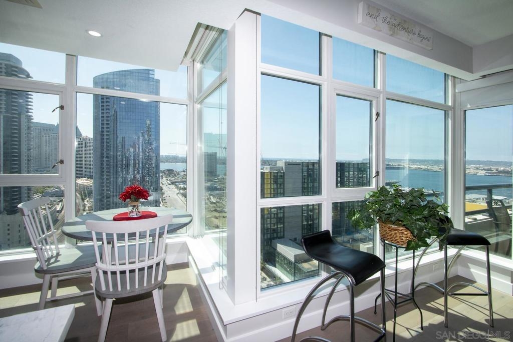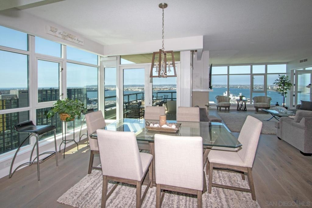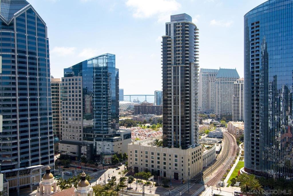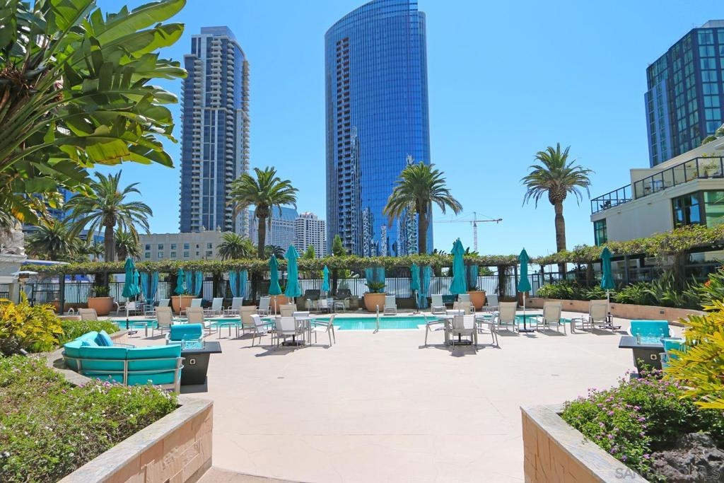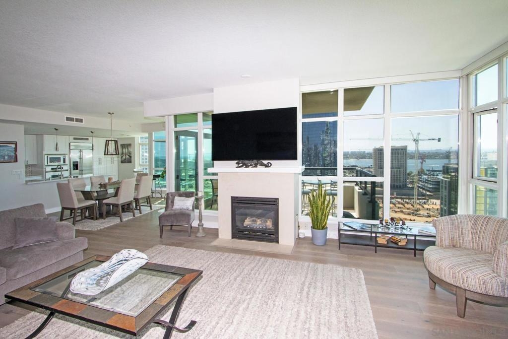 Stunning, stylish, fully furnished, exquisite 2022 remodel, move-in ready. Sweeping 180 degree panoramic Pacific Ocean views from La Jolla to Mexico from this spectacular 23rd floor downtown waterfront condo overlooking cruise ships, sailboats, marine traffic and gorgeous sunsets from the premier location on San Diego Bay. The most sought after 3 bedroom floor plan on the Front Porch of Millionaire's Row. Tasteful interior furnishings. Totally remodeled kitchen, dining room, living room, bedrooms, bathrooms & flooring. Floor to ceiling views from most every window + two balconies for wonderful entertaining. Includes Webpass internet and Amazon Fire Stick streaming services to three TVs. Turn key beautiful remodel! Remodeled light and bright kitchen with new countertops, S/S sink, single handle faucet fixture, reverse osmosis water filtration system and backsplash; new triple paned windows, LED lights throughout, new ceiling fans, new bathroom vanities, countertops, toilets, shower and wood vinyl flooring; and newly painted condo with color coordinated designer paints. Like new GE washer and dryer. Upgraded double hanging rods and double shelves in closets for additional hanging and stacking clothing. Separate Living Room and Master Bedroom patios (totaling 300 square feet) overlooking San Diego Bay. Two prime side by side parking spaces (each 9'x18') assigned to this unit on the premier P1 parking level plus a large private assigned 7ft x 4 ft x 8ft deep chain link storage unit (224 cu. ft.) in the fob locked storage room close by on the premier P1 level in the gated, underground parking area. The Grande South at Santa Fe Place combines exceptional architecture, extraordinary views, spacious landscaped gardens, private tree lined courtyards, visitor’s suite with parking to accommodate guests & family, and total comfort to its owners. Like no other. Located in downtown San Diego’s premier Columbia District, it rises 39 stories high with 221 residences directly above and the front door to San Diego Bay, providing spectacular 270 degree views of the Pacific Ocean and downtown San Diego Skyline. For those owners working from home, the front office/3rd bedroom adjacent to the living room has absolutely the most gorgeous setting over San Diego Bay and the Pacific ocean. The Grande South features all the luxuries of the finest resorts including 24 hour concierge service plus physical and closed circuit surveillance camera security, onsite professional property management, facilities director and building maintenance staff, 80 ft. outdoor swimming pool and spa, fully equipped fitness center, separate sauna and steam rooms with private men’s and women’s locker rooms with showers, central water conditioning system, window cleaning, 24 hour roaming attendant, water, electric fireplace, bicycle storage, huge meeting room and lounge area next to the newly designed lobby with full kitchen, entertainment and bar areas. Resident access only to all entrances and parking. Walking distance to international cruise ships, Little Italy, the Gaslamp District, Seaport Village, Waterfront Park, the Embarcadero, the USS Midway aircraft carrier museum, a multitude of shops and restaurants, the future Manchester Gateway project and much more. Five minutes to the San Diego Airport; PETCO Park, home of the San Diego Padres; Sea World and, of course, the famous San Diego Zoo. You have everything at your fingertips.