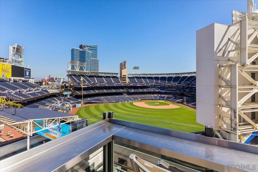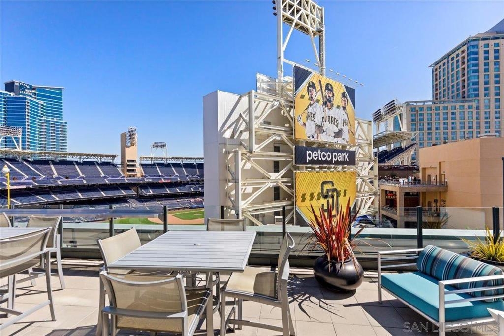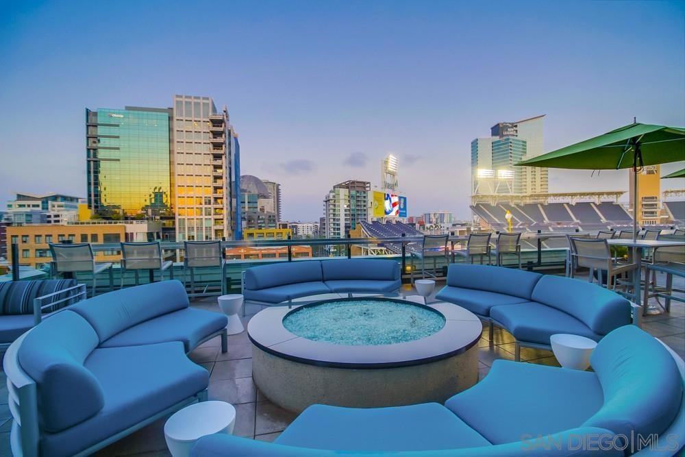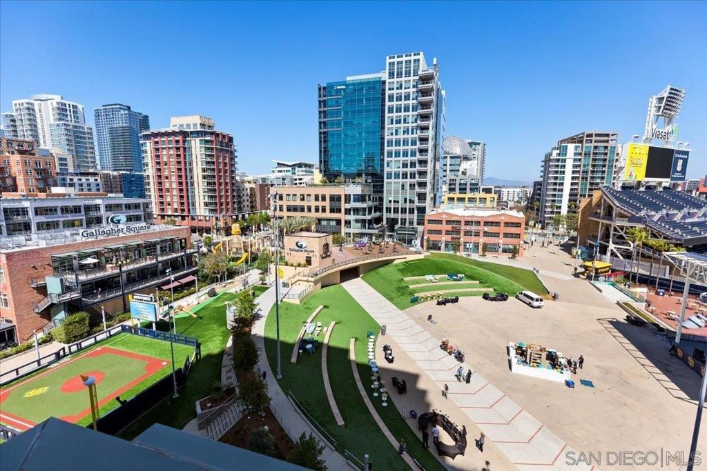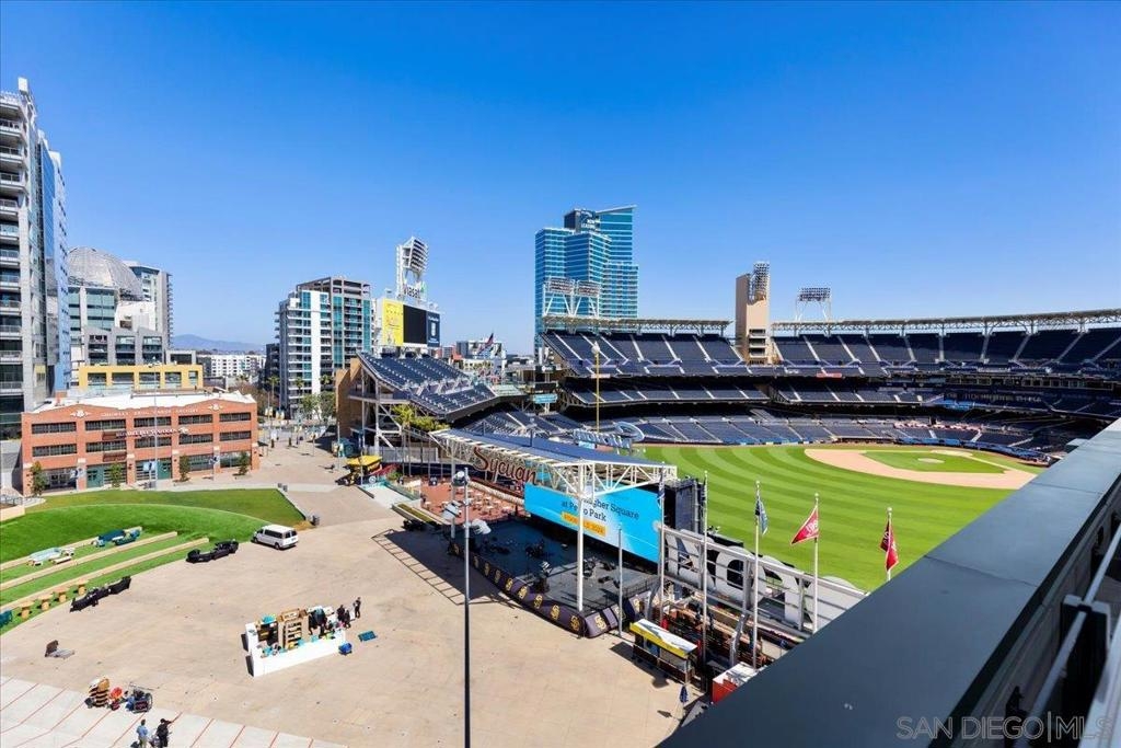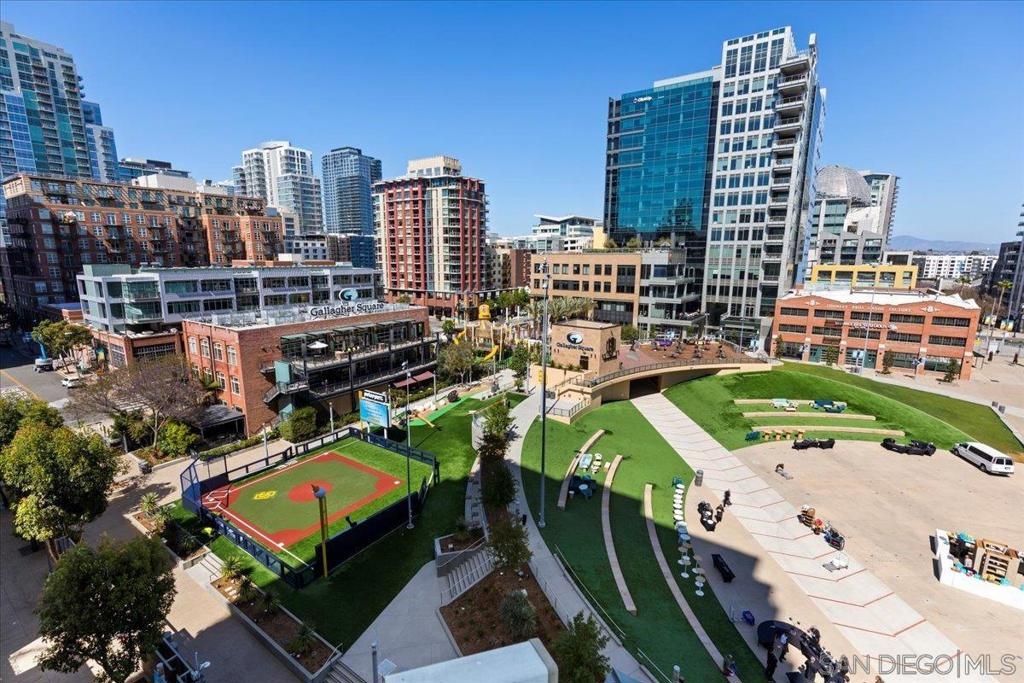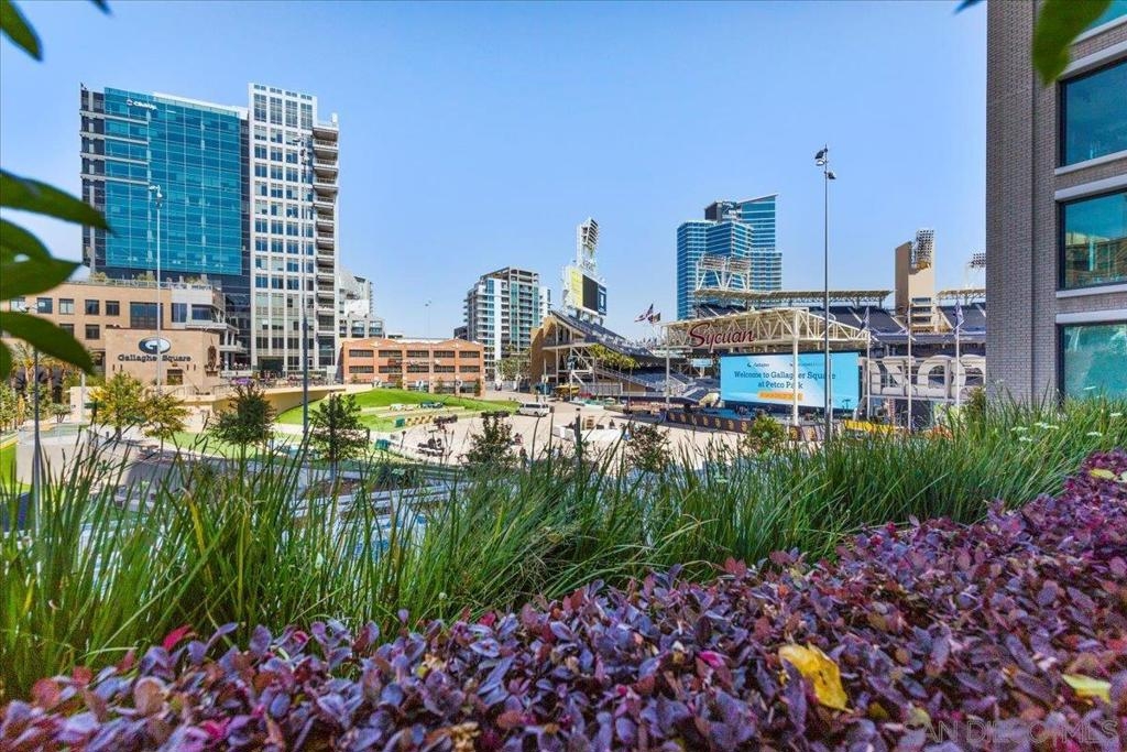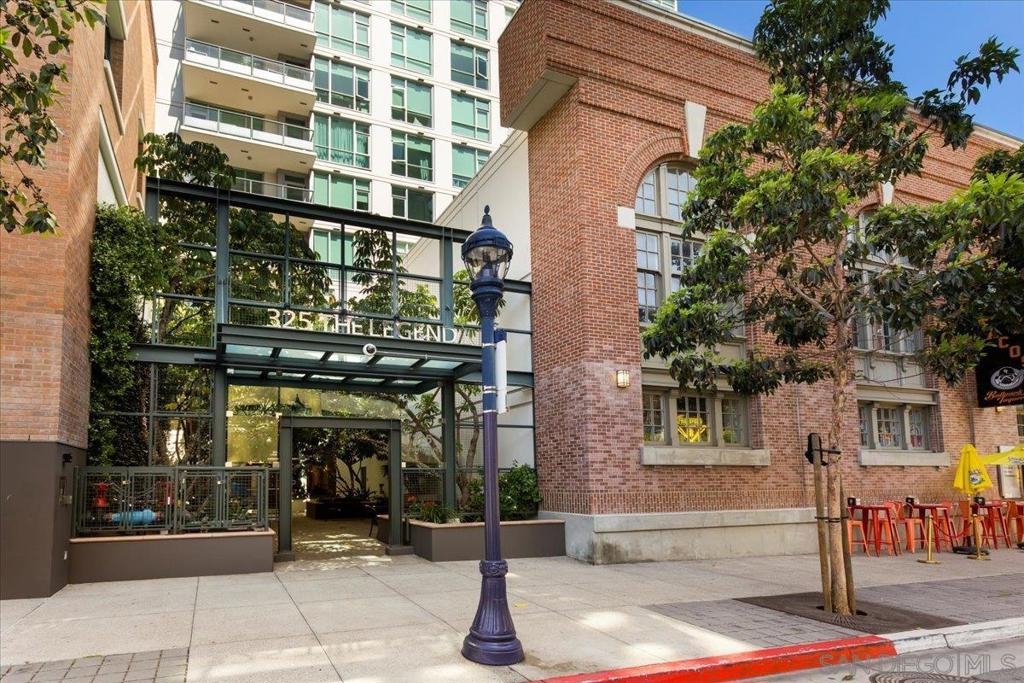 Stunning 2-bedroom, 2-bathroom residence in the coveted building of The Legend! This home boasts an airy and luminous floor plan with a spacious view balcony, featuring hardwood flooring, expansive floor-to-ceiling windows with custom shades, central air and heat, recessed lighting, and a kitchen adorned with granite countertops, designer cabinetry, tile backsplash, and stainless steel appliances. The primary suite offers dual vanity sinks, tile surround, and a walk-in closet. Secured parking and storage are included! The sought-after amenities in this community encompass security, a rooftop lounge with firepits, BBQ area, indoor kitchen, and panoramic views of the Ballpark and Gallagher Square. Additional amenities include a sparkling pool, spa, steam room, sauna, and fitness center. Enjoy a short stroll to top-rated restaurants, coffee shops, Petco Park and all the attractions of East Village! Near Balboa Park, beaches and easy freeway access. This property is a must-see!