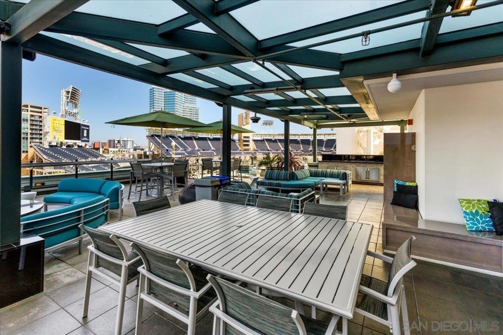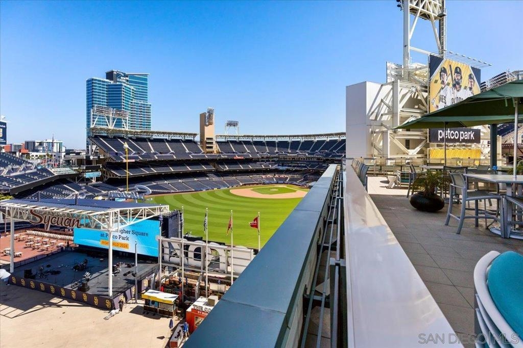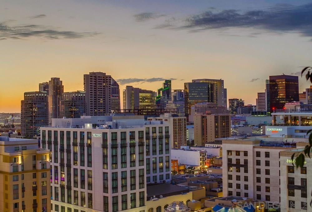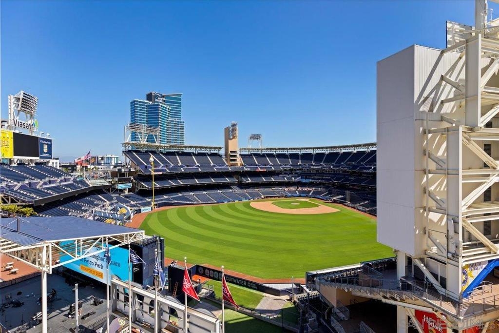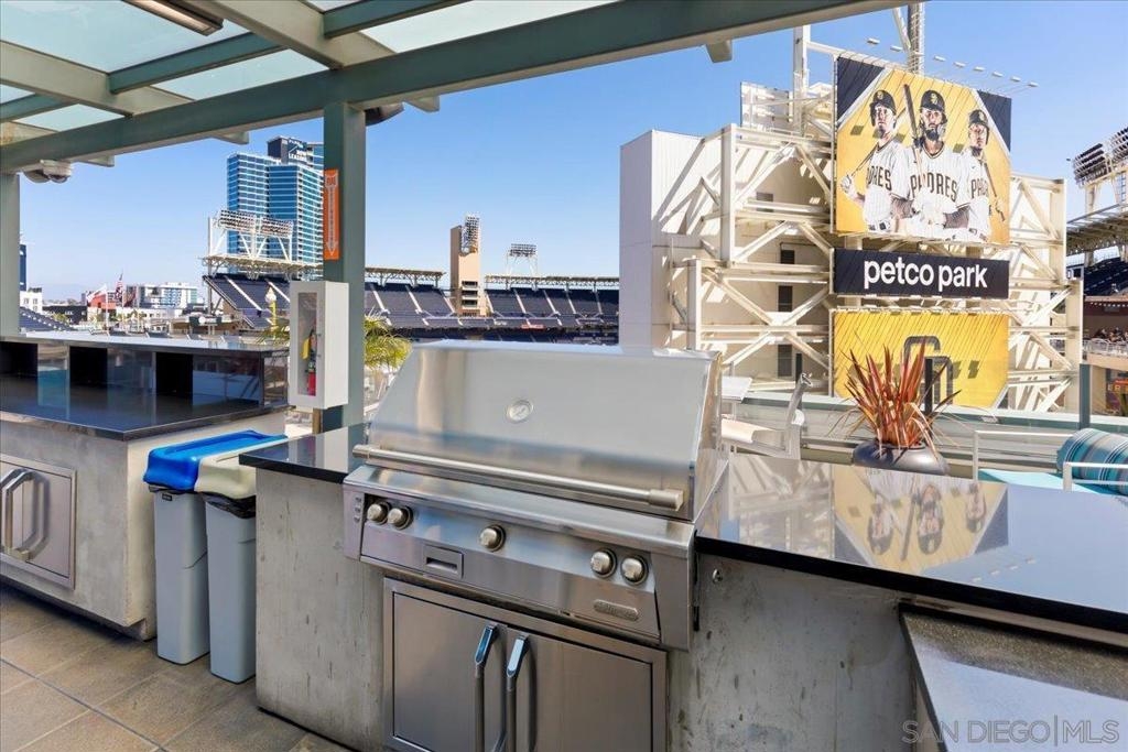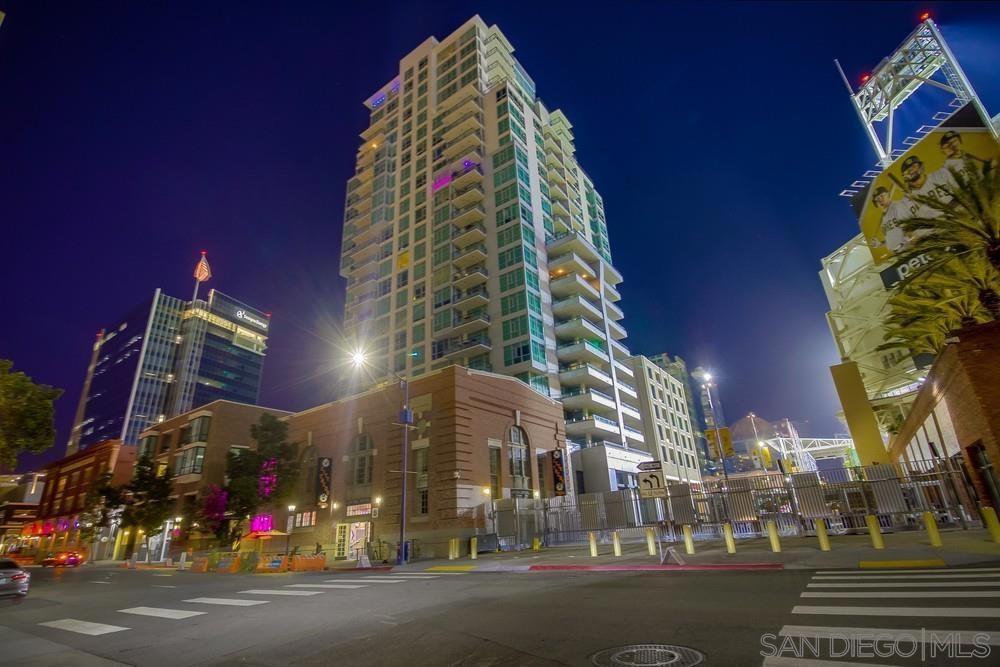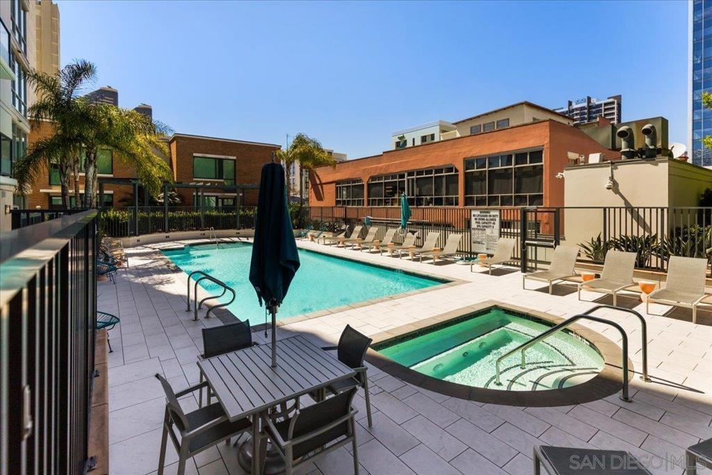 Stunning 2-bedroom, 2-bathroom residence in the coveted building of The Legend! This home boasts an airy and luminous floor plan with a spacious view balcony, featuring hardwood flooring, expansive floor-to-ceiling windows with custom shades, central air and heat, recessed lighting, and a kitchen adorned with granite countertops, designer cabinetry, tile backsplash, and stainless steel appliances. The primary suite offers dual vanity sinks, tile surround, and a walk-in closet. Secured parking and storage are included! The sought-after amenities in this community encompass security, a rooftop lounge with firepits, BBQ area, indoor kitchen, and panoramic views of the Ballpark and Gallagher Square. Additional amenities include a sparkling pool, spa, steam room, sauna, and fitness center. Enjoy a short stroll to top-rated restaurants, coffee shops, Petco Park and all the attractions of East Village! Near Balboa Park, beaches and easy freeway access. This property is a must-see!