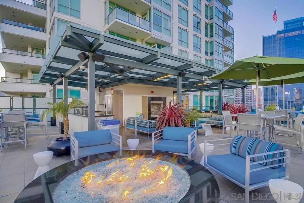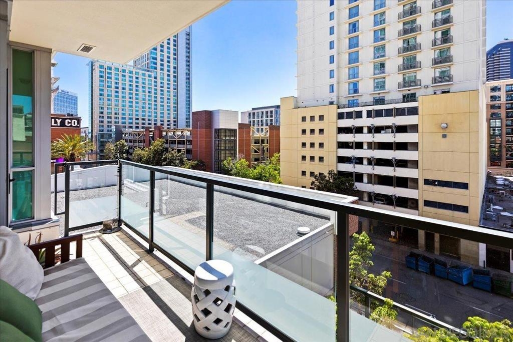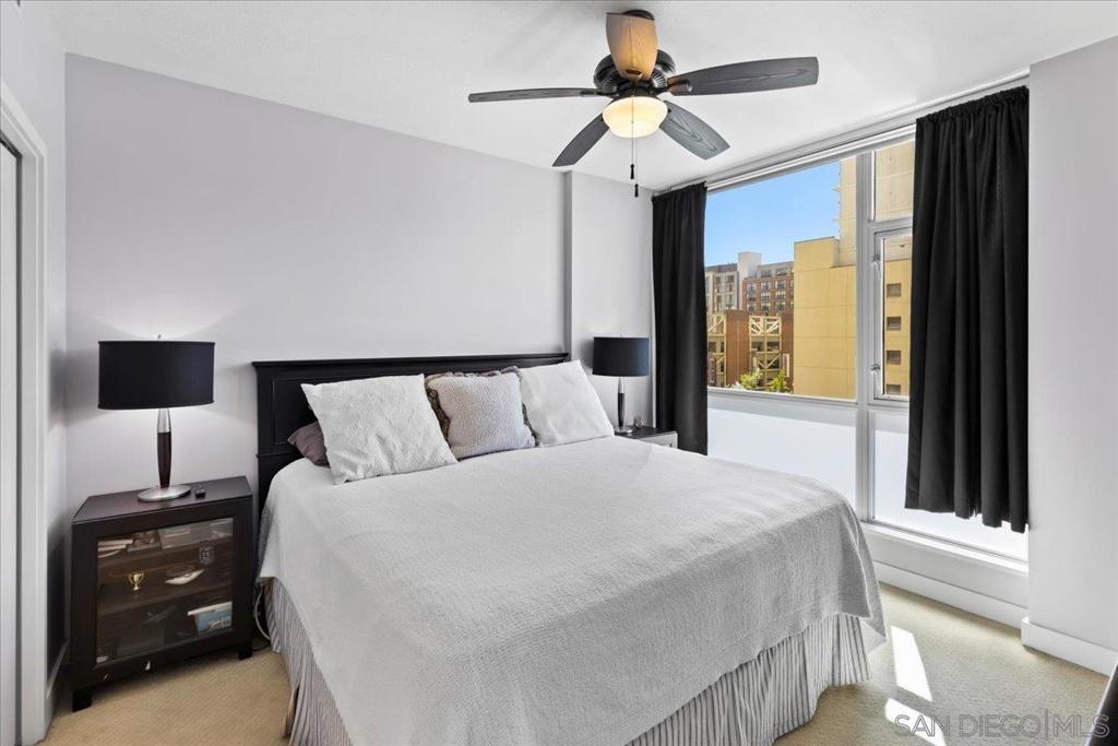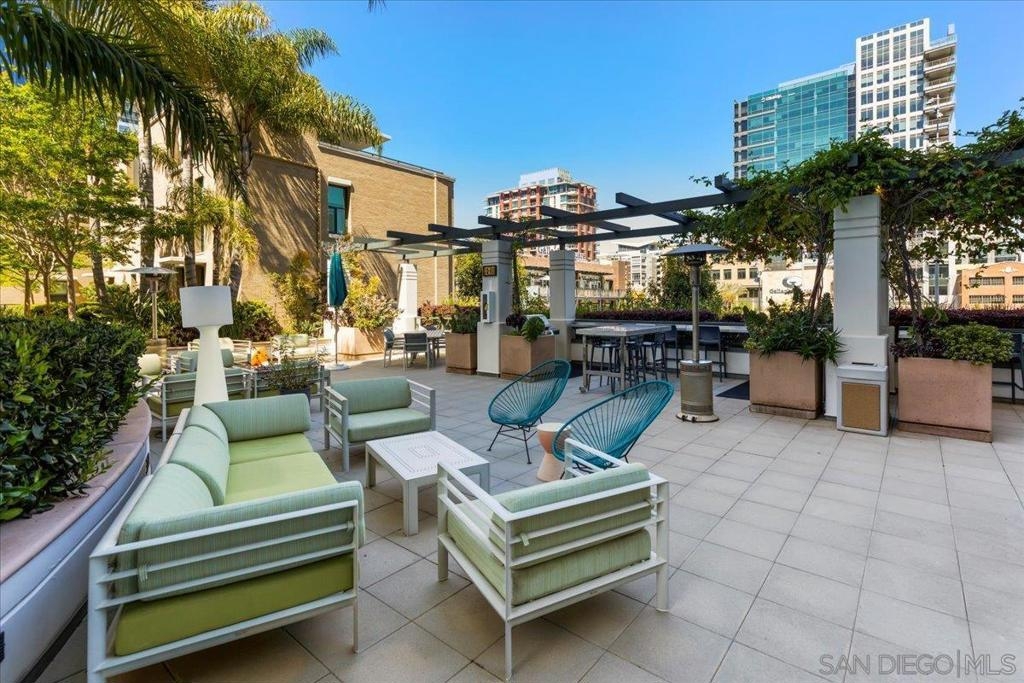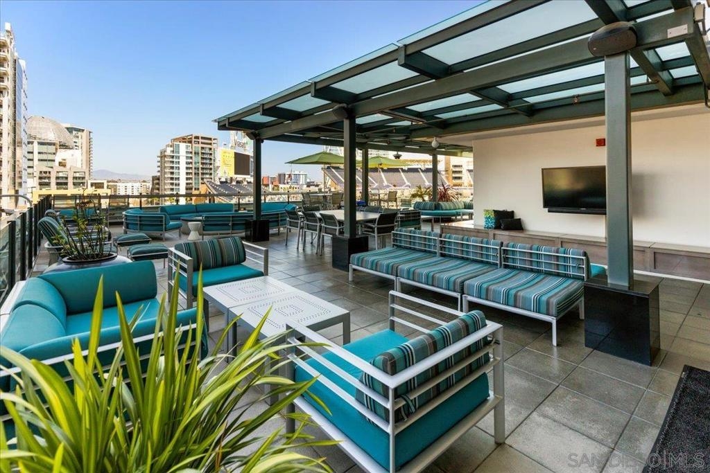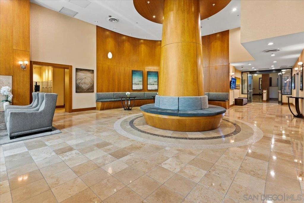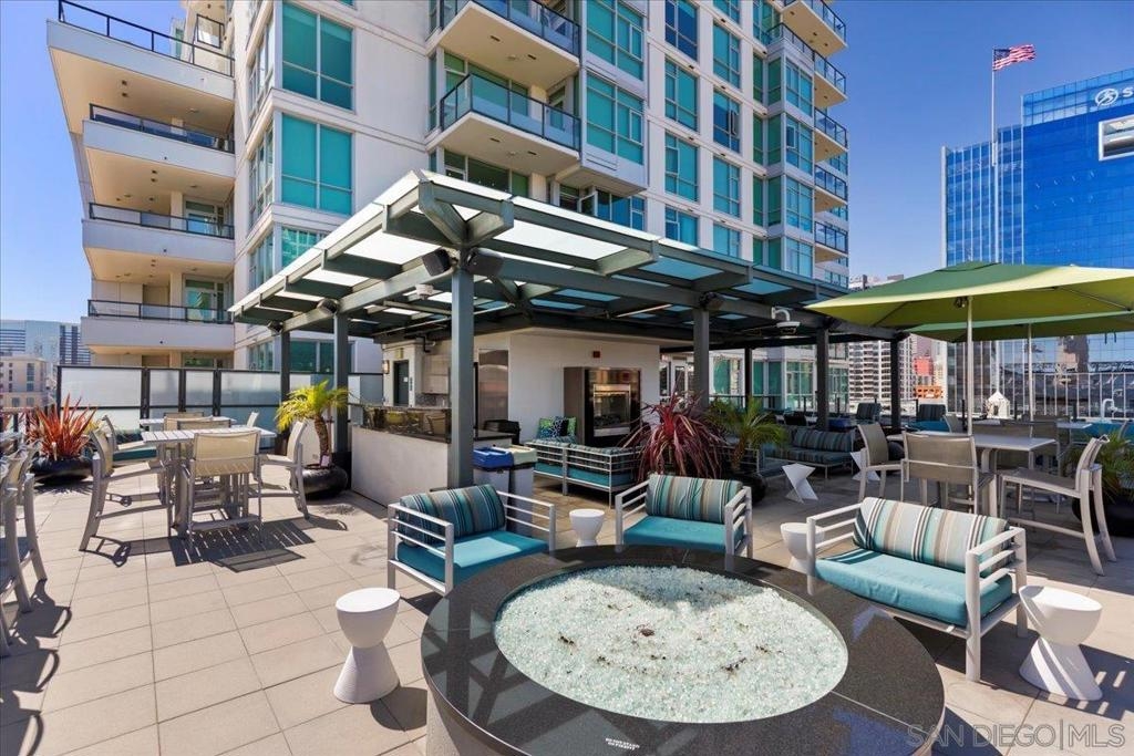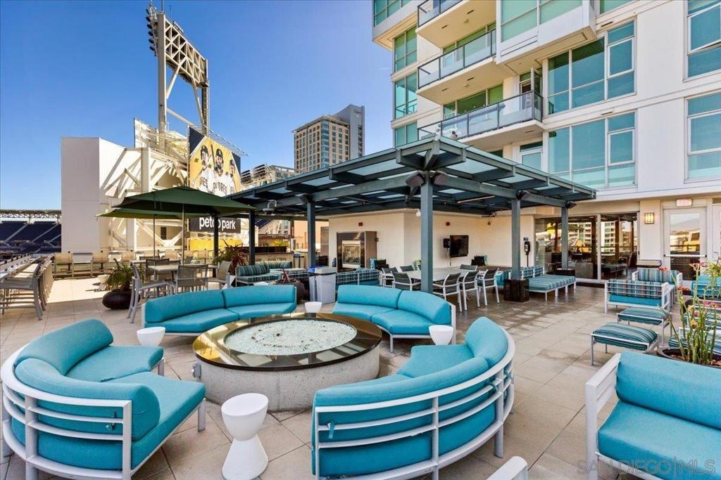 Stunning 2-bedroom, 2-bathroom residence in the coveted building of The Legend! This home boasts an airy and luminous floor plan with a spacious view balcony, featuring hardwood flooring, expansive floor-to-ceiling windows with custom shades, central air and heat, recessed lighting, and a kitchen adorned with granite countertops, designer cabinetry, tile backsplash, and stainless steel appliances. The primary suite offers dual vanity sinks, tile surround, and a walk-in closet. Secured parking and storage are included! The sought-after amenities in this community encompass security, a rooftop lounge with firepits, BBQ area, indoor kitchen, and panoramic views of the Ballpark and Gallagher Square. Additional amenities include a sparkling pool, spa, steam room, sauna, and fitness center. Enjoy a short stroll to top-rated restaurants, coffee shops, Petco Park and all the attractions of East Village! Near Balboa Park, beaches and easy freeway access. This property is a must-see!
