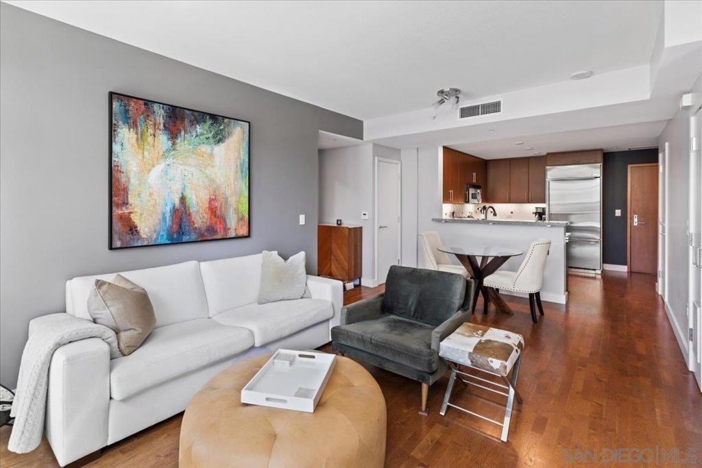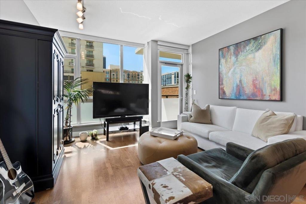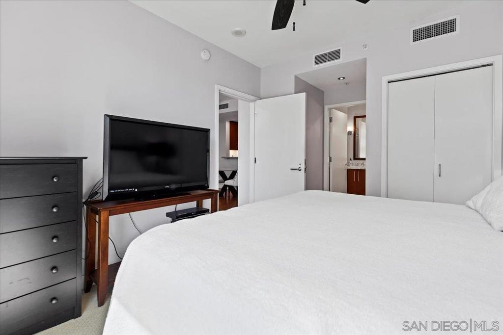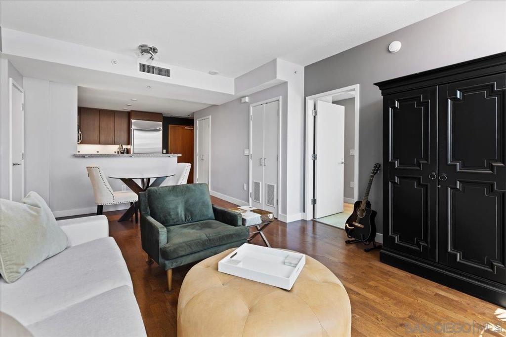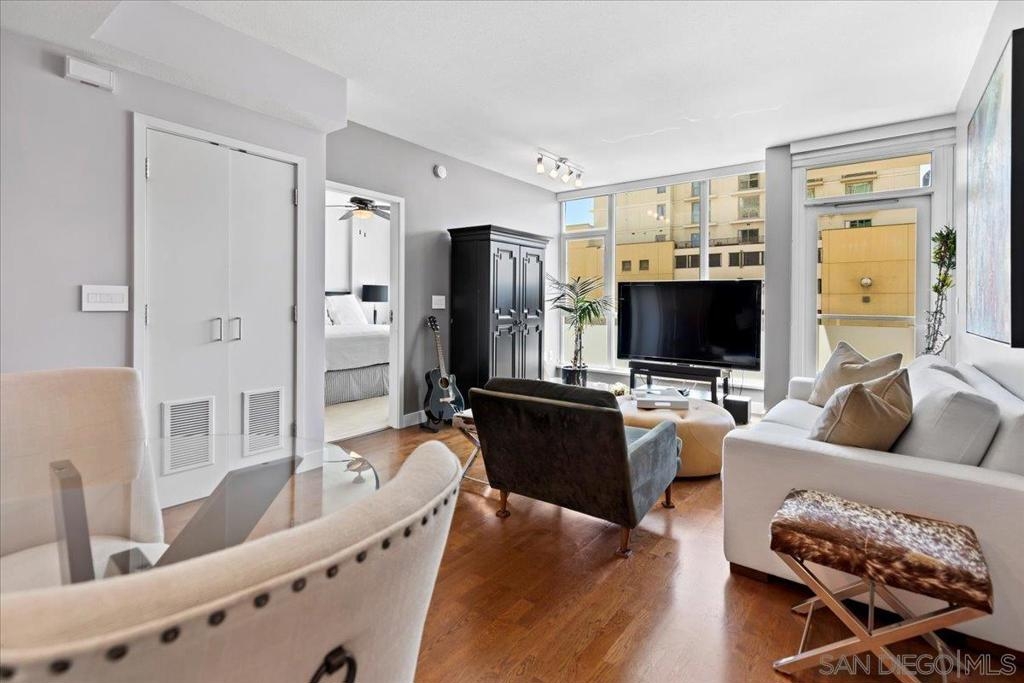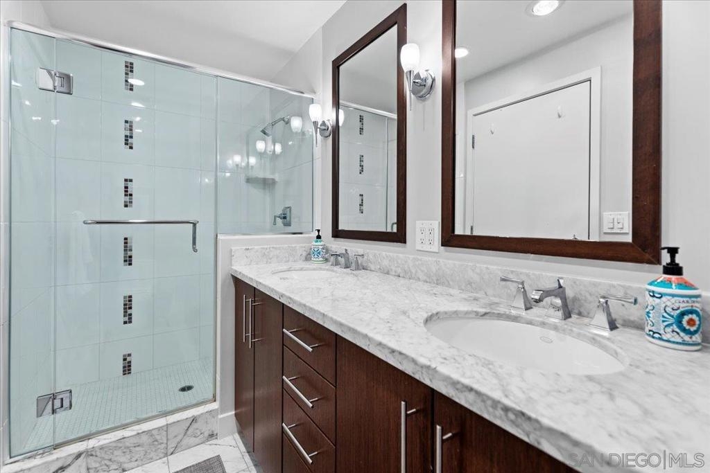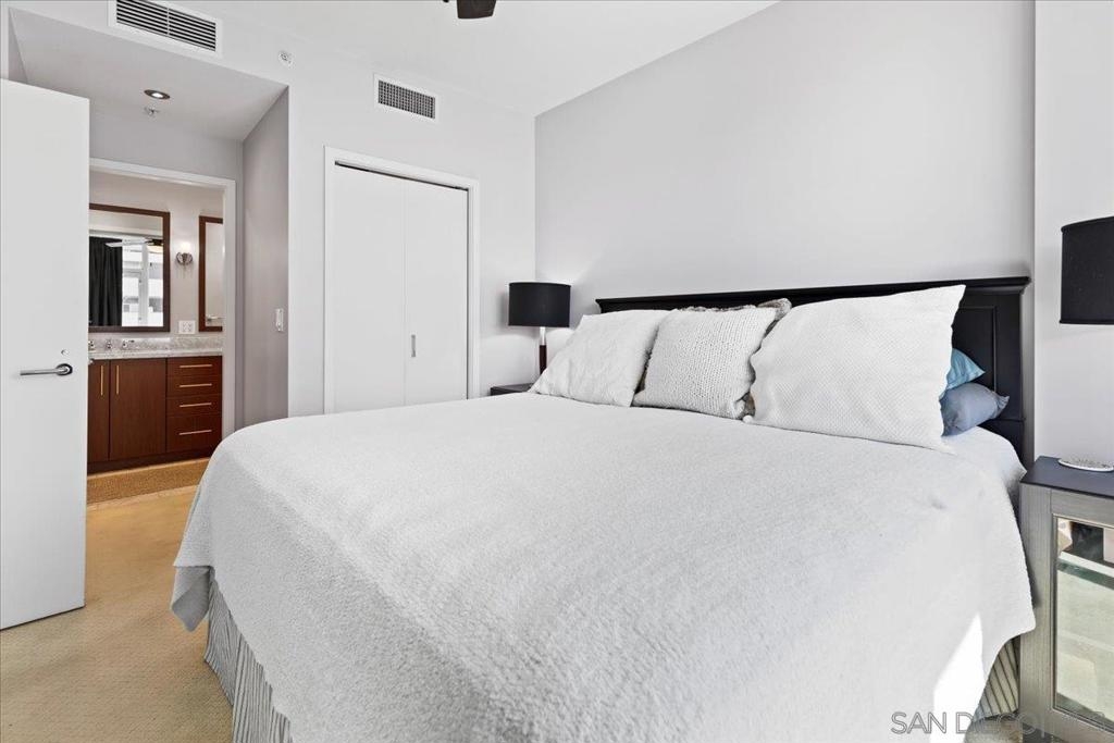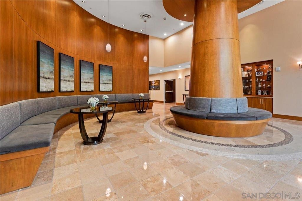 Stunning 2-bedroom, 2-bathroom residence in the coveted building of The Legend! This home boasts an airy and luminous floor plan with a spacious view balcony, featuring hardwood flooring, expansive floor-to-ceiling windows with custom shades, central air and heat, recessed lighting, and a kitchen adorned with granite countertops, designer cabinetry, tile backsplash, and stainless steel appliances. The primary suite offers dual vanity sinks, tile surround, and a walk-in closet. Secured parking and storage are included! The sought-after amenities in this community encompass security, a rooftop lounge with firepits, BBQ area, indoor kitchen, and panoramic views of the Ballpark and Gallagher Square. Additional amenities include a sparkling pool, spa, steam room, sauna, and fitness center. Enjoy a short stroll to top-rated restaurants, coffee shops, Petco Park and all the attractions of East Village! Near Balboa Park, beaches and easy freeway access. This property is a must-see!