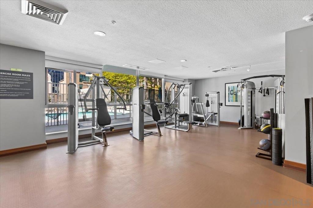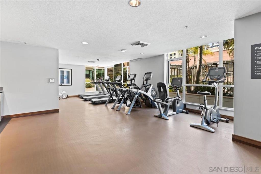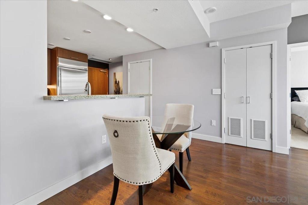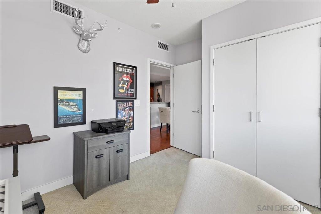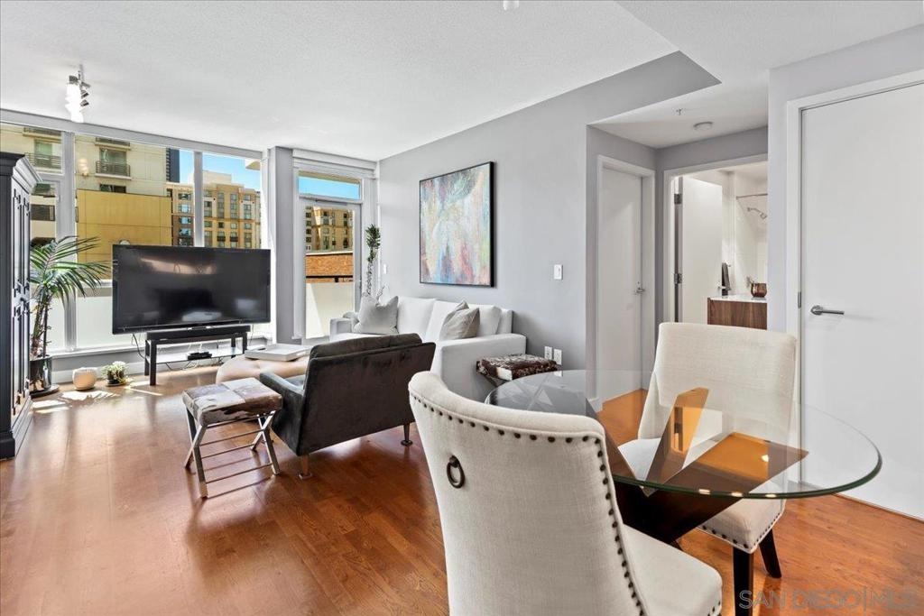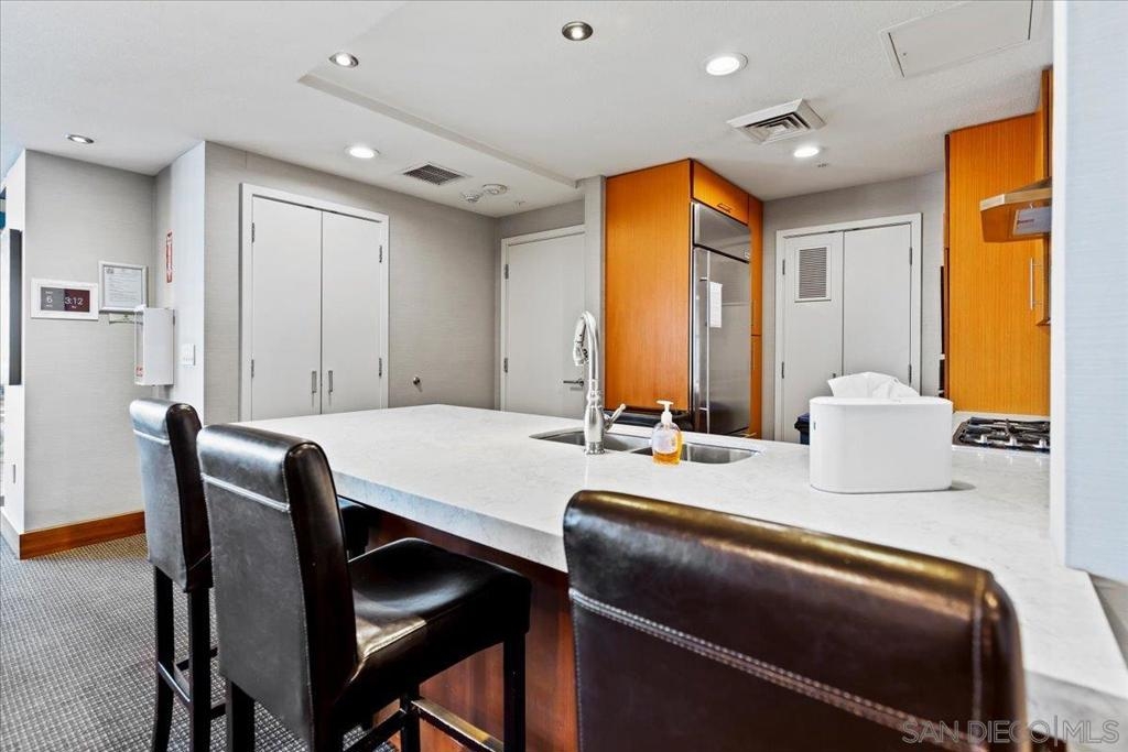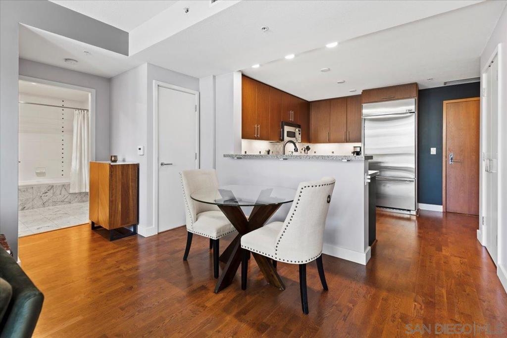 Stunning 2-bedroom, 2-bathroom residence in the coveted building of The Legend! This home boasts an airy and luminous floor plan with a spacious view balcony, featuring hardwood flooring, expansive floor-to-ceiling windows with custom shades, central air and heat, recessed lighting, and a kitchen adorned with granite countertops, designer cabinetry, tile backsplash, and stainless steel appliances. The primary suite offers dual vanity sinks, tile surround, and a walk-in closet. Secured parking and storage are included! The sought-after amenities in this community encompass security, a rooftop lounge with firepits, BBQ area, indoor kitchen, and panoramic views of the Ballpark and Gallagher Square. Additional amenities include a sparkling pool, spa, steam room, sauna, and fitness center. Enjoy a short stroll to top-rated restaurants, coffee shops, Petco Park and all the attractions of East Village! Near Balboa Park, beaches and easy freeway access. This property is a must-see!