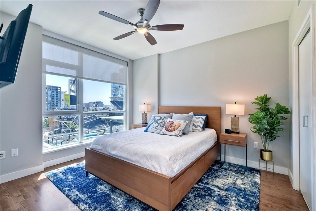 THIS IS IT! THE ONE YOU'VE BEEN WAITING FOR!! A 2BR/2BA East Facing condo at The Legend Condominium. Located on the 8th floor overlooking Gallagher Square and a view into Petco Park. This furnished 973 square foot condo offers a split bedroom and bathroom layout, has finishes that include stainless steel appliances, granite kitchen counters, wood flooring, roller-shade window coverings, stacked washer and dryer, and customized closet organizer. Ownership at The Legend condos include Concierge Service, 24-hr secure assigned underground parking, pool/spa, fully equipped fitness room, BBQ area and the exclusive 7th Floor Roof Top Viewing Deck overlooking the ballpark with an inviting outdoor fireplace lounge, outdoor kitchen & BBQ, and an indoor lounge and kitchen. The Legend is recognized for it's location in Downtown San Diego and proximity to Petco Park and Gallagher Square.