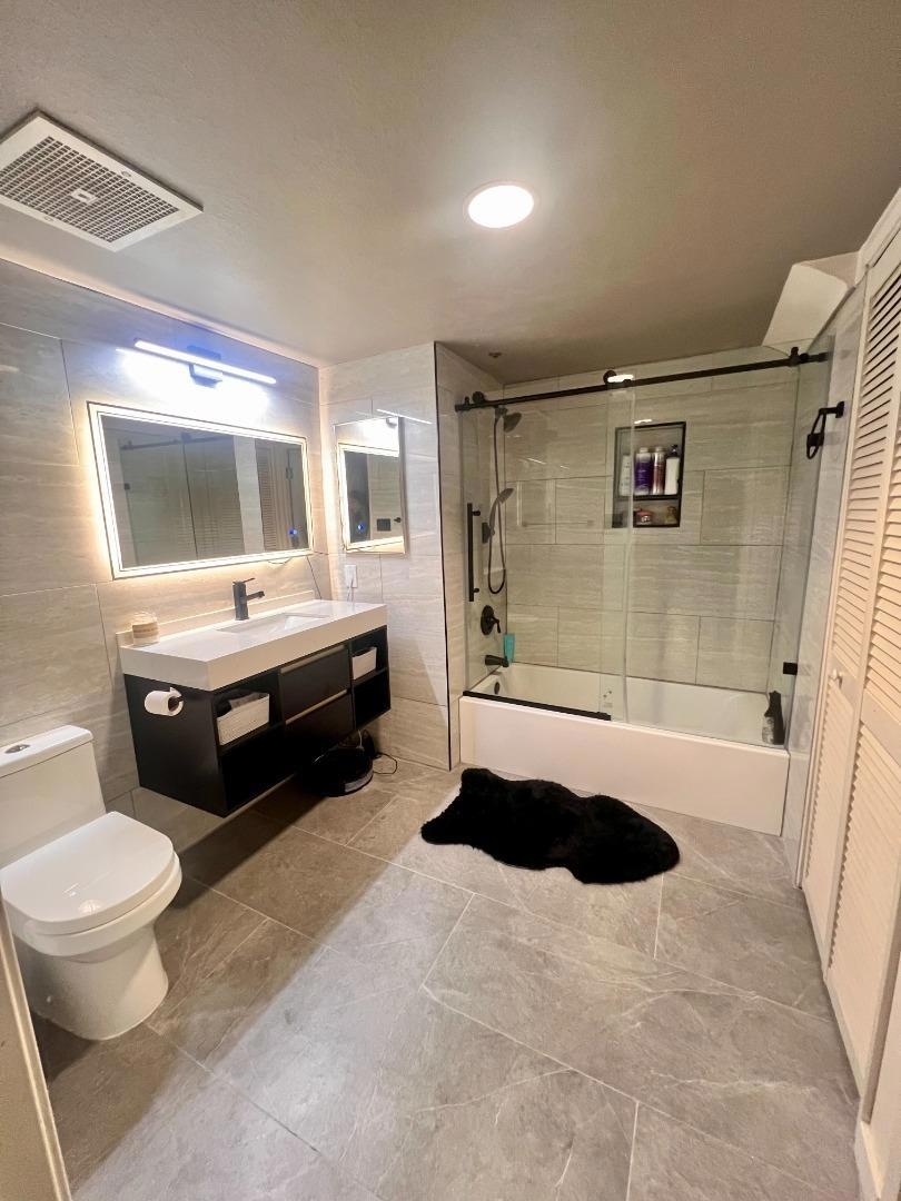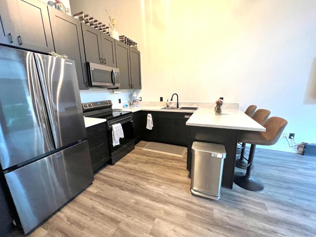 Amazing 1-bedroom, 1-bath condo located in the highly sought-after downtown San Diego Gaslamp District - The Lofts @777 Sixth Avenue. With over 730 square feet of living space, this unit features an open-concept design with a cathedral ceiling, brand-new hardwood floors throughout, fresh interior paint, in-unit Washer/Dryer, and a smart lock front door for added security. The newly remodeled kitchen highlights sleek shaker cabinets, granite slab countertops, a new garbage disposal, a Fotile 2-inch sink with a built-in dishwasher (this innovative appliance combines a kitchen sink and dishwasher all in one system), and a dimmable chandelier with brass and black finish. The reconstructed bathroom features porcelain tile walls, matte finish tile floors, and shower walls with a high-gloss finish, creating a classic look. Completing this spacious bathroom is an elegant floating vanity with a marble top and gold accents, soft-closing drawers, and a frameless glass shower door with black stainless steel accents. This well-designed and fully upgraded unit truly has it all! A must see!!