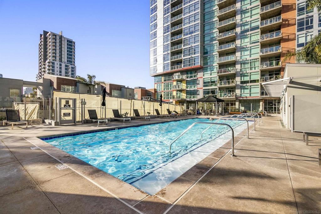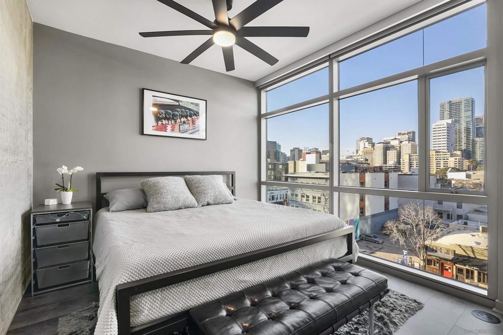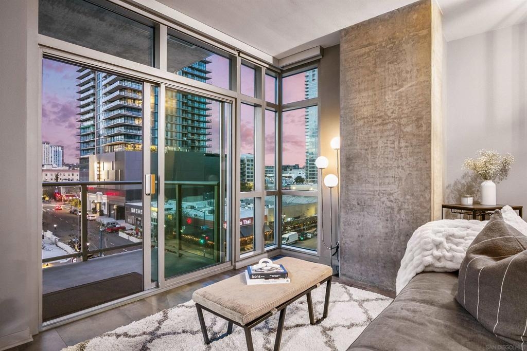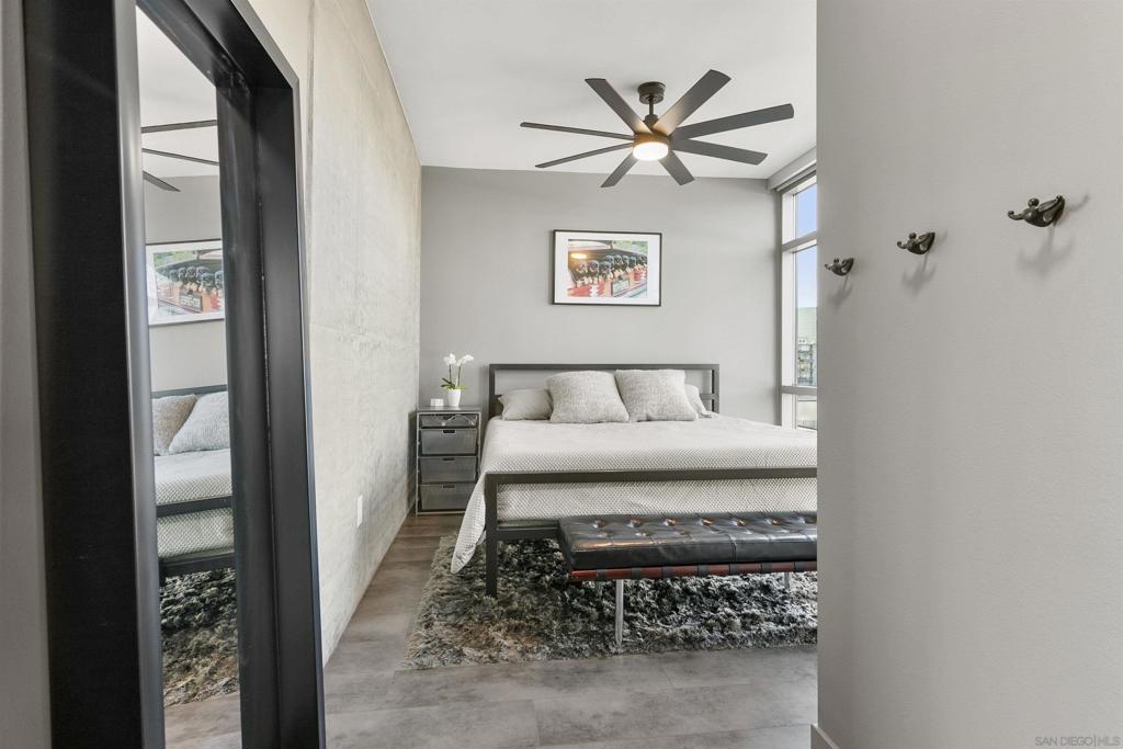 Located in the vibrant East Village neighborhood of downtown San Diego, The Mark is an opulent residential high-rise that offers a lifestyle of convenience and luxury. The living area is lit by expansive floor-to-ceiling windows, inviting in natural light to create a warm ambiance complemented by full electronic shades, LVP flooring throughout, new HVAC system, and a custom Elfa storage system. This spacious 1-bedroom condo boasts a well-designed floor plan that prioritizes privacy and functionality, with the master bedroom featuring a walk-in closet, and includes separate large secured storage closet. Positioned on the 6th floor with a north-facing orientation, this unit showcases breathtaking views of the San Diego city skyline from its private balcony. The Mark is renowned as one of East Village's premier and most luxurious buildings, providing 24-hour security, concierge service, a saltwater pool and spa, a gym, and a conference room. The Mark is an impressive 32-story residential high-rise located in the East Village Its prime location offers close proximity to 5-star restaurants, sidewalk cafes, music venues, theaters, shopping, and Petco Park, as well as being just minutes away from the bay. Upon arrival, residents are welcomed by an elegant entry and 24-hour lobby attendants. The common area of The Mark boasts lavish outdoor spaces, including a pool, spa, fully furnished patio area with multiple barbecue areas, outdoor showers, and restrooms. Additionally, residents can enjoy amenities such as a fitness center and a conference room with Wi-Fi within the tower. The well-lit garage provides parking space and a oversized storage room. Currently The Mark amenities are being fully renovated including flooring, lobby entrance, exterior upgrades and complete outdoor entertaining area!