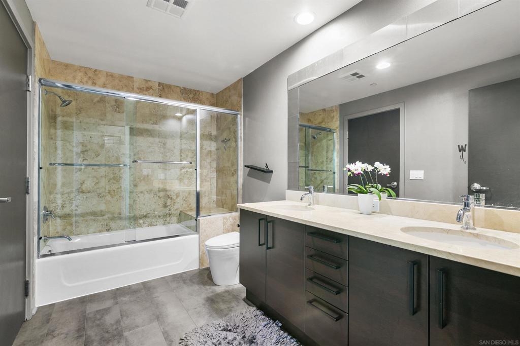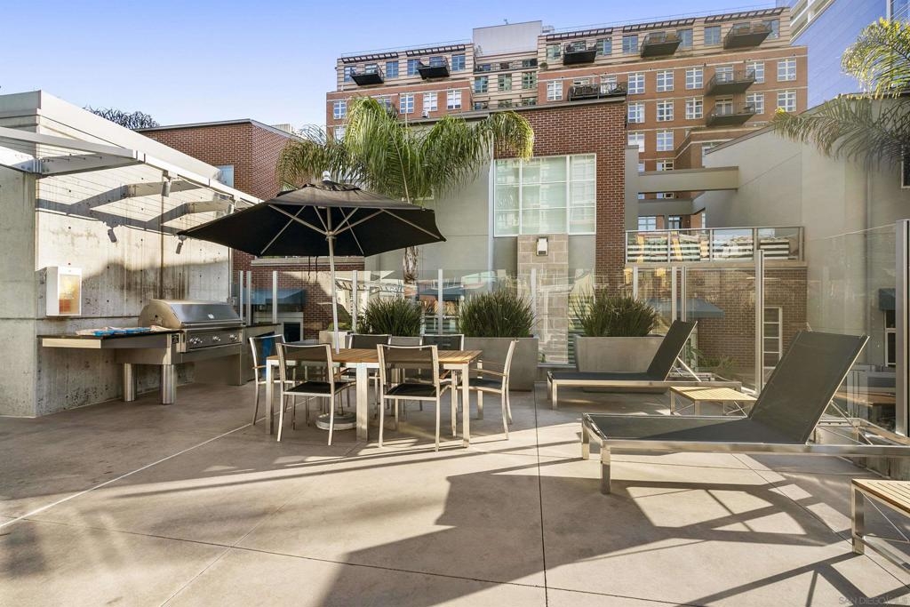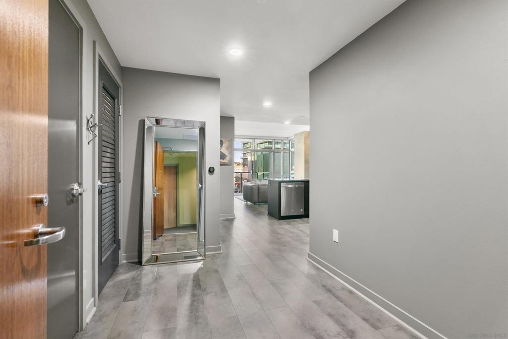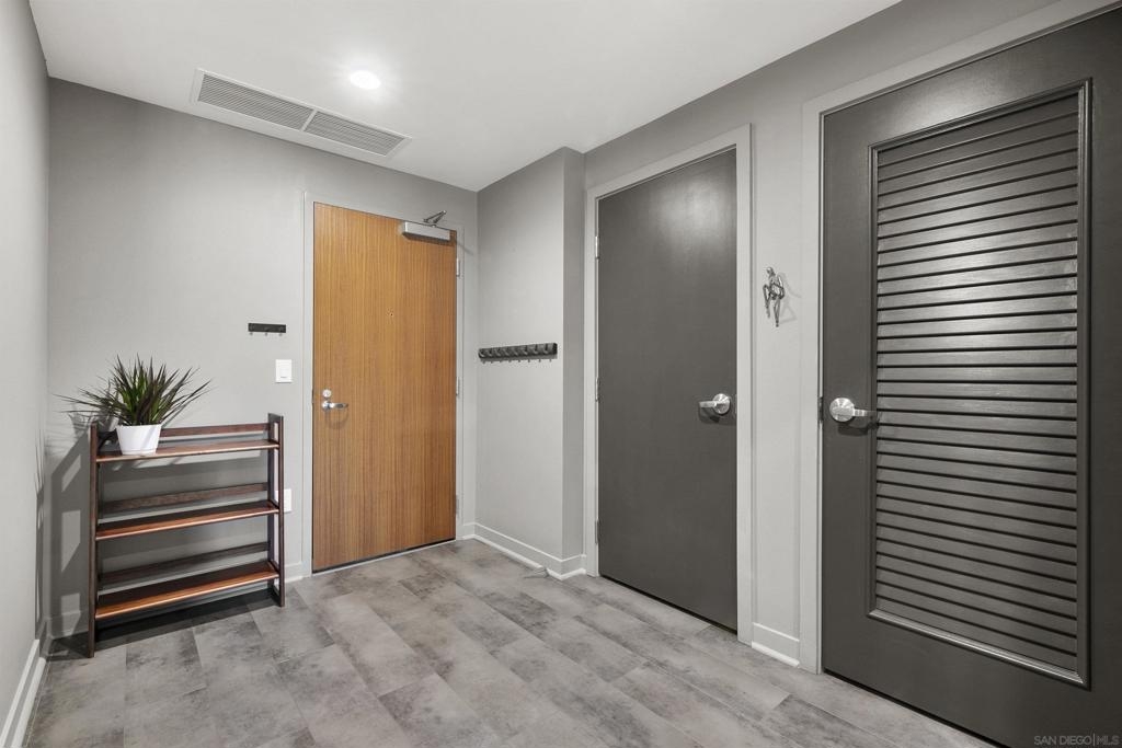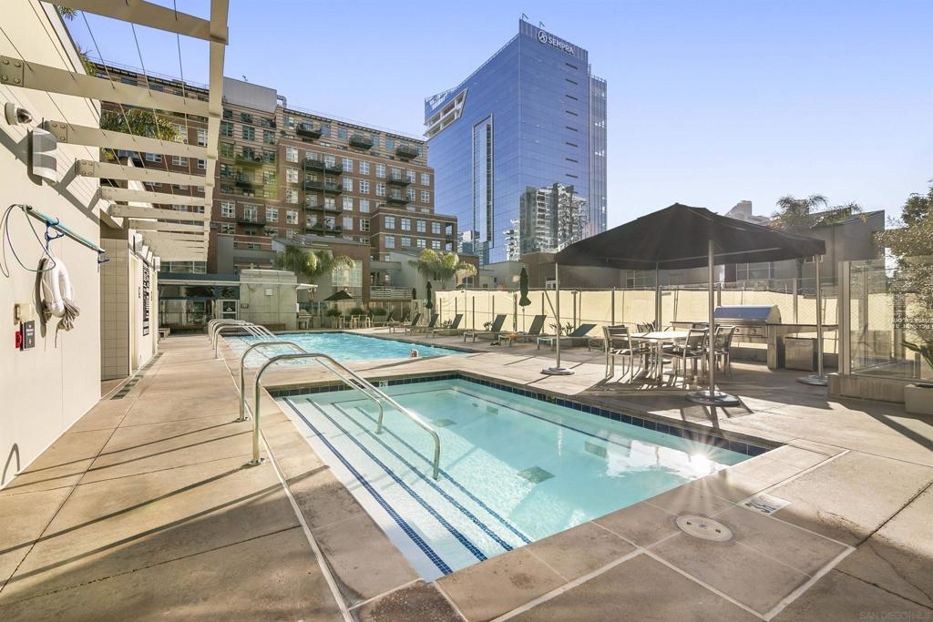 Located in the vibrant East Village neighborhood of downtown San Diego, The Mark is an opulent residential high-rise that offers a lifestyle of convenience and luxury. The living area is lit by expansive floor-to-ceiling windows, inviting in natural light to create a warm ambiance complemented by full electronic shades, LVP flooring throughout, new HVAC system, and a custom Elfa storage system. This spacious 1-bedroom condo boasts a well-designed floor plan that prioritizes privacy and functionality, with the master bedroom featuring a walk-in closet, and includes separate large secured storage closet. Positioned on the 6th floor with a north-facing orientation, this unit showcases breathtaking views of the San Diego city skyline from its private balcony. The Mark is renowned as one of East Village's premier and most luxurious buildings, providing 24-hour security, concierge service, a saltwater pool and spa, a gym, and a conference room. The Mark is an impressive 32-story residential high-rise located in the East Village Its prime location offers close proximity to 5-star restaurants, sidewalk cafes, music venues, theaters, shopping, and Petco Park, as well as being just minutes away from the bay. Upon arrival, residents are welcomed by an elegant entry and 24-hour lobby attendants. The common area of The Mark boasts lavish outdoor spaces, including a pool, spa, fully furnished patio area with multiple barbecue areas, outdoor showers, and restrooms. Additionally, residents can enjoy amenities such as a fitness center and a conference room with Wi-Fi within the tower. The well-lit garage provides parking space and a oversized storage room. Currently The Mark amenities are being fully renovated including flooring, lobby entrance, exterior upgrades and complete outdoor entertaining area!