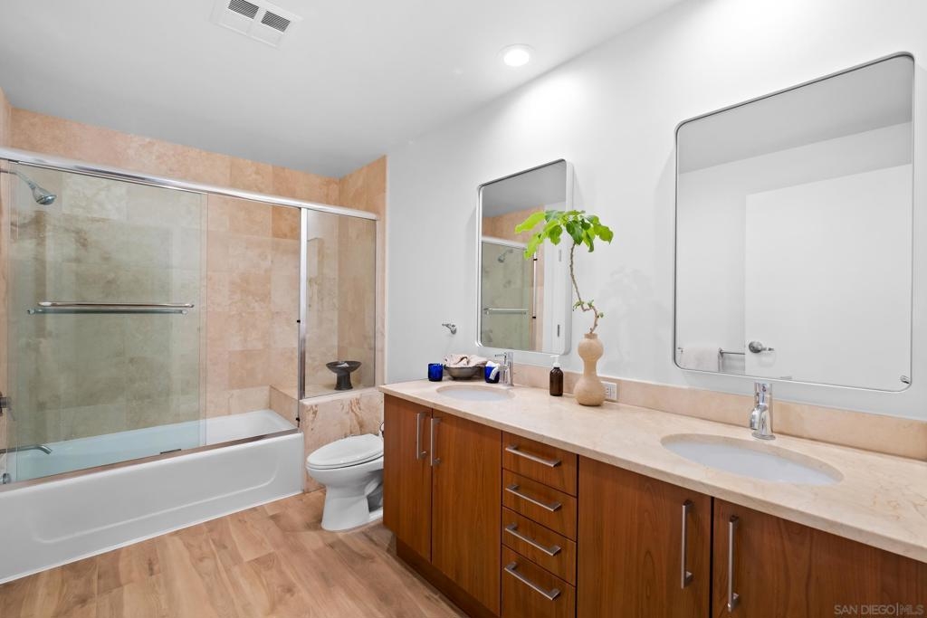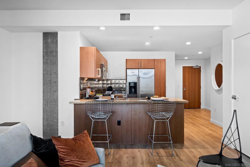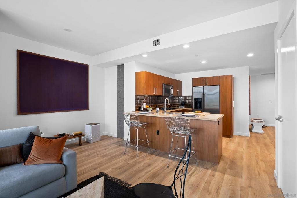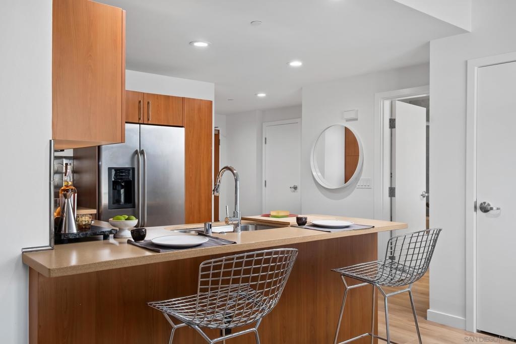 Now Offered at $684,000 with an $8,000 Credit Toward 2-1 Rate Buydown Welcome to The Mark #704, a modern 1-bedroom, 1.5-bath condo with 2 parking spaces, located in the highly desirable East Village neighborhood of Downtown San Diego. This spacious 7th floor residence is just minutes from Petco Park, the Gaslamp Quarter, and San Diego’s best restaurants, nightlife, and waterfront attractions. Inside, the home features a bright open layout with floor-to-ceiling windows, a private balcony offering stunning city skyline views, and a sleek kitchen equipped with granite countertops, stainless steel appliances, and contemporary cabinetry. The open-concept living area offers flexibility for both entertaining and everyday comfort. Additional features include in-unit laundry, central A/C, and two reserved garage parking spaces, along with a private storage unit, all within a secure, full-service building. The Mark has recently completed major common area renovations and will soon unveil a fully updated fitness center. Building amenities include a 24-hour concierge, lap pool, spa, conference room, outdoor BBQs, and dog-friendly outdoor areas.This is a standout opportunity for local professionals, second-home buyers, or investors seeking strong rental potential and long-term value. The seller is now offering a $10,000 price reduction and an $8,000 credit toward a 2-1 interest rate buydown providing your bu with significant monthly mortgage savings, especially in the first two years of ownership. Don't miss your chance to own in one of downtown’s premier high-rises. View it today!