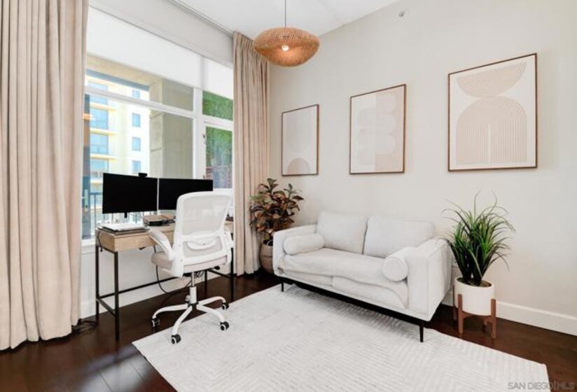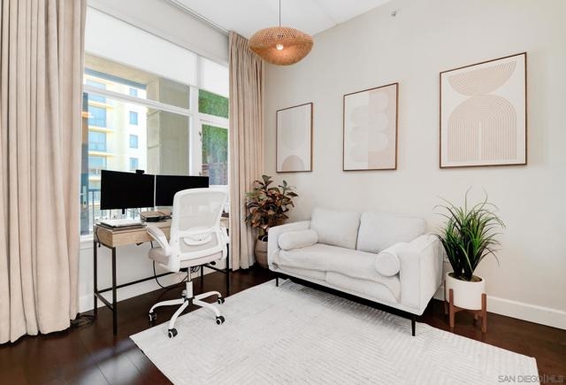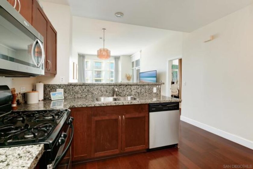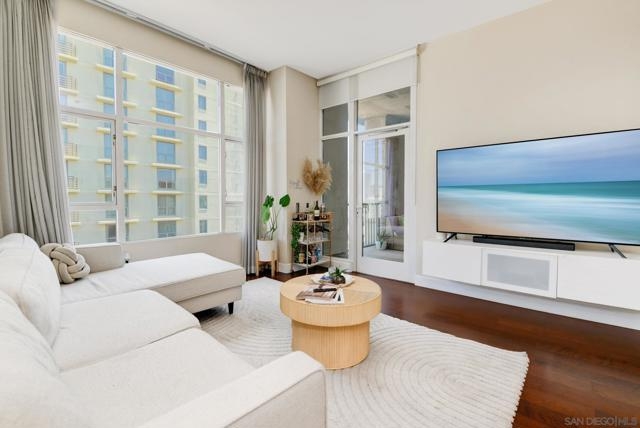 Rarely available PENTHOUSE condo at Trellis Fifth Avenue in the Gaslamp District!! With no one above you, the 10-foot ceilings create an open, spacious, light, bright feel, met with the look of warm, rich, wood floors. The kitchen features granite countertops, stainless appliances, GAS stove and oven, and ample wood cabinetry. The two bedrooms and two bathrooms are separated, on either side of the living space, adding a level of privacy to each. Relax on the balcony, with a southwest view of Petco Park and the Coronado Bridge… …or walk southeast along K street 5th and 6th avenues where it’s 1 block to Petco Park, 2 blocks to the Convention Center, easy access to the harbor, Rady Shell, Seaport Village, Waterfront Park and a diverse array of shops, restaurants, cultural and historic landmarks, as well as the means to go well beyond by accessing the trolley and train station. If you prefer to stay at home and get a full body workout on your schedule, head to the 2nd floor 24-Hour gym, or to the terrace courtyard with friends, complete with tables, chairs, barbecue grills, couches, lounging areas and plants for a serene outdoor living ambiance amidst the city. Trellis is a controlled access building with secured underground parking and onsite security 7 nights a week. The HOA also covers the cost of water, trash, and sewer. If CITY LIFE is what you’re looking for come experience what life here in this condo would be like!