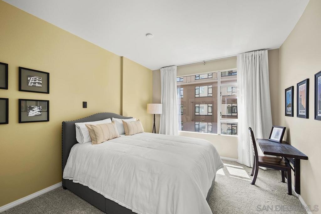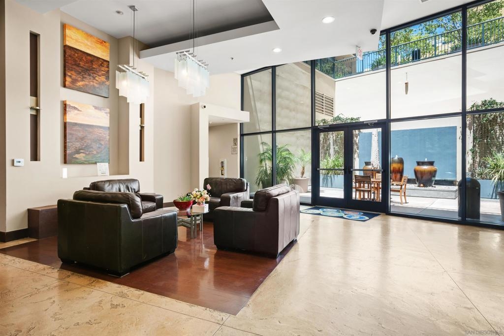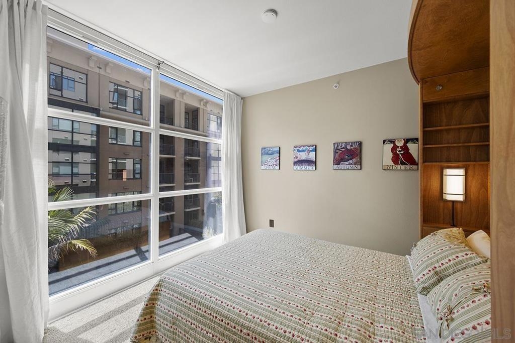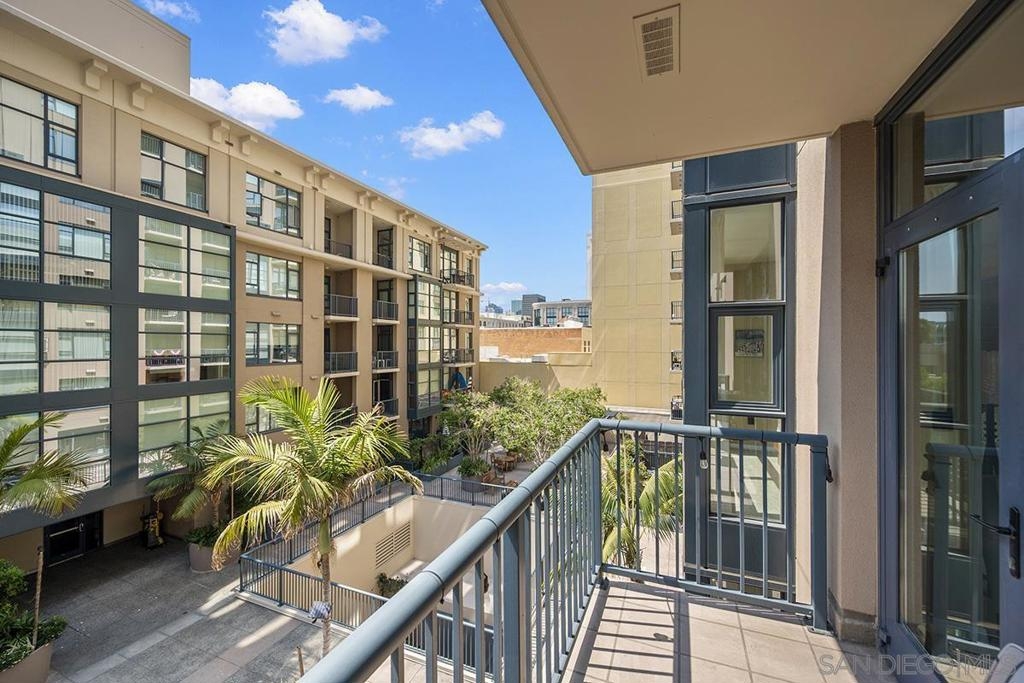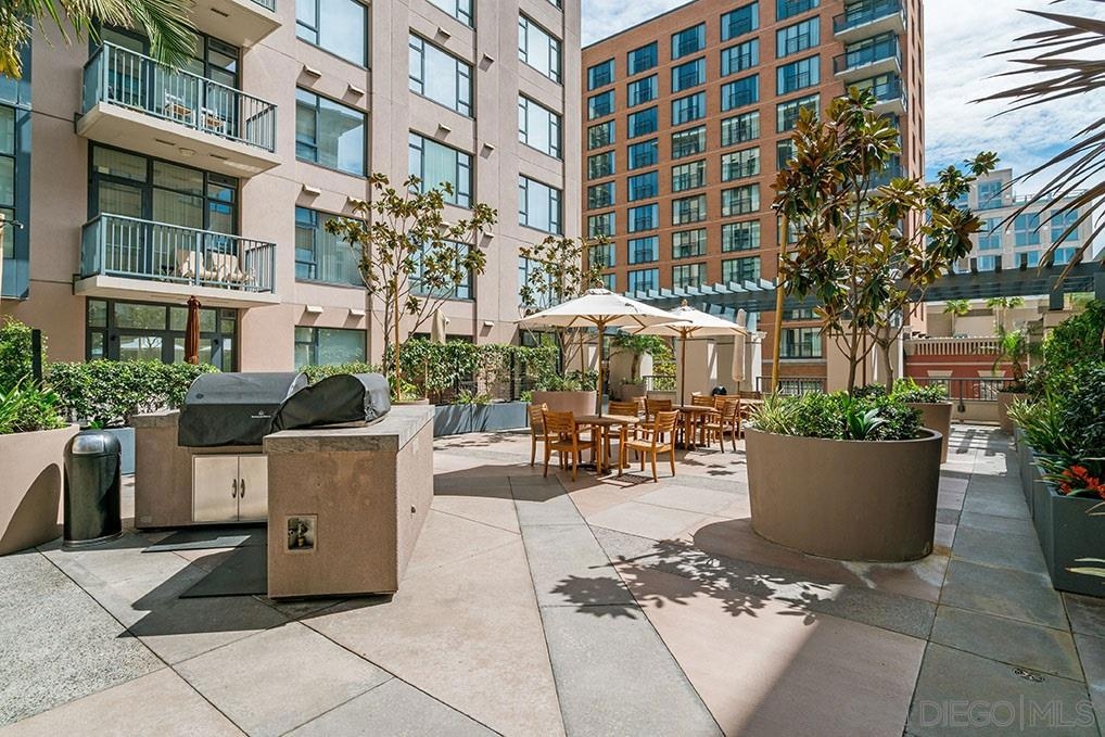 Unbeatable location meets peaceful retreat at this west-facing residence in Trellis! Nestled in the heart of the vibrant Gaslamp Quarter and just blocks from Petco Park, this pristine and move-in ready home offers one of the most desirable floor plans in the building. Enjoy rare tranquility thanks to its prized interior placement, with a private balcony that directly overlooks the community’s interior courtyard. Inside, an expanded flexible den/bonus area filled with windows makes the perfect home office or guest space, complete with a custom lighted Murphy bed system. The open-concept kitchen shines with granite countertops, ample cabinetry, and a full suite of brand-new stainless appliances. Additional upgrades include new LED light fixtures throughout, a new stackable washer/dryer, new smoke detectors, and updated 1/4 turn shut-off valves and supply lines throughout. Bonus features include upgraded outlets and switches (some with USB ports), a rare separate private storage unit, and a parking space just steps from the elevator. Whether you're commuting or exploring all that Downtown San Diego has to offer, comfort and convenience are always at your doorstep. Trellis is located on the northeast corner of 5th Avenue and K Street in Downtown’s dynamic Gaslamp Quarter. Amenities include a common entertainment courtyard, barbecues, and a well-equipped fitness center. Residents will enjoy two high-speed elevators and a myriad of retailers on the ground floor only steps away. Perfect for part-time dwellers, you will love the easy lock-and-leave lifestyle this amazing complex offers. Located in the heart of the Gaslamp Quarter, easy walkability is yours! Enjoy restaurants, bars, entertainment, Petco Park, the Embarcadero, and all the best Downtown has to offer. Every convenience is at your feet. Welcome home!
