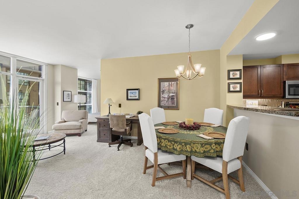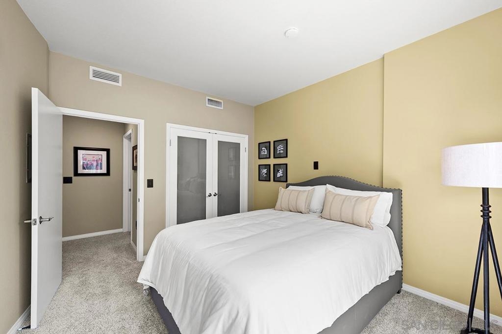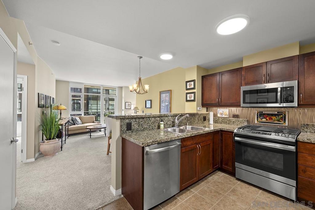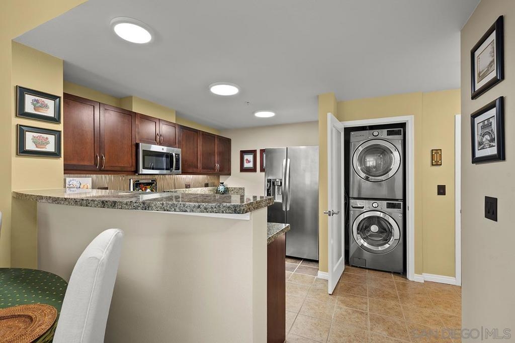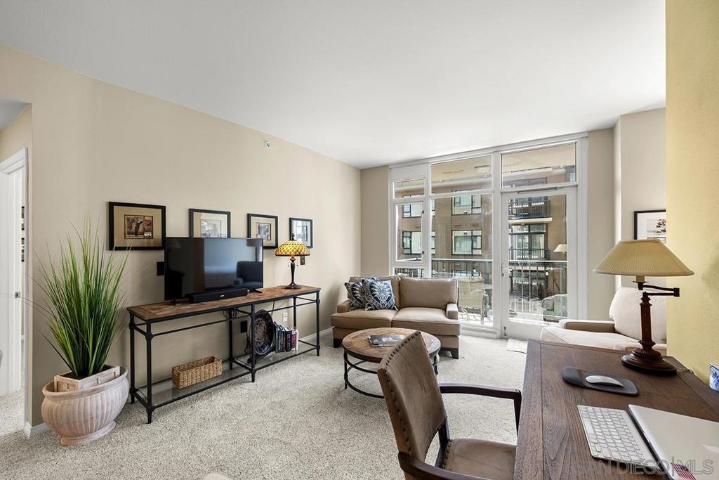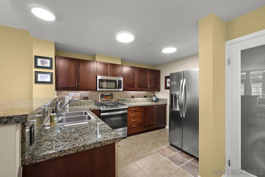 Unbeatable location meets peaceful retreat at this west-facing residence in Trellis! Nestled in the heart of the vibrant Gaslamp Quarter and just blocks from Petco Park, this pristine and move-in ready home offers one of the most desirable floor plans in the building. Enjoy rare tranquility thanks to its prized interior placement, with a private balcony that directly overlooks the community’s interior courtyard. Inside, an expanded flexible den/bonus area filled with windows makes the perfect home office or guest space, complete with a custom lighted Murphy bed system. The open-concept kitchen shines with granite countertops, ample cabinetry, and a full suite of brand-new stainless appliances. Additional upgrades include new LED light fixtures throughout, a new stackable washer/dryer, new smoke detectors, and updated 1/4 turn shut-off valves and supply lines throughout. Bonus features include upgraded outlets and switches (some with USB ports), a rare separate private storage unit, and a parking space just steps from the elevator. Whether you're commuting or exploring all that Downtown San Diego has to offer, comfort and convenience are always at your doorstep. Trellis is located on the northeast corner of 5th Avenue and K Street in Downtown’s dynamic Gaslamp Quarter. Amenities include a common entertainment courtyard, barbecues, and a well-equipped fitness center. Residents will enjoy two high-speed elevators and a myriad of retailers on the ground floor only steps away. Perfect for part-time dwellers, you will love the easy lock-and-leave lifestyle this amazing complex offers. Located in the heart of the Gaslamp Quarter, easy walkability is yours! Enjoy restaurants, bars, entertainment, Petco Park, the Embarcadero, and all the best Downtown has to offer. Every convenience is at your feet. Welcome home!