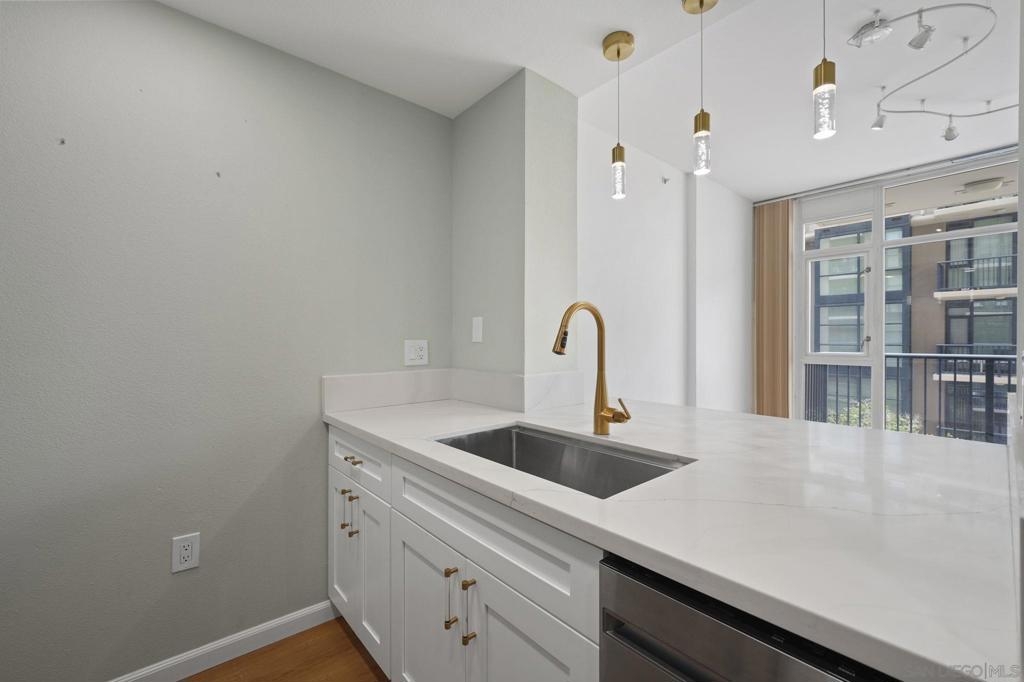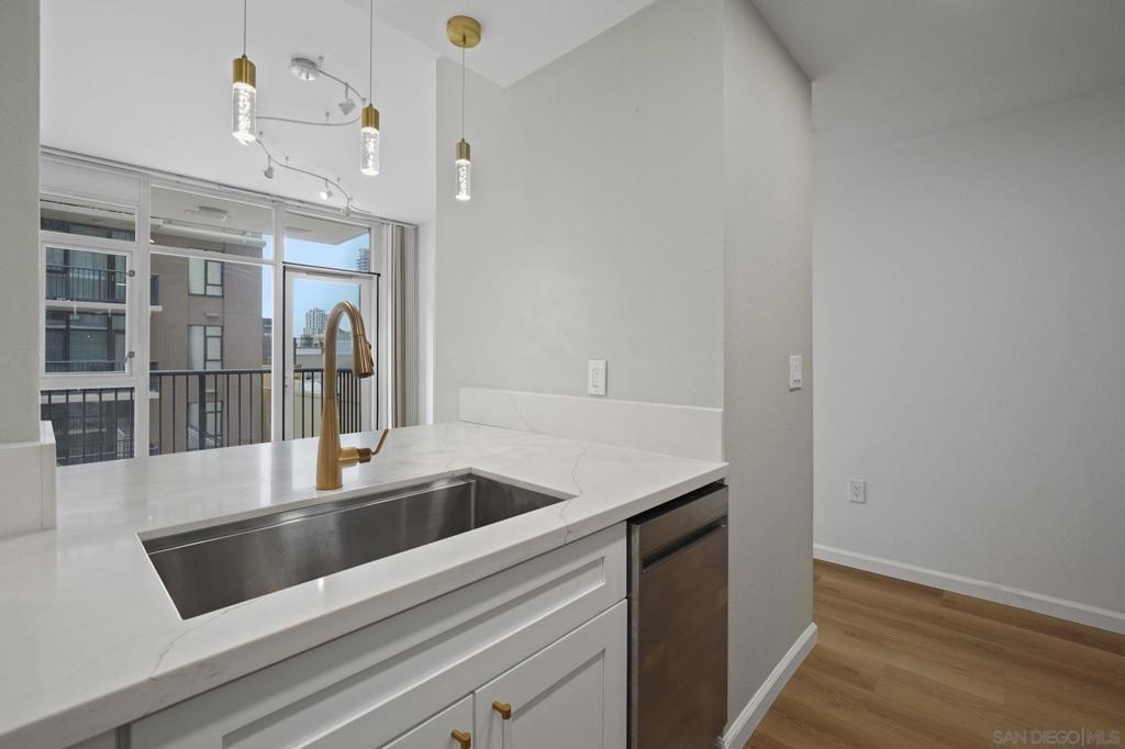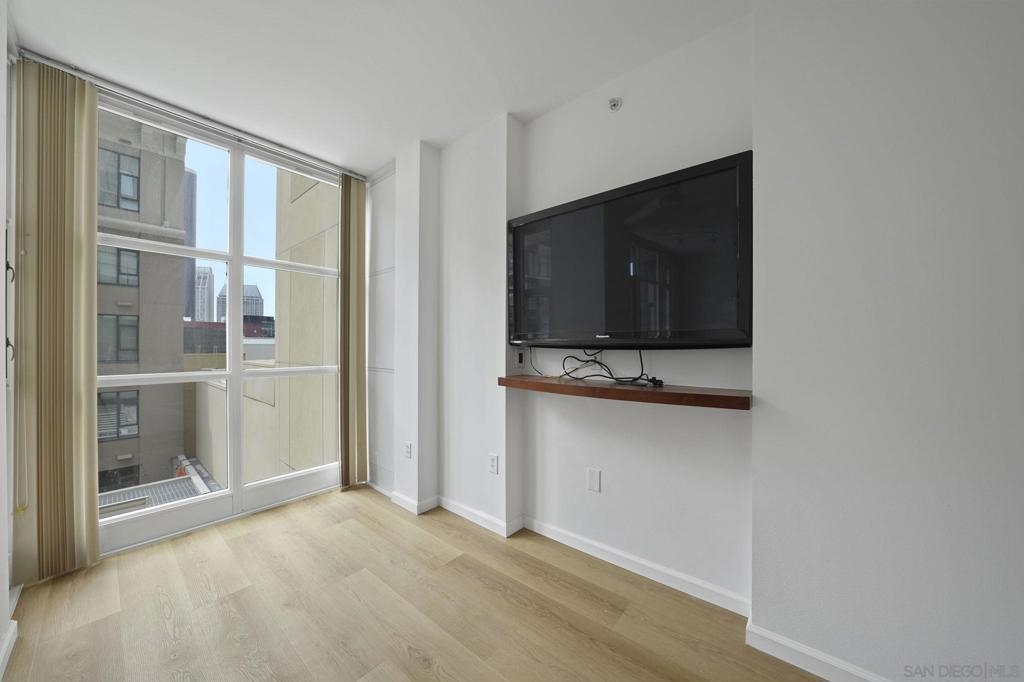Beautifully remodeled studio in the heart of the historic Gaslamp Quarter — perfect for professionals or anyone seeking a vibrant urban lifestyle. This courtyard-facing unit offers peace and privacy while still being steps from all the action. Interior features include an open layout with breakfast bar, designer fixtures, upgraded flooring, and convenient in-unit laundry. Enjoy your own private balcony, plus access to a well-maintained, gated community with secured underground parking, fitness center, BBQ area, and lush courtyard. Live just blocks from Petco Park, the Convention Center, top restaurants, nightlife, and Seaport Village — all with a warm, modern “home” feel that’s rare in downtown living.