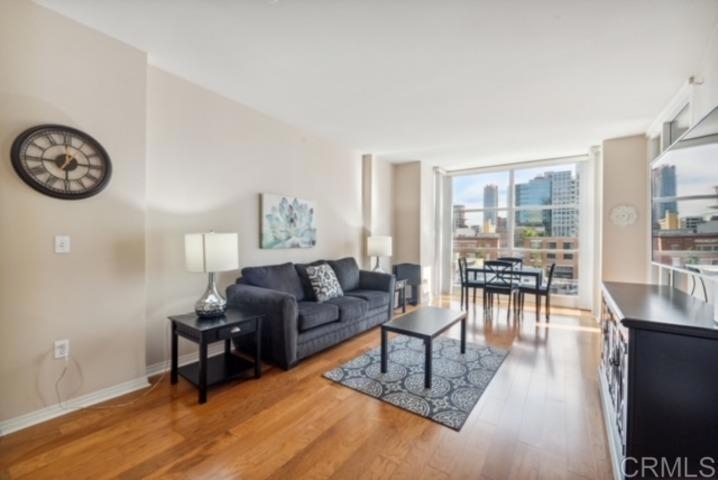 VA and FHA APPROVED with income potential!! Urban living at its finest in the heart of Downtown San Diego at centrally located Trellis. 5th floor end unit with private patio, perfect to take in the gorgeous San Diego sunsets and Cityscape. Walk to all dining, entertainment, Seaport Village, Petco Park and happenings in the Gaslamp Quarter. Stainless appliances in kitchen, granite countertops. Large bath with washer & dryer. Great investment property opportunity with 30 day rentals allowed. Selling condo fully furnished. Common Area BBQ Patio with lounge seating great for entertaining and Gym.