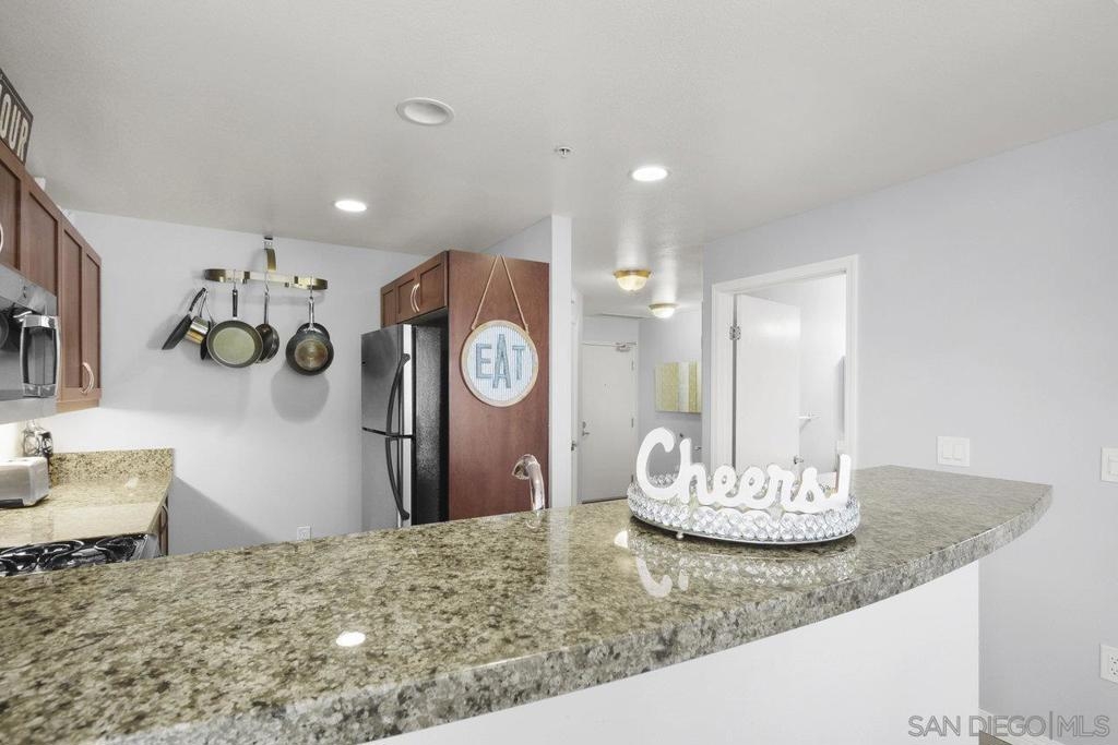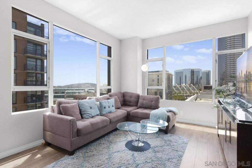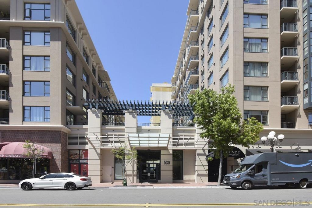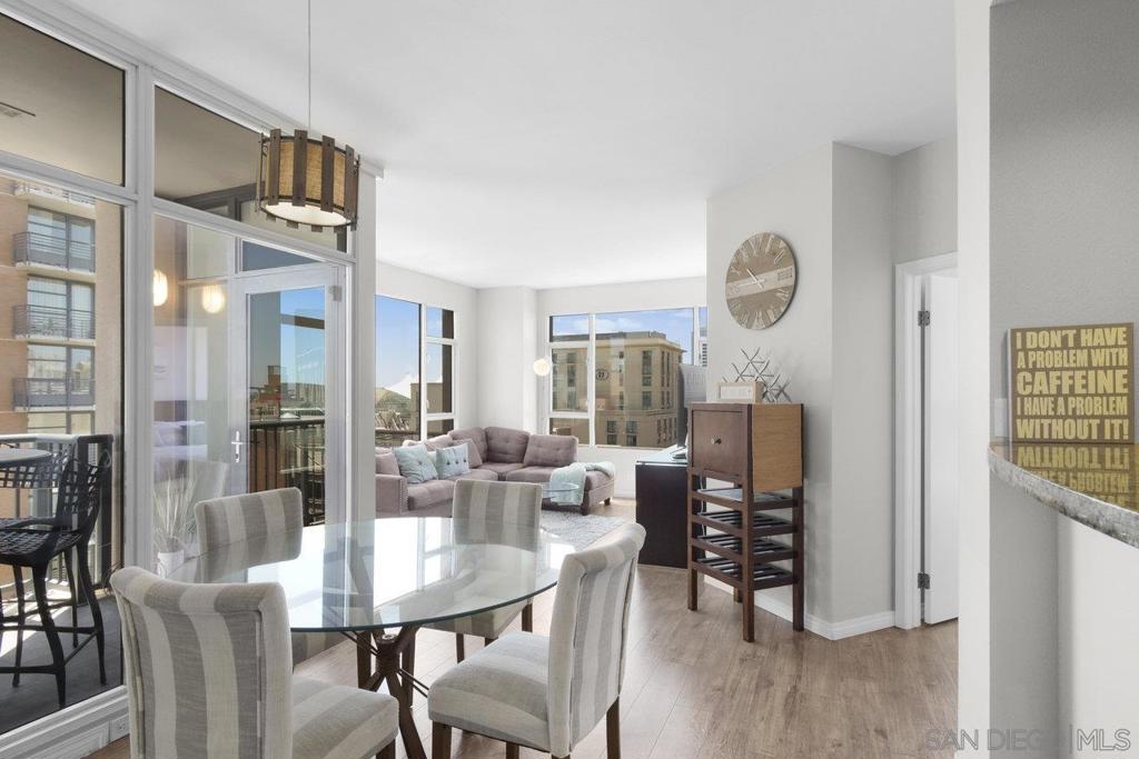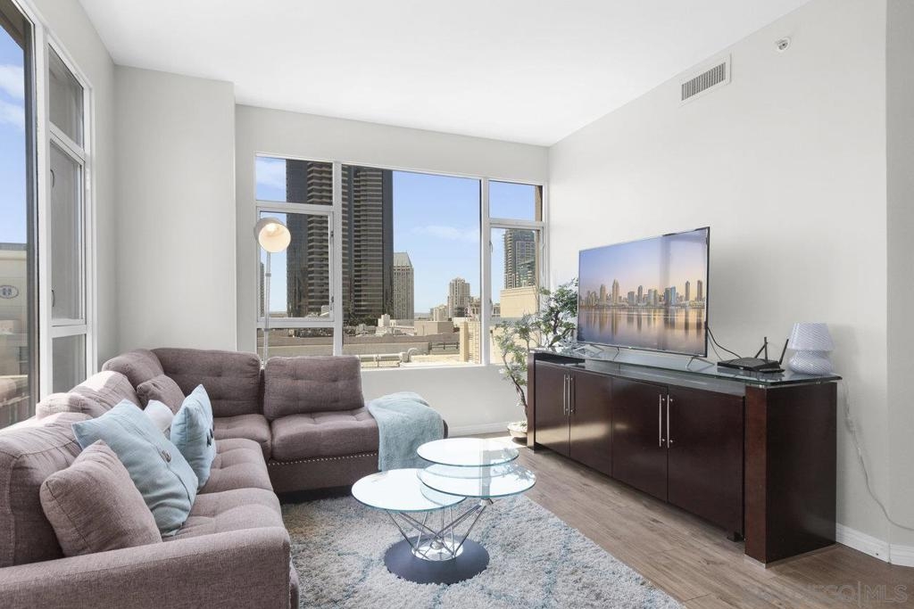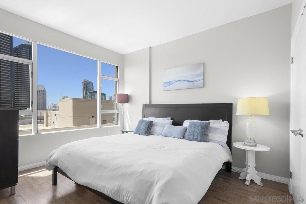Experience the epitome of urban elegance in this impressive 8th-level abode, boasting panoramic views of the cityscape from the exclusive, secure enclave of Trellis. The home is a modern marvel, replete with sophisticated finishes, featuring a seamless layout, an in-home washer and dryer, and a balcony that presents a charming view of the city's night-time sparkle. Beautiful kitchen, adorned with sleek granite surfaces, ample cabinetry, stainless steel appliances, and casual bar seating that merges effortlessly with the living space. Retreat to the generously sized master suite which offers a wealth of wardrobe space and stunning vistas of the urban expanse. The second bedroom is equally welcoming for any guest, with a conveniently adjacent bathroom. This turnkey property comes fully furnished, ready for immediate occupancy. Residents of Trellis benefit from amenities including an outdoor BBQ area, a communal courtyard, and a second-floor fitness center. Parking is a breeze with two tandem spaces in the secure underground lot, complemented by private storage. Situated within a stone's throw of the vibrant Gaslamp Quarter, residents have access to top-tier restaurants, shops, entertainment options, and Petco Park. This property is also FHA and VA certified, with the seller's preference to sell as furnished. Seeing this exquisite home is certain to be a captivating experience!