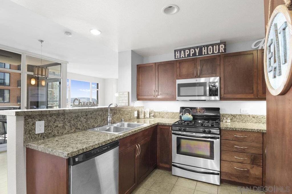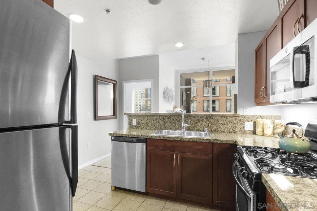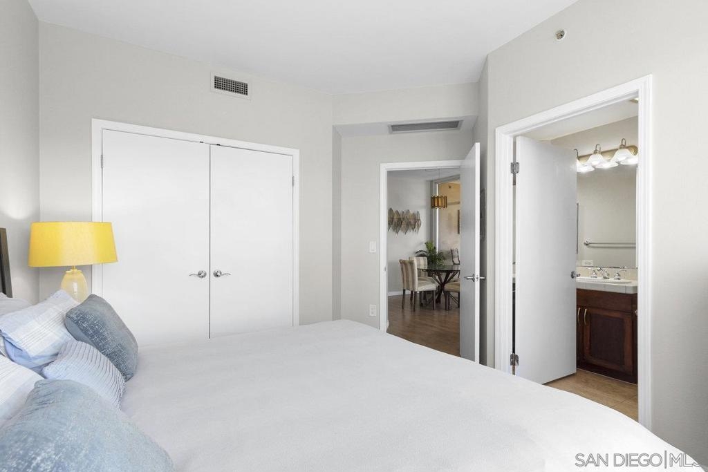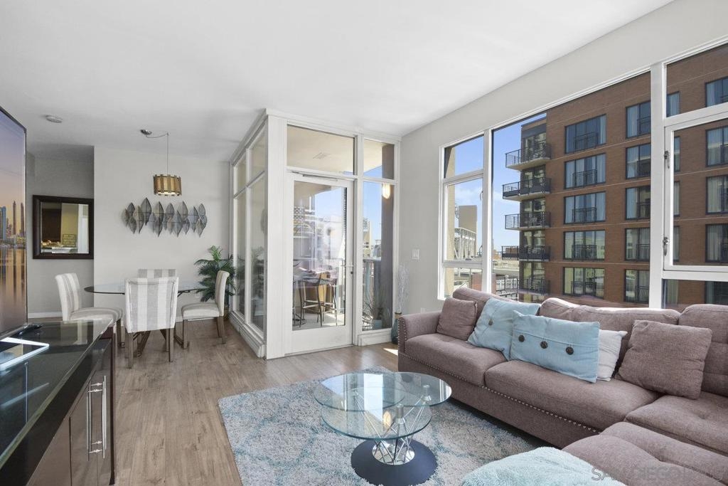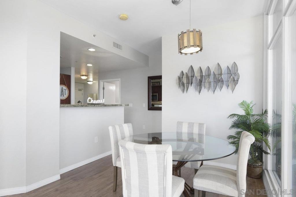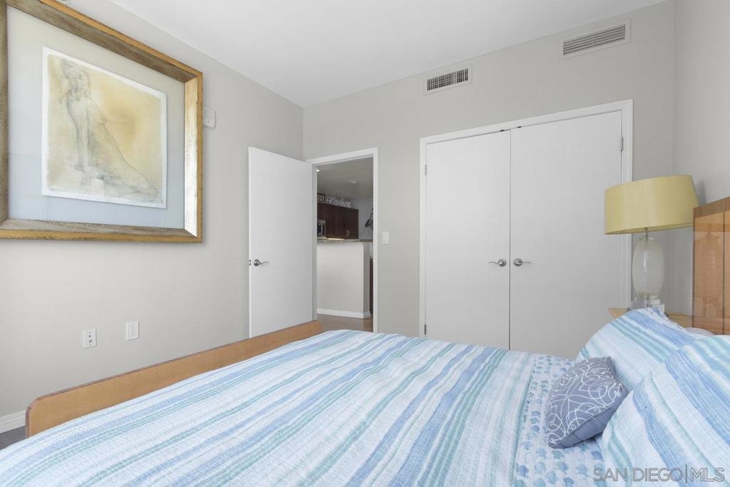 Experience the epitome of urban elegance in this impressive 8th-level abode, boasting panoramic views of the cityscape from the exclusive, secure enclave of Trellis. The home is a modern marvel, replete with sophisticated finishes, featuring a seamless layout, an in-home washer and dryer, and a balcony that presents a charming view of the city's night-time sparkle. Beautiful kitchen, adorned with sleek granite surfaces, ample cabinetry, stainless steel appliances, and casual bar seating that merges effortlessly with the living space. Retreat to the generously sized master suite which offers a wealth of wardrobe space and stunning vistas of the urban expanse. The second bedroom is equally welcoming for any guest, with a conveniently adjacent bathroom. This turnkey property comes fully furnished, ready for immediate occupancy. Residents of Trellis benefit from amenities including an outdoor BBQ area, a communal courtyard, and a second-floor fitness center. Parking is a breeze with two tandem spaces in the secure underground lot, complemented by private storage. Situated within a stone's throw of the vibrant Gaslamp Quarter, residents have access to top-tier restaurants, shops, entertainment options, and Petco Park. This property is also FHA and VA certified, with the seller's preference to sell as furnished. Seeing this exquisite home is certain to be a captivating experience!