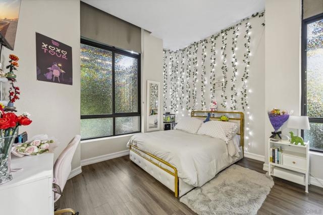 Rare First-Floor Penthouse in East Village – Private, Spacious, and One-of-a-Kind Welcome to 1400 Broadway #1101, a truly exceptional residence that redefines downtown living. This ultra-rare first-floor penthouse-style condo offers unmatched privacy with no shared walls, loft-like 12-foot ceilings, and a location that puts you in the heart of East Village—without sacrificing peace and quiet. Step into a bright, open-concept living space that blends modern luxury with architectural drama. Brand-new luxury vinyl plank flooring flows throughout, while oversized windows flood the space with natural light. The gourmet kitchen boasts granite countertops, a full-height tile backsplash, and stainless steel appliances, making it perfect for cooking and entertaining in style. What sets this condo apart: Completely detached unit—no adjoining neighbors for ultimate privacy Soaring 12-foot ceilings—a dramatic and rare architectural feature Ground-level access—the ease of first-floor living with the feel of a penthouse Central A/C and in-unit washer/dryer for everyday comfort and convenience Located in Union Square at Broadway, this residence also includes access to luxury amenities: a modern fitness center, spa, sauna, resident lounge, EV charging stations, bike storage, and outdoor BBQ areas. Situated directly across from the Police HQ and steps from City College, you'll be within walking distance of San Diego’s top dining, nightlife, and cultural destinations. This is more than a condo—it’s a unique lifestyle opportunity rarely seen on the market. Rare First-Floor Penthouse in East Village – Private, Spacious, and One-of-a-Kind Welcome to 1400 Broadway #1101, a truly exceptional residence that redefines downtown living. This ultra-rare first-floor penthouse-style condo offers unmatched privacy with no shared walls, loft-like 12-foot ceilings, and a location that puts you in the heart of East Village—without sacrificing peace and quiet. Step into a bright, open-concept living space that blends modern luxury with architectural drama. Brand-new luxury vinyl plank flooring flows throughout, while oversized windows flood the space with natural light. The gourmet kitchen boasts granite countertops, a full-height tile backsplash, and stainless steel appliances, making it perfect for cooking and entertaining in style. What sets this condo apart: Completely detached unit—no adjoining neighbors for ultimate privacy Soaring 12-foot ceilings—a dramatic and rare architectural feature Ground-level access—the ease of first-floor living with the feel of a penthouse Central A/C and in-unit washer/dryer for everyday comfort and convenience Located in Union Square at Broadway, this residence also includes access to luxury amenities: a modern fitness center, spa, sauna, resident lounge, EV charging stations, bike storage, and outdoor BBQ areas. Situated directly across from the Police HQ and steps from City College, you'll be within walking distance of San Diego’s top dining, nightlife, and cultural destinations. This is more than a condo—it’s a unique lifestyle opportunity rarely seen on the market. Come experience this East Village gem in person before it’s gone.