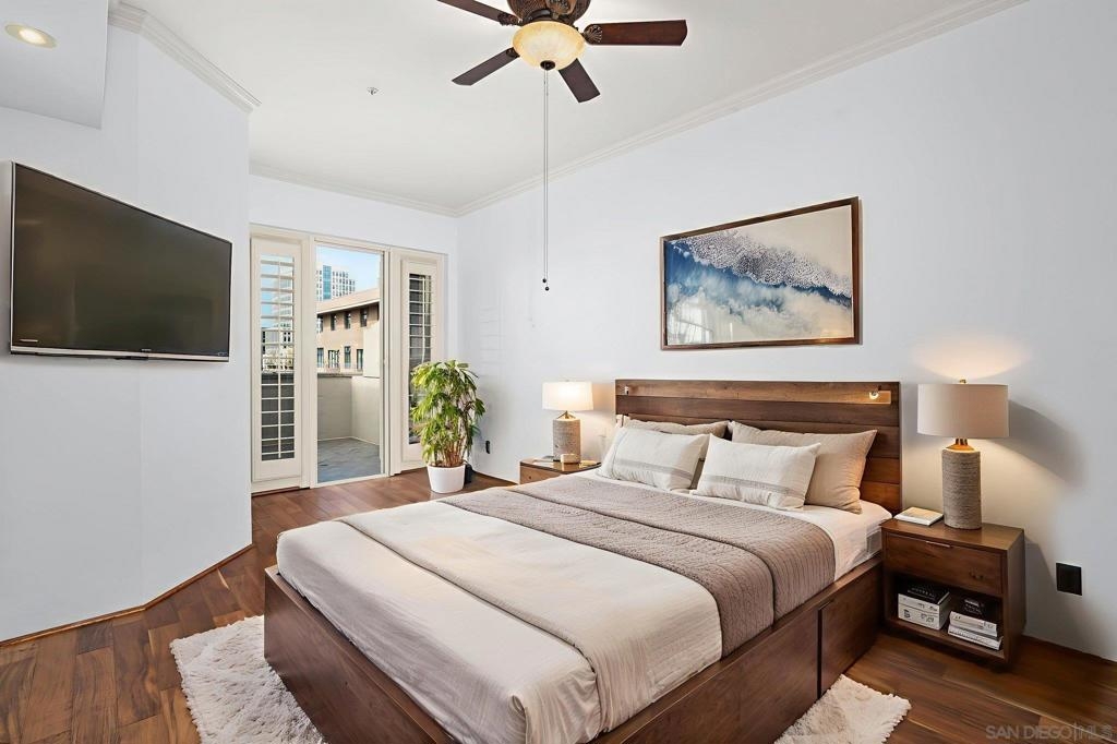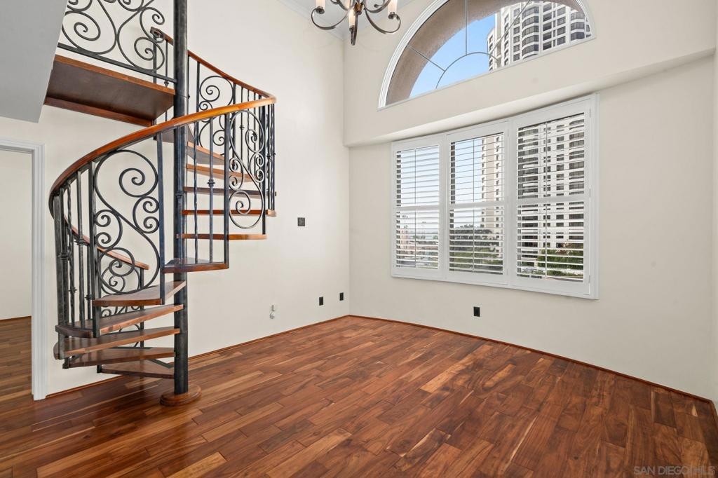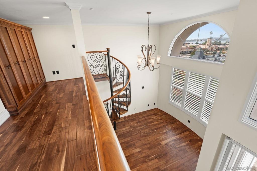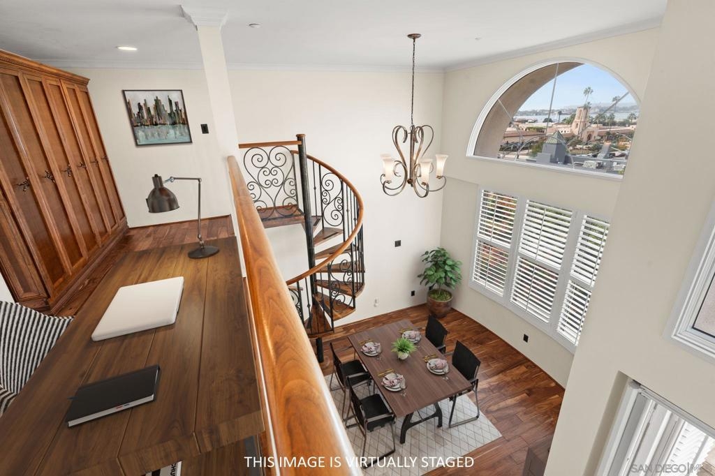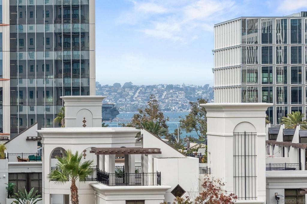 Top-Floor Condo with Bay Views in the Heart of the Marina District! Welcome to the Watermark, a boutique midrise building in Downtown San Diego. This west-facing 4th-floor residence offers vaulted ceilings, arched windows, and no one above you. Enjoy bay views and fireworks year-round from your private terrace, accessible via French doors from the living room and bedroom. Open kitchen with custom cabinetry and a counter-height bar flows into the great room. A custom spiral staircase leads to a spacious loft, adding bonus square footage. Just steps to Little Italy, the Embarcadero, and top dining & entertainment. Only 96 residences in this urban-classic community. Welcome to the Watermark – A Boutique Midrise in the Heart of the Marina District, Downtown San Diego Discover urban living at its finest in this beautifully appointed fourth-floor residence in the sought-after Watermark building. Perfectly situated in the vibrant Marina District, you’re just steps from the best of Downtown dining, Little Italy, the Embarcadero, and year-round waterfront activities. This west-facing home offers stunning bay views and front-row seats to fireworks displays throughout the year. As a top-floor unit with no one above, you'll enjoy added privacy and tranquility. Soaring vaulted ceilings and expansive arched windows fill the space with natural light, creating an airy, open ambiance. The open-concept kitchen is designed for both style and functionality, featuring custom cabinetry, ample counter space, and a counter-height breakfast bar that seamlessly flows into the spacious great room—ideal for entertaining or relaxing in style. One of the standout features is the elegant spiral staircase leading to a versatile loft space—perfect for a home office, studio, or guest area. Bonus: the loft adds additional square footage beyond the standard floor plan. Step through French doors from both the living area and one of the bedrooms onto a private terrace to enjoy ocean breezes, sunset views, and San Diego's unbeatable climate. The Watermark is a boutique-style condominium community with only 96 residences, centered around a beautifully landscaped courtyard. Its timeless urban-classic design and prime location make it a true gem in the Marina District. Come experience the perfect blend of elegance, location, and lifestyle—all year long at the Watermark.
