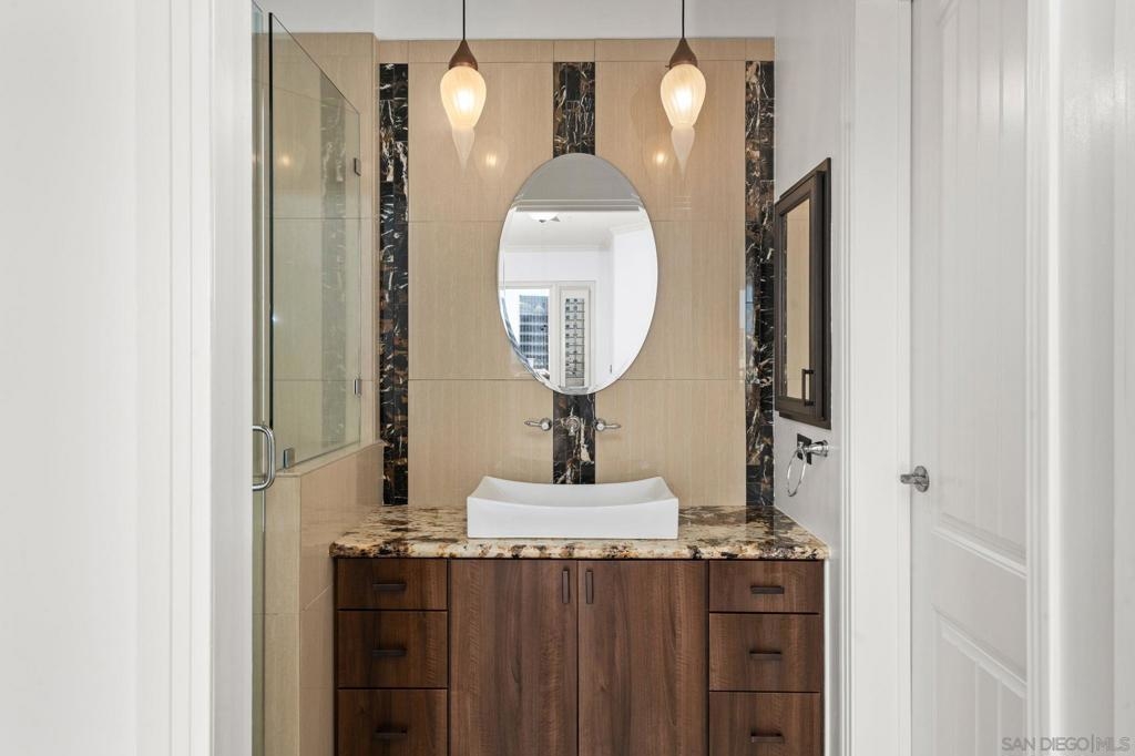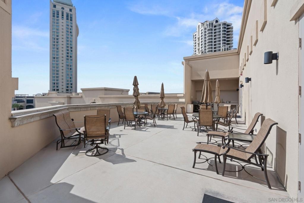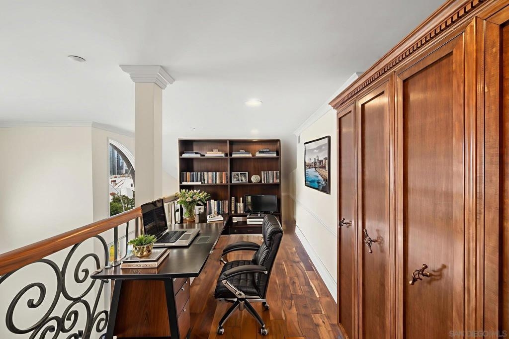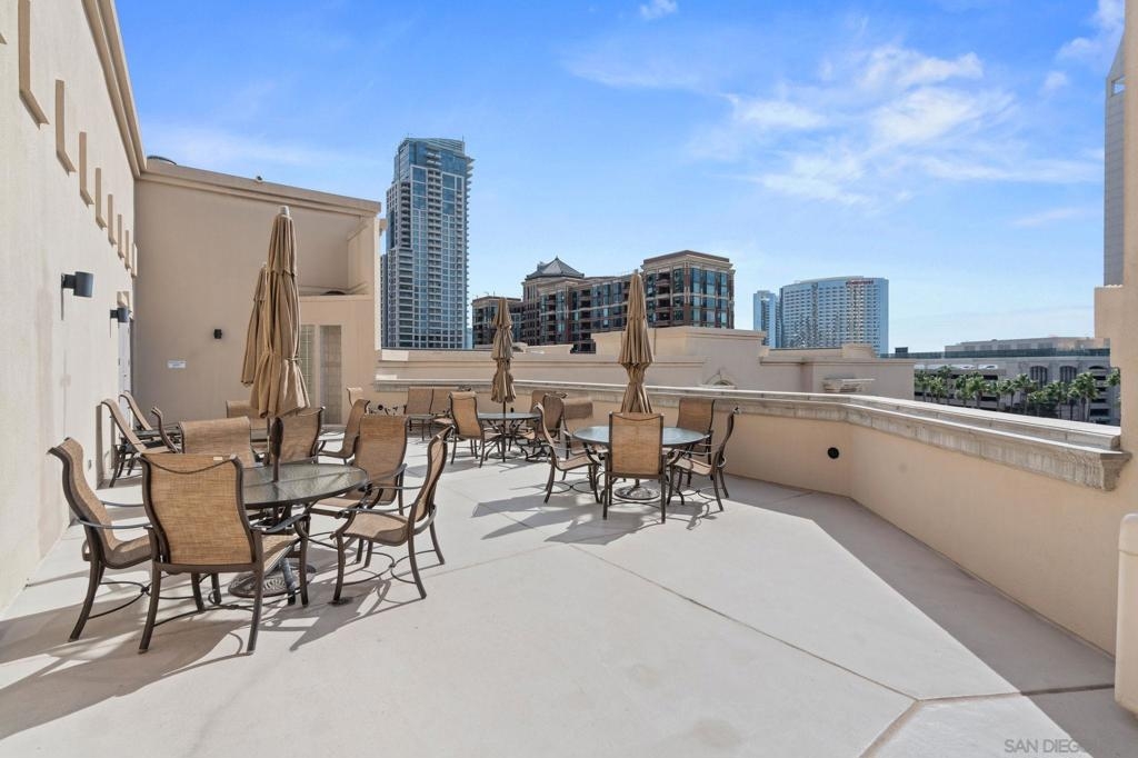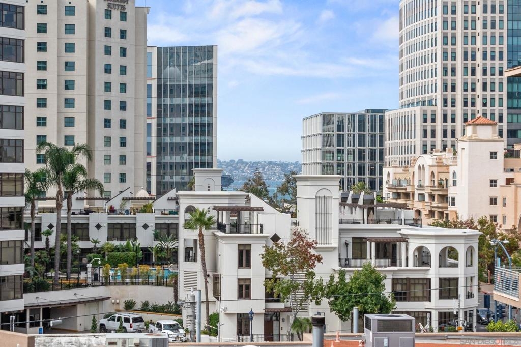 Top-Floor Condo with Bay Views in the Heart of the Marina District! Welcome to the Watermark, a boutique midrise building in Downtown San Diego. This west-facing 4th-floor residence offers vaulted ceilings, arched windows, and no one above you. Enjoy bay views and fireworks year-round from your private terrace, accessible via French doors from the living room and bedroom. Open kitchen with custom cabinetry and a counter-height bar flows into the great room. A custom spiral staircase leads to a spacious loft, adding bonus square footage. Just steps to Little Italy, the Embarcadero, and top dining & entertainment. Only 96 residences in this urban-classic community. Welcome to the Watermark – A Boutique Midrise in the Heart of the Marina District, Downtown San Diego Discover urban living at its finest in this beautifully appointed fourth-floor residence in the sought-after Watermark building. Perfectly situated in the vibrant Marina District, you’re just steps from the best of Downtown dining, Little Italy, the Embarcadero, and year-round waterfront activities. This west-facing home offers stunning bay views and front-row seats to fireworks displays throughout the year. As a top-floor unit with no one above, you'll enjoy added privacy and tranquility. Soaring vaulted ceilings and expansive arched windows fill the space with natural light, creating an airy, open ambiance. The open-concept kitchen is designed for both style and functionality, featuring custom cabinetry, ample counter space, and a counter-height breakfast bar that seamlessly flows into the spacious great room—ideal for entertaining or relaxing in style. One of the standout features is the elegant spiral staircase leading to a versatile loft space—perfect for a home office, studio, or guest area. Bonus: the loft adds additional square footage beyond the standard floor plan. Step through French doors from both the living area and one of the bedrooms onto a private terrace to enjoy ocean breezes, sunset views, and San Diego's unbeatable climate. The Watermark is a boutique-style condominium community with only 96 residences, centered around a beautifully landscaped courtyard. Its timeless urban-classic design and prime location make it a true gem in the Marina District. Come experience the perfect blend of elegance, location, and lifestyle—all year long at the Watermark.
