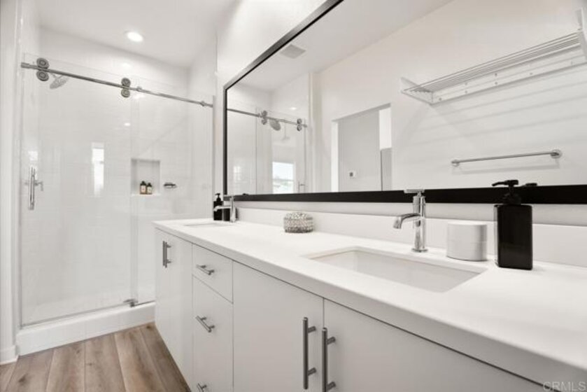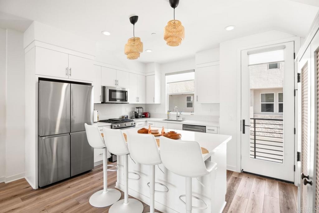 Better than new! Welcome to a highly upgraded townhome in the sought-after 3Roots community in Sorrento Mesa, featuring owned solar, smart home technology, and modern finishes throughout. Ideally situated within minutes of the Sorrento Valley tech corridor and tucked away from busy streets, the home shows like a model, with modern oak-wood-style flooring, custom blinds, and energy-efficient appliances, all with serene mountain views. The flexible entry-level bedroom with a full en-suite bath is ideal for guests, a home office, or multigenerational living, with direct access to the upgraded two-car garage complete with epoxy flooring, custom overhead storage, and integrated internet wiring. On the third floor, two additional en-suite bedrooms include a spacious primary suite with beautiful mountain views. Built within one of San Diego's most innovative, eco-conscious communities, 3Roots offers residents access to a state-of-the-art Fit and Rec Center, resort-style pools, spas, cabanas, fire pits, miles of scenic trails, and over 200 acres of preserved open space. Ideally positioned minutes from Sorrento Valley, UTC, and major employers, including Qualcomm, Apple, Illumina, and UC San Diego, with top-rated San Diego schools rounding out the package. Offered furnished or unfurnished, this turnkey home offers effortless living; just bring your suitcase and start enjoying everything this exceptional home has to offer.