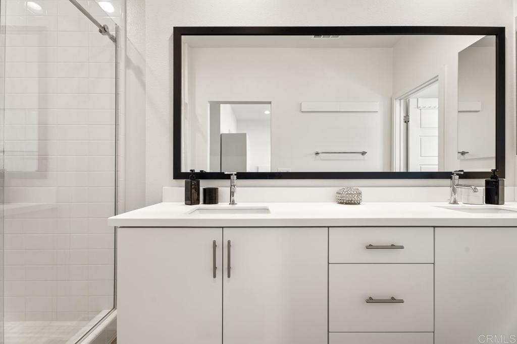 Ask about available seller credit options! May be applied toward a rate buy-down, closing costs, or other eligible buyer expenses, subject to terms and an acceptable offer. This better-than-new, highly upgraded home features PAID solar, sweeping mountain views, and designer finishes throughout, and access to award winning San Diego schools. Offered furnished or unfurnished, this home is turnkey and effortless, simply bring your suitcase and start living. Located in the established Atwood neighborhood of 3Roots, San Diego’s revolutionary “welltopia” community built around health, sustainability, and connection. This upgraded 3-bedroom, 3.5-bath home offers sweeping mountain views from one of the community’s most private and peaceful locations tucked away from busy streets yet moments from 3Roots’ resort-style amenities. Step inside and you’ll feel the difference. The open-concept layout features luxury oak wood flooring throughout, built-in smart home features, and designer upgrades that elevate every room. A chef-inspired kitchen with high-end appliances, a temperature-controlled reverse osmosis water system, and owned solar make this home both beautiful and efficient. Upstairs, retreat to two serene bedrooms, each with its own en-suite bath with beautiful views from the primary bedroom. On the entry level, you’ll find a private bedroom and full bath, perfect for guests or a home office, along with a meticulously upgraded garage featuring Tesla chargers, epoxy flooring, custom overhead storage, and integrated internet wiring, ideal for today’s connected and active lifestyle. This home is in one of 3Roots’ most peaceful pockets, and boasts mountain views and a quiet atmosphere, yet is just moments from community amenities including the FIT & REC Center, resort-style pools, walking paths, and nature-inspired parks. 3Roots is San Diego’s first Climate Action Planned Community, where over 60% of the land is dedicated to open space, trails, and parks. Located in the heart of Sorrento Mesa, you’ll enjoy an unbeatable central location, minutes from Sorrento Valley, UTC, La Jolla, and top-rated dining and shopping. Zoned for the award-winning Jonas Salk Elementary School, Challenger Middle, and Mira Mesa High, all top-performing schools in the district. With owned solar, sustainable design, and countless thoughtful upgrades, this home represents the best of modern San Diego living, a space that nurtures body, mind, and soul. This home is move-in ready, the perfect blend of modern luxury, thoughtful design, and everyday wellness. VA and FHA approved complex!