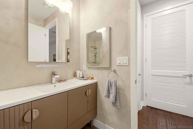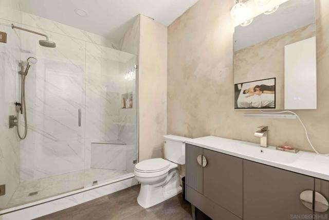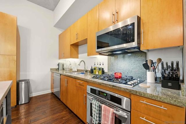 Discover modern downtown living in this stylish 1-bed, 1-bath condo in San Diego one block from Petco Park. This light-filled home features high ceilings, floor-to-ceiling windows, wood-style flooring, an updated kitchen with stainless steel appliances and granite counters, a spacious bedroom with a custom walk-in closet, and an in-unit washer/dryer. The M2i building offers secure parking, a serene courtyard, and a rooftop terrace with BBQs and city views. Just steps from cafés, restaurants, shops, Petco Park, and all the excitement of the Gaslamp Quarter, this move-in-ready unit delivers comfort, style, and unbeatable urban convenience.
