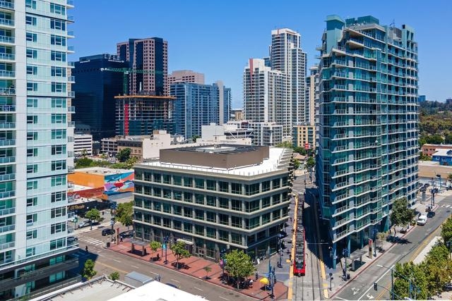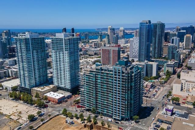Welcome to the 15th floor of Smart Corner, where modern design meets unbeatable city views. This studio features an open-concept layout, perfect for today’s lifestyle. Industrial-chic touches like exposed concrete, sleek hardwood flooring, and floor-to-ceiling windows create a bold, contemporary feel. Step out onto your private balcony and take in panoramic vistas of Balboa Park, the mountains, Coronado Bridge, and beyond. The unit comes equipped with a refrigerator, dishwasher, electric range, in-unit washer and dryer, and includes one underground parking space. Smart Corner residents enjoy exclusive access to a spectacular rooftop lounge featuring BBQ grills, a hot tub, and a community garden all set against sweeping skyline and ocean views. Located next to City College with immediate access to the Trolley and major freeways, this VA-approved building puts the entire city within reach. Don't miss your chance to live in one of East Village’s most desirable high-rises where style, convenience, and views come together.