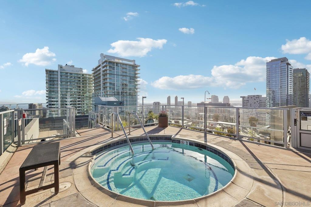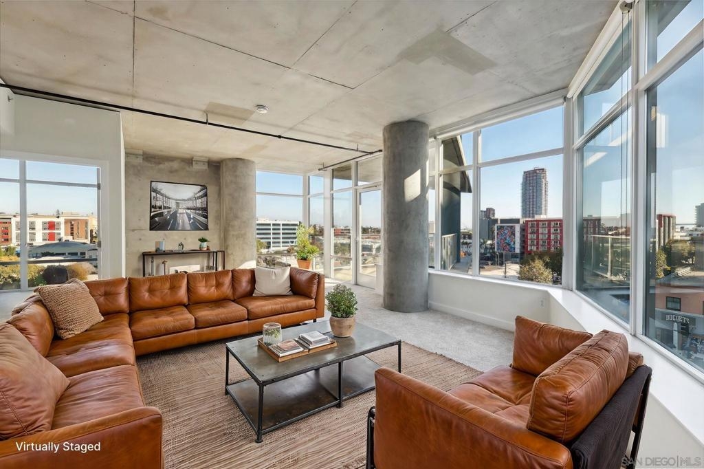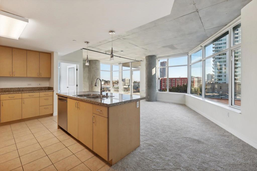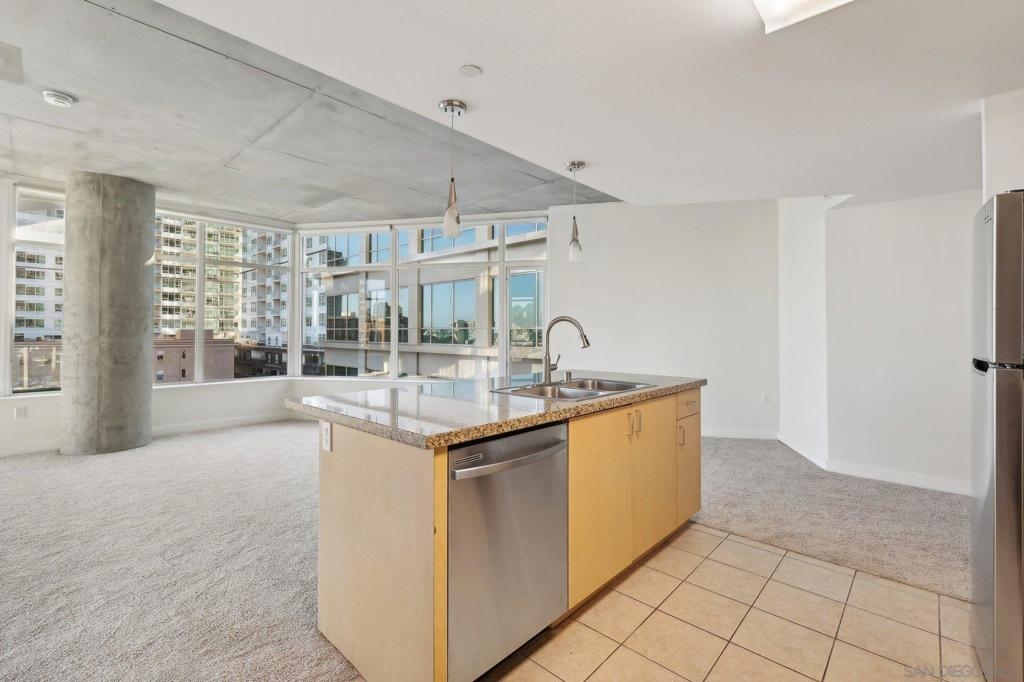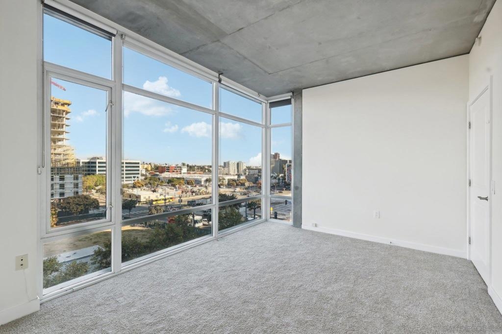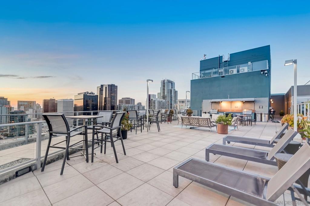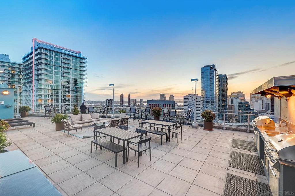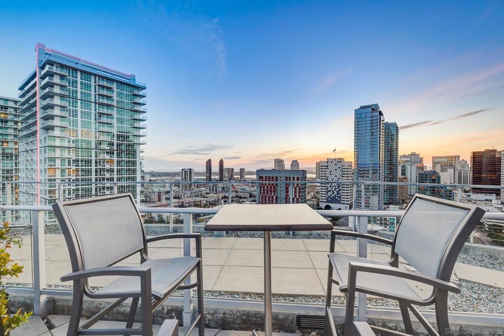 Expansive corner unit at Smart Corner with a private balcony! This bright, open-concept home features high ceilings, abundant natural light, and walls of windows to take in city views. The spacious kitchen is perfect for cooking and gathering, complete with a central island with a breakfast bar, ample cabinetry and counter space, and stainless steel appliances, opening to a large living and dining area—ideal for entertaining. The split-bedroom layout ensures privacy, with a generous primary suite offering an ensuite bath and walk-in closet, plus an additional guest bedroom and full bath. Includes in-unit laundry and two tandem parking spaces. Smart Corner is a secure residential building offering a rooftop terrace with forever 360° views, BBQ and hot tub! There is an onsite gym as well. Ideally located, you can easily access all that Downtown, Balboa Park, and nearby neighborhoods offer, including shopping, dining, nightlife, Petco Park, and convenient access to freeways and public transportation.