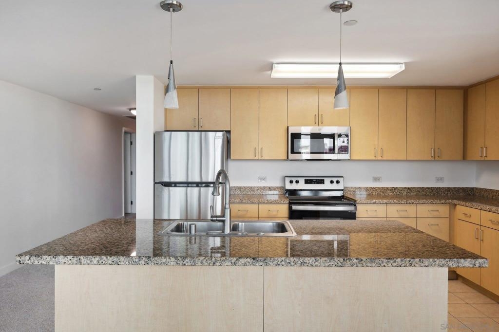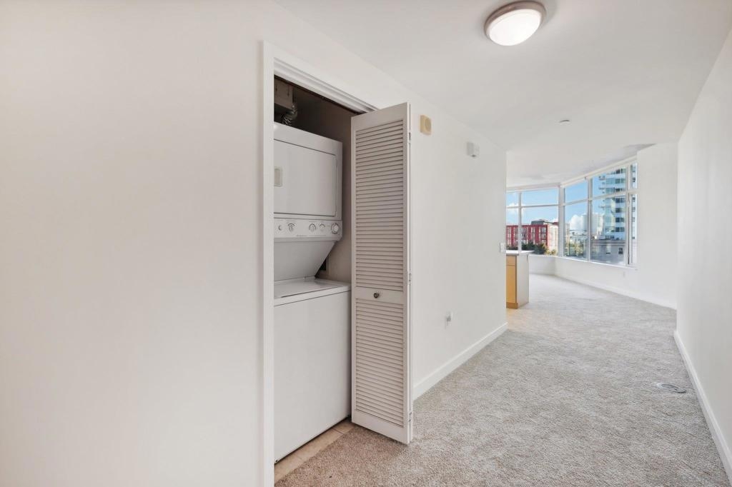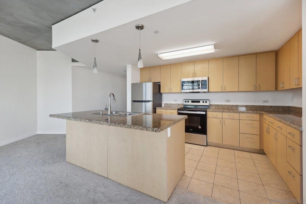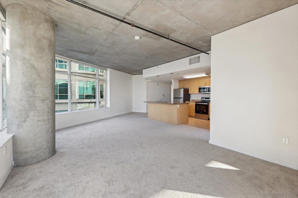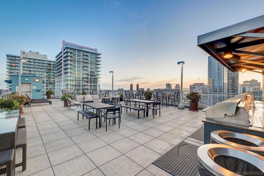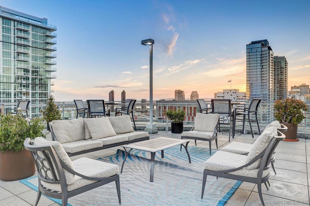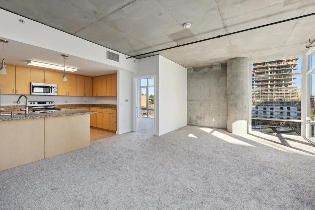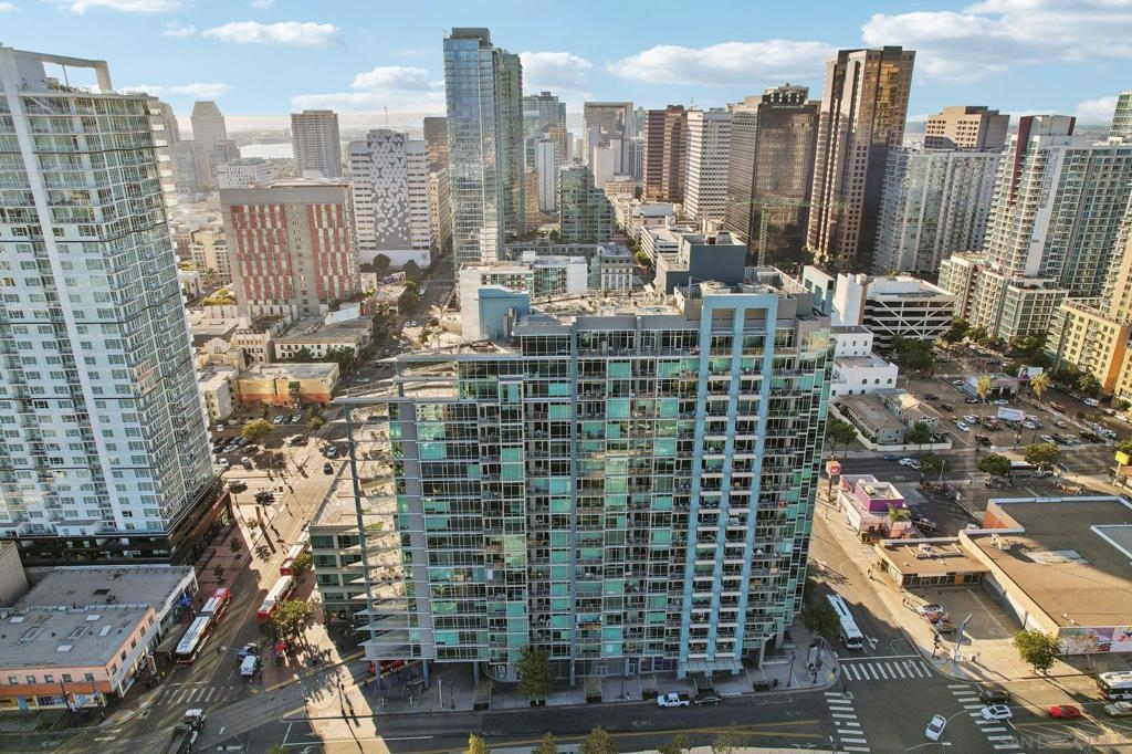 Expansive corner unit at Smart Corner with a private balcony! This bright, open-concept home features high ceilings, abundant natural light, and walls of windows to take in city views. The spacious kitchen is perfect for cooking and gathering, complete with a central island with a breakfast bar, ample cabinetry and counter space, and stainless steel appliances, opening to a large living and dining area—ideal for entertaining. The split-bedroom layout ensures privacy, with a generous primary suite offering an ensuite bath and walk-in closet, plus an additional guest bedroom and full bath. Includes in-unit laundry and two tandem parking spaces. Smart Corner is a secure residential building offering a rooftop terrace with forever 360° views, BBQ and hot tub! There is an onsite gym as well. Ideally located, you can easily access all that Downtown, Balboa Park, and nearby neighborhoods offer, including shopping, dining, nightlife, Petco Park, and convenient access to freeways and public transportation.