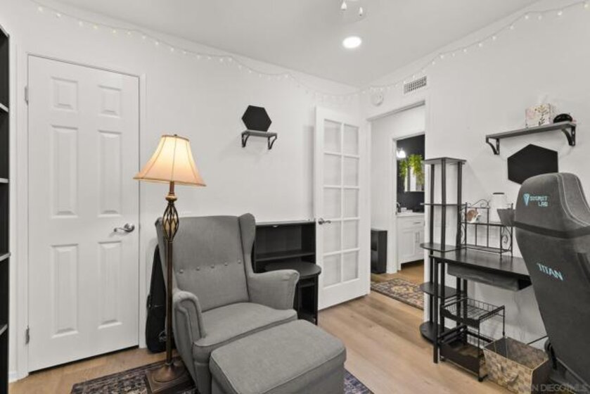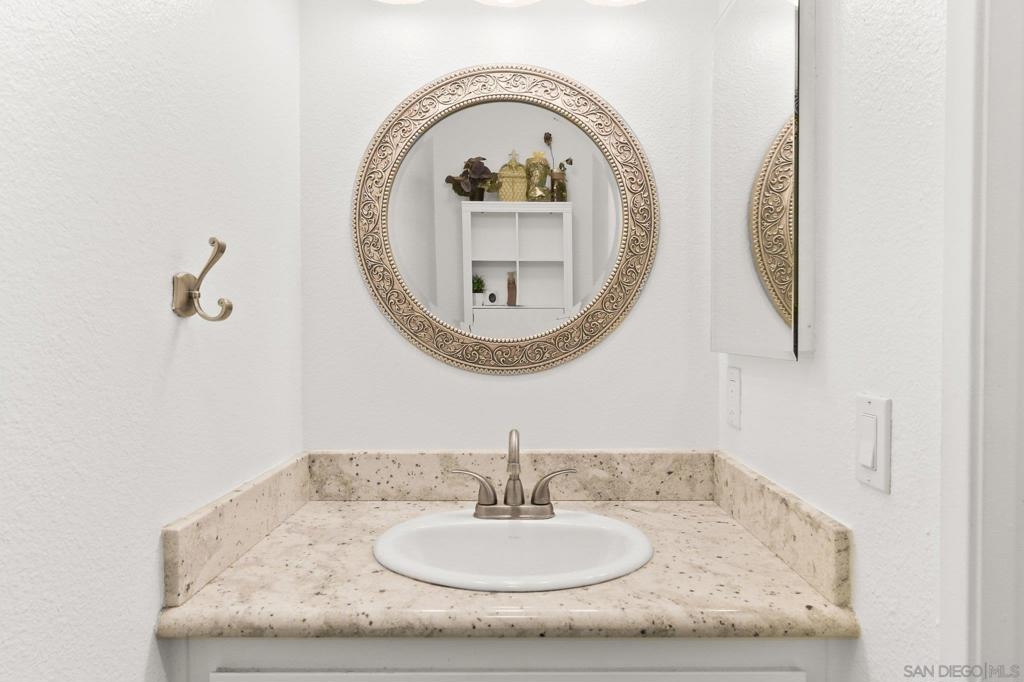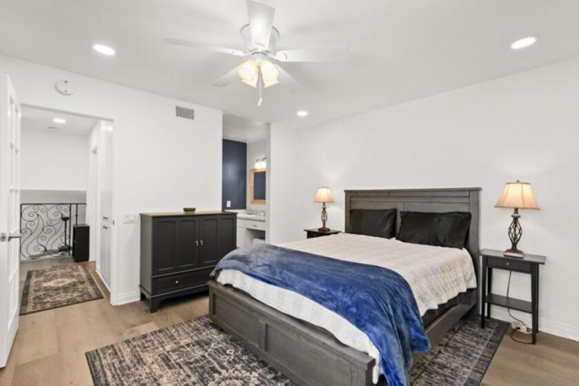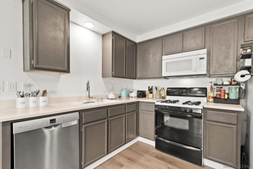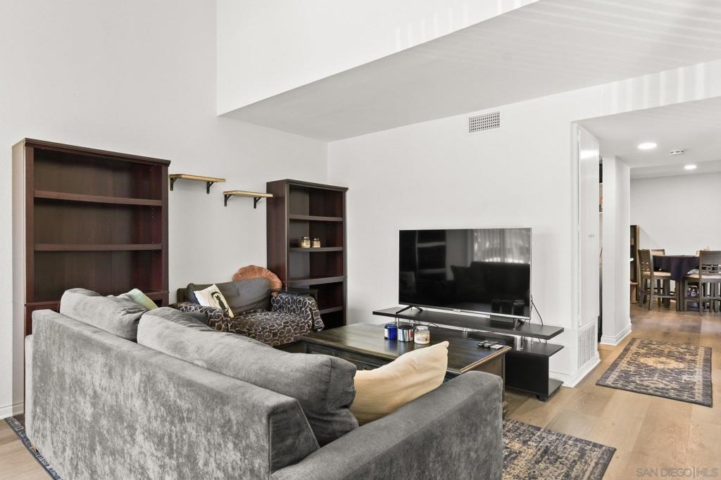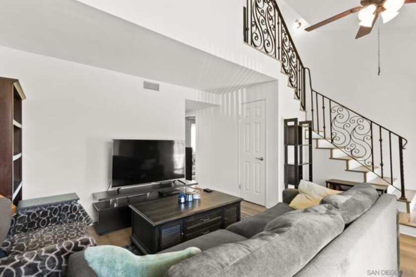 Welcome to Villa Martinique in desirable Tierrasanta. This beautiful 3-bedroom residence offers a highly functional floor plan with stylish updates throughout. The family room with vaulted ceilings creates a bright, open feel and flows effortlessly into the spacious kitchen, featuring recessed lighting, seamless countertops, and a gas range.The main level includes a bedroom with direct access to a large private patio, also accessible from the kitchen—creating an ideal indoor-outdoor living space. A half bath and convenient first-floor laundry room enhance everyday ease. Luxury vinyl flooring throughout and recessed lighting elevate the home’s fresh, contemporary appeal, while a striking new iron staircase railing adds a sophisticated architectural focal point.Upstairs, additional secondary bedroom and a spacious primary retreat with a completely remodeled full bath. Two parking spaces #306 are located directly across from the home, including one covered space. Resort-style amenities including a clubhouse, pool, spa, and tennis courts, scenic canyon walking trails. Close to shopping, dining, and everyday conveniences. The home is further enhanced with a new central HVAC system including ducting. Minutes to I-163,I-805,I-52.