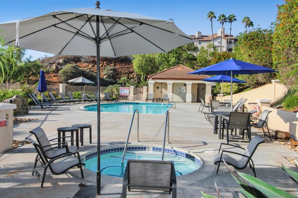Welcome to 11175 Affinity Ct Unit 45, a spacious 2-bedroom, 2-bath home with extra room/loft at approximately 1,178 sq. ft. of comfortable living space in the highly desirable Affinity community of Scripps Ranch. As you enter, you’re greeted by an open-concept layout featuring a bright kitchen to the right, perfect for everyday cooking and entertaining. To the left, a staircase leads to a versatile loft—an ideal space for a home office, guest room, or even a possible third bedroom. The inviting living room with fireplace flows seamlessly onto a huge private deck where you can take in sweeping panoramic views, including a perfect vantage point over the sparkling community pool and spa. Additional highlights include a convenient in-unit laundry closet, two full bathrooms, and a two-car tandem garage providing ample storage. Living at Affinity means enjoying resort-style amenities while being close to the best of San Diego. Just minutes away you’ll find Lake Miramar—ideal for jogging, biking, or kayaking—as well as the scenic hiking trails of Mission Trails Regional Park. Shopping, dining, and entertainment options abound at Mira Mesa Market Center and Scripps Ranch Marketplace. Sports fans will appreciate easy access to the Pechanga Arena and Snapdragon Stadium, while the beaches of La Jolla and Del Mar are only a short drive away. Top-rated schools and convenient freeway access make this home perfect for commuters and families alike.