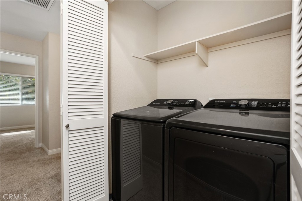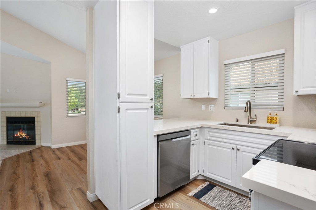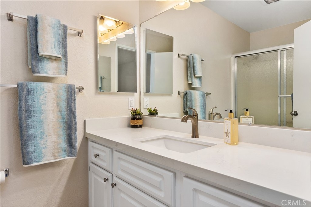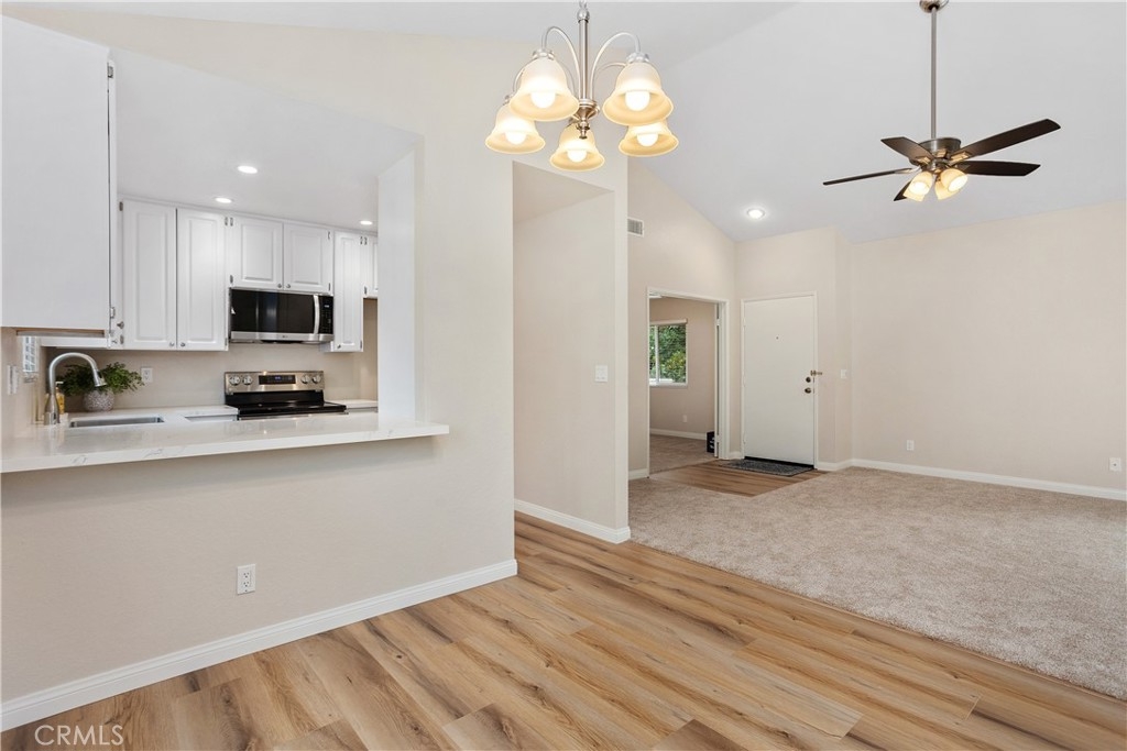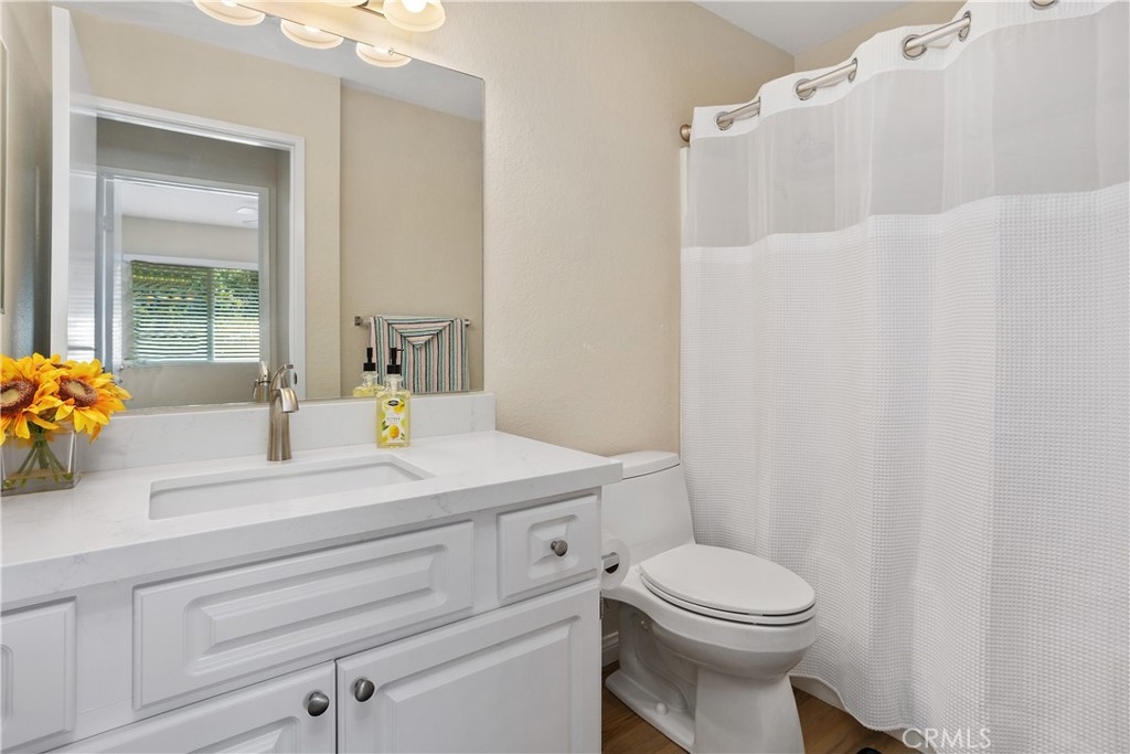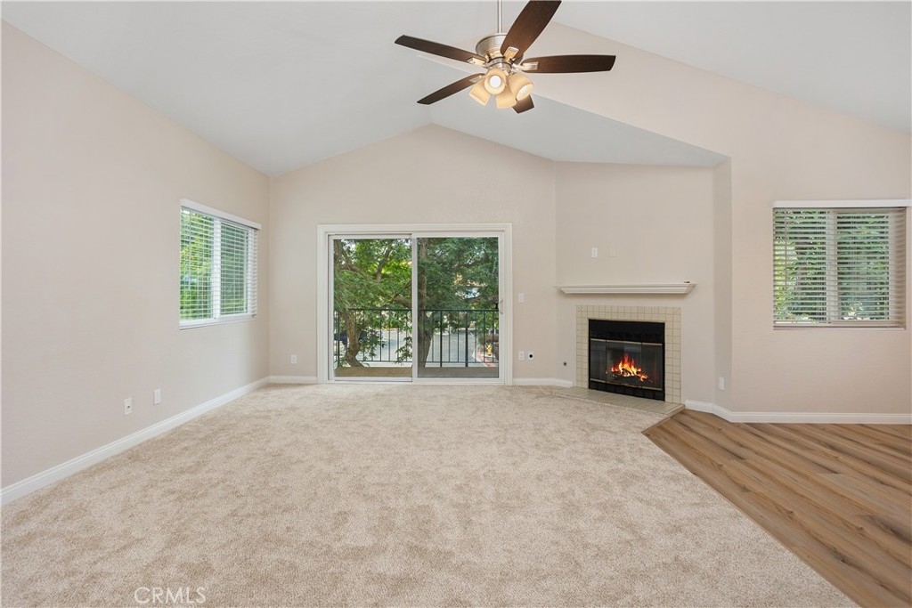 This remodeled turnkey upper corner home is located in the vibrant and desirable community of The Falls at Camino Bernardo. This bright and airy open floor plan comes complete with new paint, all new flooring and baseboards, new countertops, new appliances, new ceiling fans throughout, new lighting, new closet doors, new blinds and newly resurfaced deck area. Also, the entire HVAC system was replaced in 2023 and the water heater was replaced in 2020. Stepping into the entryway, you will notice the fresh paint, luxury vinyl plank flooring and carpet, a vaulted ceiling, a fireplace and a ceiling fan high overhead the spacious living room. Straight ahead from the entry way is the dining area, complete with a new chandelier and charming breakfast bar, perfect for sharing the morning with family. Beyond the breakfast bar is the newly remodeled kitchen, featuring beautifully refaced cabinets, new quartz countertops, new stainless steel appliances, large stainless steel sink and a new faucet. At the end of the hall is the primary bedroom, complete with new large mirrored closet doors and an ensuite bathroom with a gorgeous new vanity. This well-appointed unit also includes in unit washer and dryer closet, a refreshed second bathroom and 2 spacious bedrooms. The Falls features a host of different amenities, including a refreshing pool, relaxing jacuzzi, tennis courts, and a fitness center. Located next to excellent dining, shopping, freeway access and well-rated schools, you will love this Rancho Bernardo beauty!