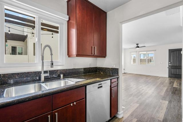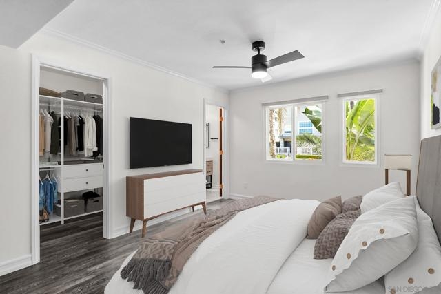 Price Improvement - REDUCED $25K! Enjoy sweeping downtown skyline views from this beautifully updated condo in the heart of Golden Hill. Featuring an open floor plan with abundant natural light, this unit boasts a freshly painted interior, spacious bedrooms, vinyl plank flooring throughout, a remodeled primary bathroom for a spa-like experience, and a private patio overlooking a tree-lined street. The kitchen is equipped with sleek, updated appliances (Frigidaire Gallery & Professional Series) & the unit integrates seamlessly with smart home technology – building wired with Google Fiber Internet. Additional features include in-unit laundry (Full Sized, GE), ample storage and closet space, central heat & A/C + ceiling fans in every room, and 2-car tandem parking in a secure, gated garage—plus an owner-exclusive Universal EV charging station wired directly into the spot + dedicated storage space. This boutique complex, built in 2007 and home to just 29 units, is professionally managed and has recently undergone extensive upgrades and repairs, ensuring comfort and peace of mind for years to come. Easily walk to Golden Hill Park, Balboa Park Golf Course, Grape Street Dog Park, or explore the great eateries in Golden Hill and South Park. With quick access to Downtown San Diego, San Diego International Airport, and major highways (I-5, I-163, I-94), commuting and enjoying the city couldn’t be easier. Some Photos have been Virtually Staged. Recent Building Upgrades Include- Upgraded Lighting & Security Camera throughout community, Building Wide Google Fiber Internet Installation, Full Exterior Painting, Fountain Maintenance, Balcony waterproofing & improvements. HOA covers all exterior features including balconies, bridges, landings & roof. Enhanced Fire Protection, Bi-weekly community cleaning, weekly landscaping, Monthly Exterior Pest/Termite Control & a Professional and Responsive Management Company. B2VAB4COE.