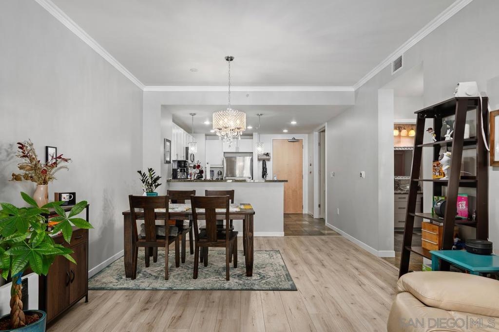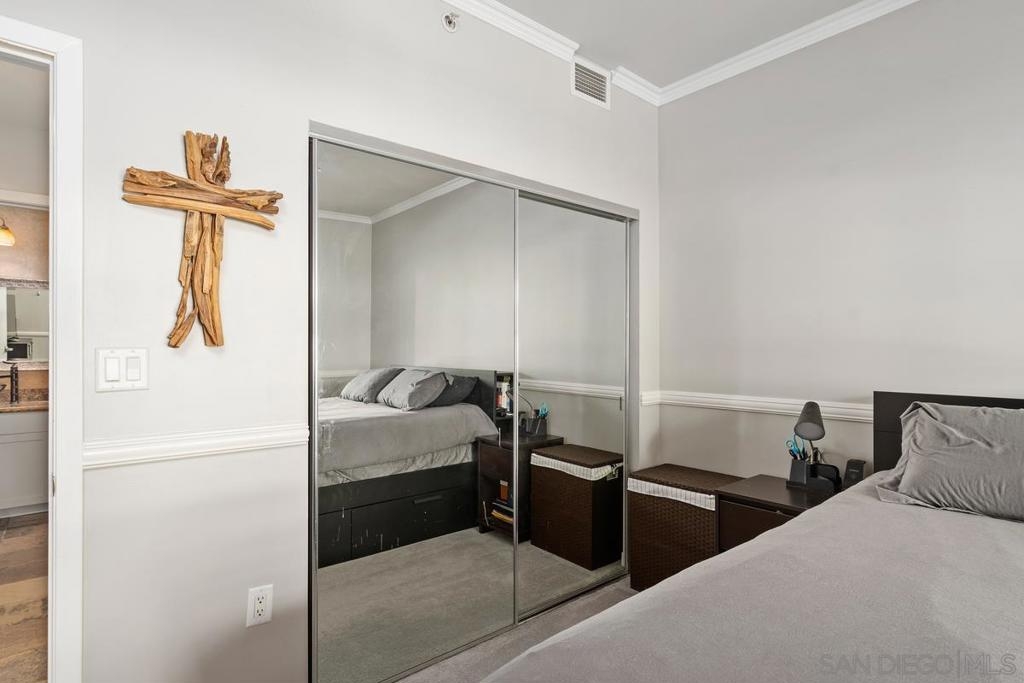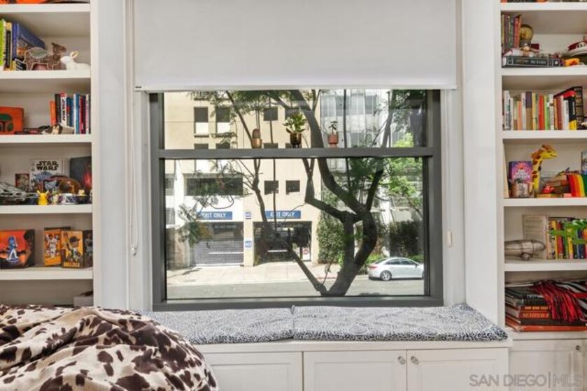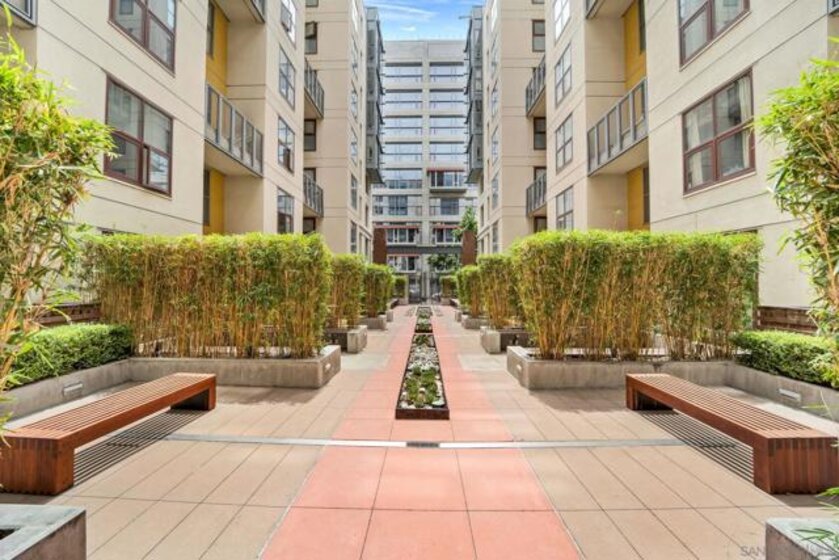 Welcome to The Metrome downtown city living with exceptional blend of modern design and convenient amenities. Whether you’re searching for a smart investment or the perfect place to call home beautifully appointed space. With a desirable southern exposure. Bright living space to include built-in window bench, bookshelves by the large window facing J street with newer window shade treatments and crown moldings. The chef's kitchen is a culinary dream, featuring a breakfast bar, and an array of stainless steel and Energy Star appliances. The open kitchen design flows seamlessly into the living area, perfect for entertaining or enjoying a cozy night in. Retreat to the bathroom, where you'll find a luxurious double sink, granite accents, and a soaking tub, providing a spa-like experience. Step outside to enjoy the beautifully landscaped common courtyard, garden, perfect for relaxation and social gatherings. The building boasts a range of amenities, including a club house, fitness center, recently renovated resident's lounge, and a common media/recreation room plus a Zen garden! For your peace of mind, the property features an intercom system, security gate, and security patrol.Parking is a breeze with underground gated and TWO assigned parking spaces in the covered garage with storage area, and bike storage. Central heating a/c ensure year-round comfort, while the laundry is in the unit for added convenience. Excellent urban living superbly located two blocks from Petco Park, restaurants, coffee houses, boutiques, and more. An easy walk to the embarcadero and seaport village to attend Symphony events at the new Rady Shell, and a lot more downtown festivities. LOW HOA Don't miss the opportunity to own this incredible condo in one of San Diego's most coveted locations. Beautifully landscaped common courtyard, garden, perfect for relaxation and social gatherings. The building boasts a range of amenities,including a club house, fitness center, recently renovated resident's lounge, and a common media/recreation room plus a Zen garden! For your peace of mind, the property features an intercom system, security gate, and security patrol.