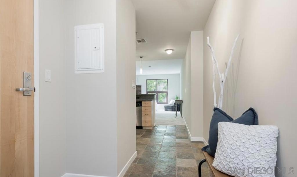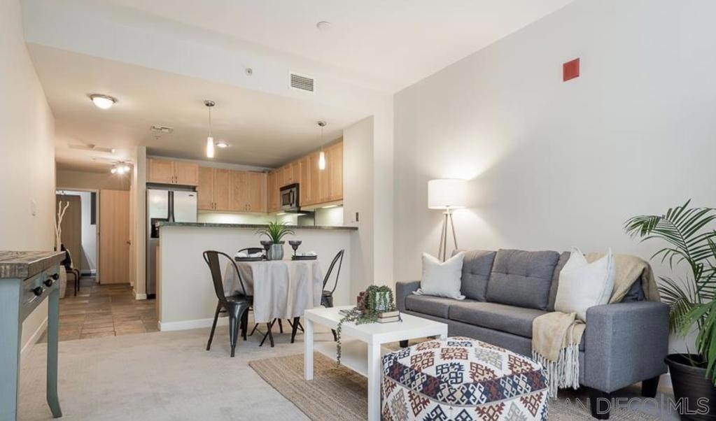 FHA & VA APPROVED! WALK TO PETCO PARK! Perfectly maintained!!! Welcome to urban living at its finest in the heart of San Diego's vibrant East Village! This contemporary condominium offers a perfect blend of modern convenience and city lifestyle. With a thoughtfully designed studio floor plan and 718 sq ft. of living space, there's plenty of room to relax and entertain in the bright and airy residence. Laundry is in-unit, a gated parking space with a storage space are also a major plus. Spacious and sleek kitchen with slate flooring throughout and stainless steel appliances!