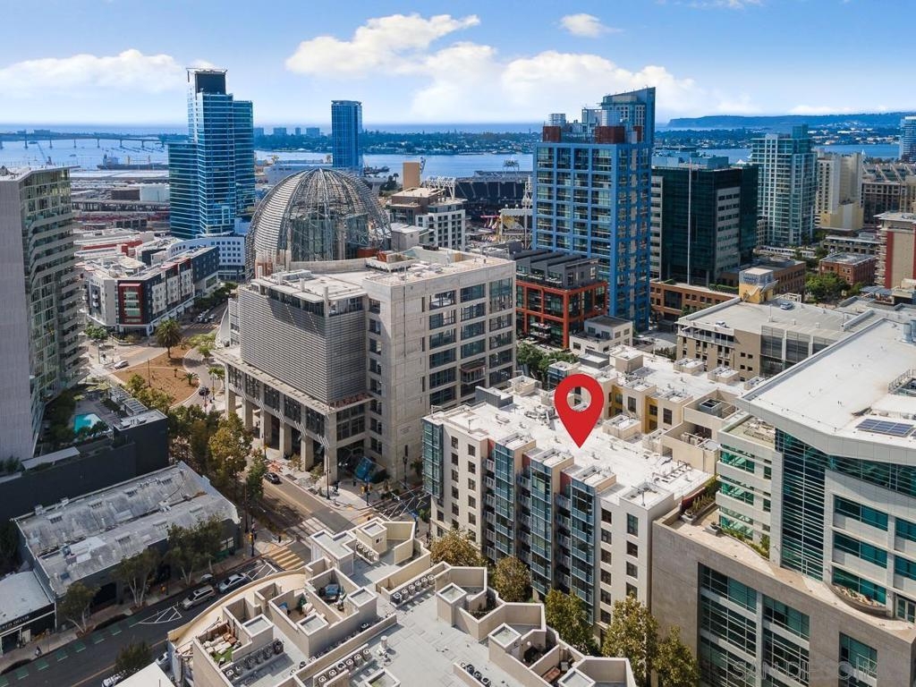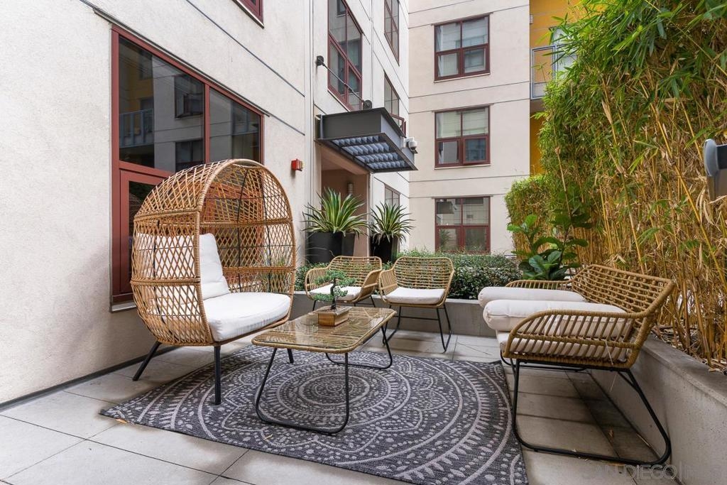 Welcome to this move-in-ready condominium with a serene view of the peaceful courtyard. Indulge in the cozy atmosphere provided by the decorative fireplace or whip up delicious meals in the generously sized kitchen. This unit boasts ample closet space, a convenient washer/dryer setup in the bathroom, and the added convenience of a storage unit in the garage. Metrome offers a fantastic community room equipped with a kitchen, a state-of-the-art fitness center, and is ideally situated in the heart of East Village. Just a short 2-block stroll to Petco Park and a mere 4 blocks to the lively Gaslamp Quarter, where you'll find an abundance of restaurants, bars, and shops to explore. For those needing to travel, the nearby Trolley system provides easy access to UCSD, SDSU, UTC, and various other destinations. In addition, the impressive Central Library, with its art gallery and scenic views of San Diego Bay, awaits your discovery. Don't forget to check out the Quartyard plaza, where you can enjoy a craft beer garden, tempting food trucks, and live music.