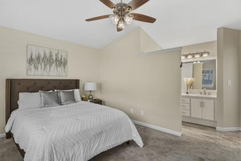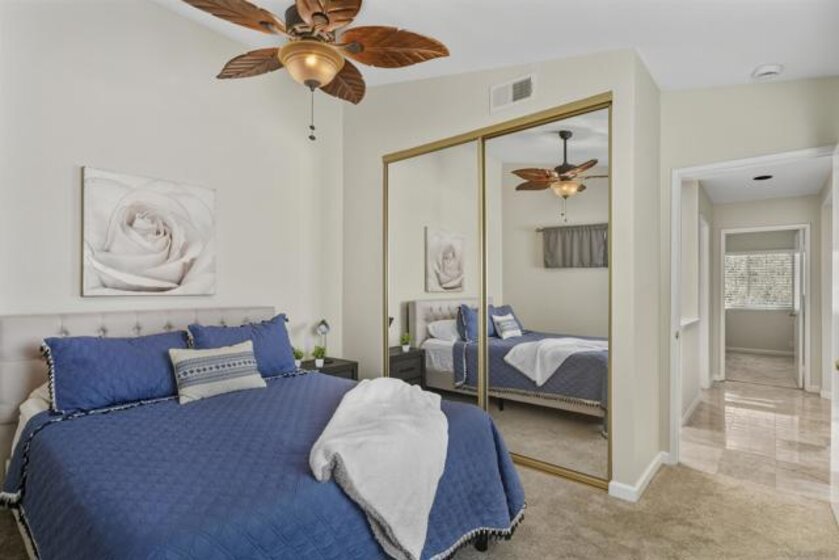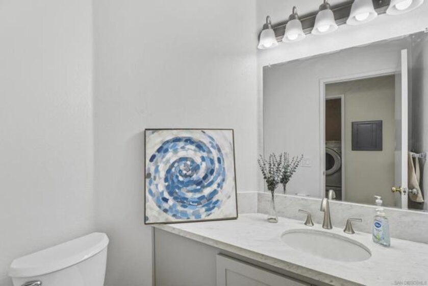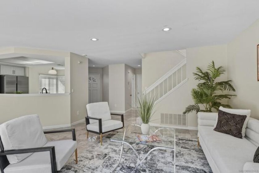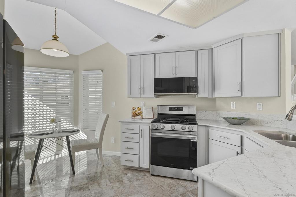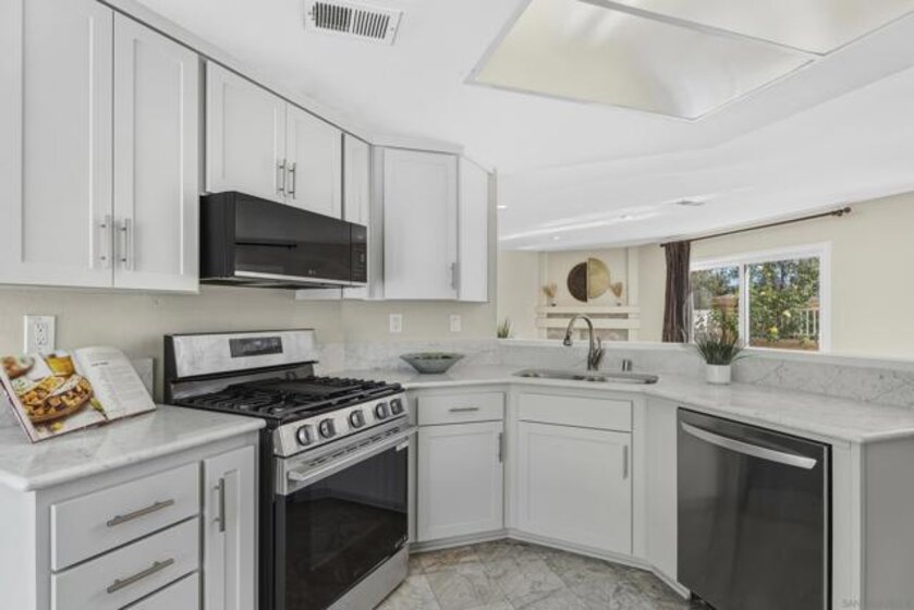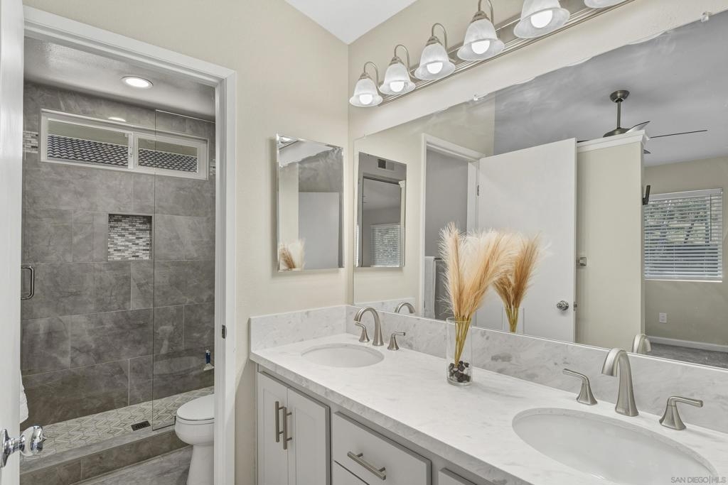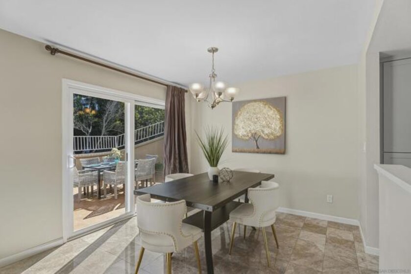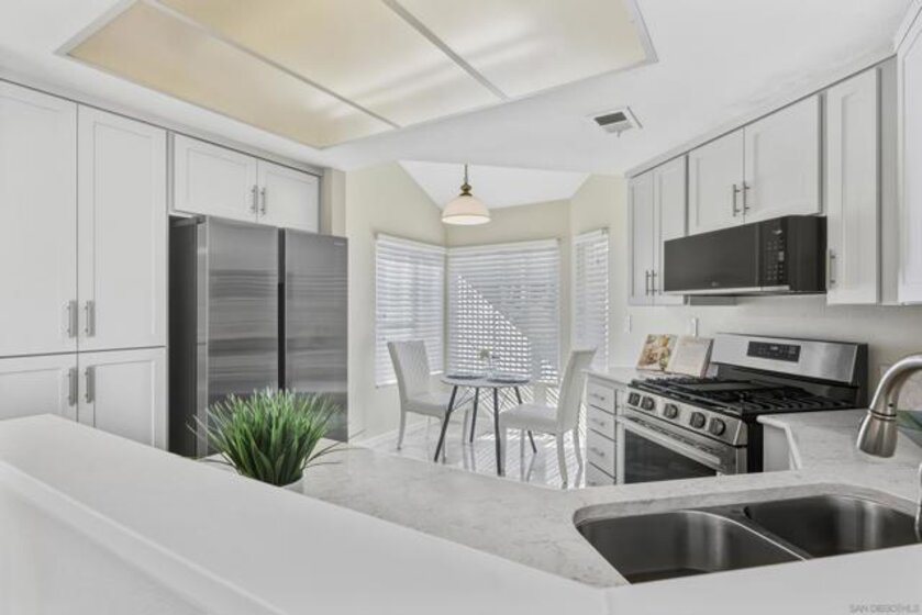 This beautifully renovated turnkey home in the desirable centrally-located Tierra Del Sol complex in Bernardo Heights - is waiting for you! Just a short distance from the sought after Poway Unified School District High School and Middle School, this 3 bedroom, 2.5 bath home offers plenty of natural light into the spacious 1523 sq ft of marble floors and luxurious living. You’ll feel invited by the open floorplan, upgraded shaker cabinets, new appliances, quartz countertops, and spacious bedrooms with their vaulted ceilings, quality ceiling fans and mirrored closets. Relax in your breakfast nook, or on your private back patio with plenty of room to entertain or simply sit, sip your lemonade and enjoy your private garden of roses and a view out to the wooded hillside or the Bernardo Heights Community Center a short distance away. There your HOA gives you access to the Clubhouse, community activities, basket ball courts, tennis courts, pickleball, exercise machines and a well equipped weight room. Additionally, there are meeting rooms, and a swimming pool and jacuzzi to enjoy. Back home, you’ll enjoy your laundry room, two car garage, guest parking. Easy access to the 15 freeway, shopping, and points beyond.