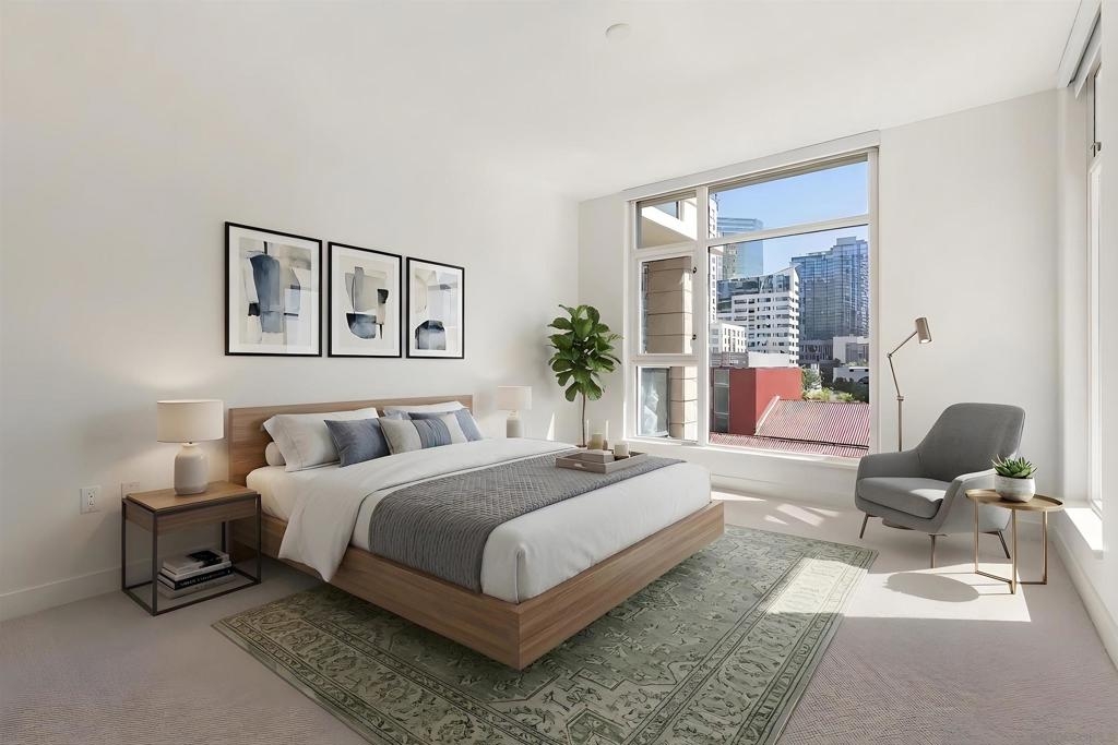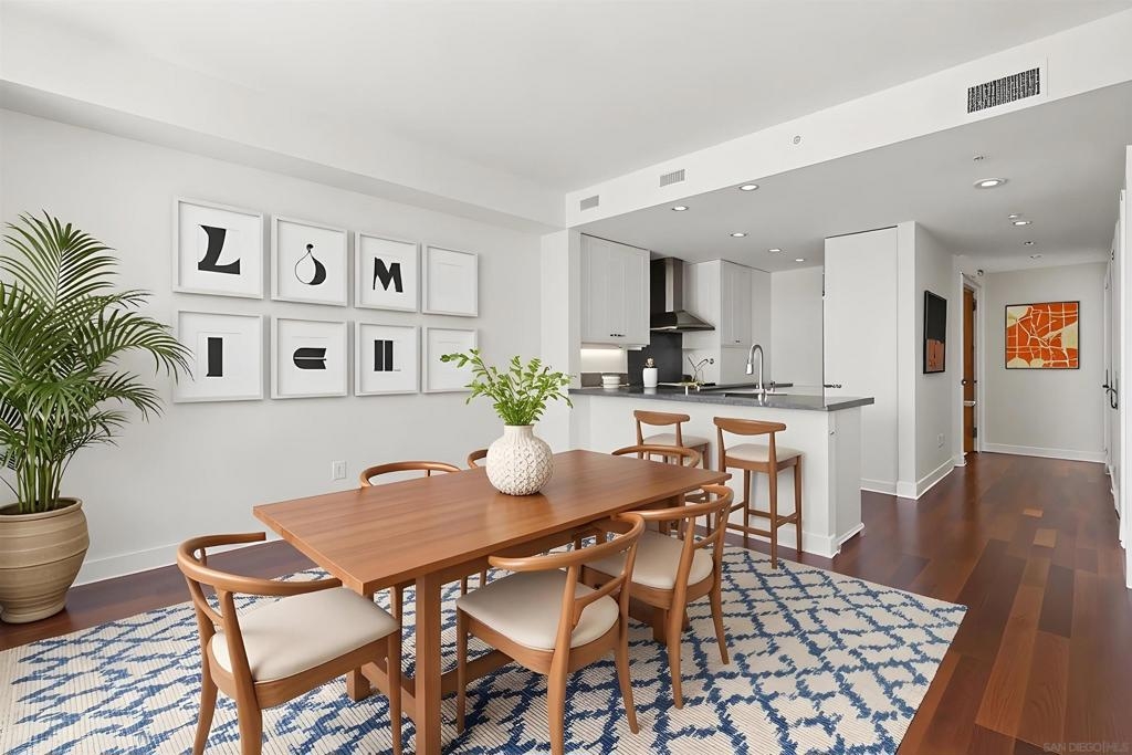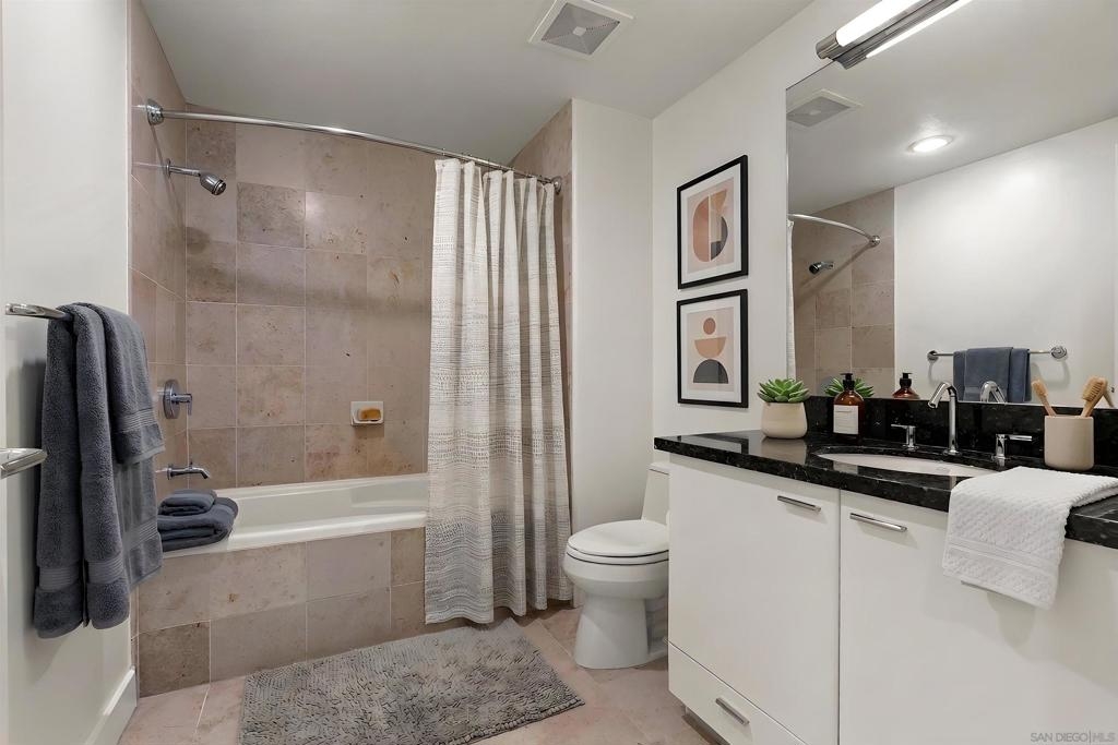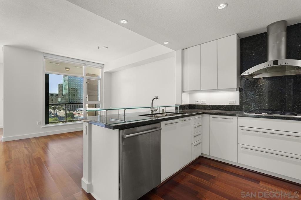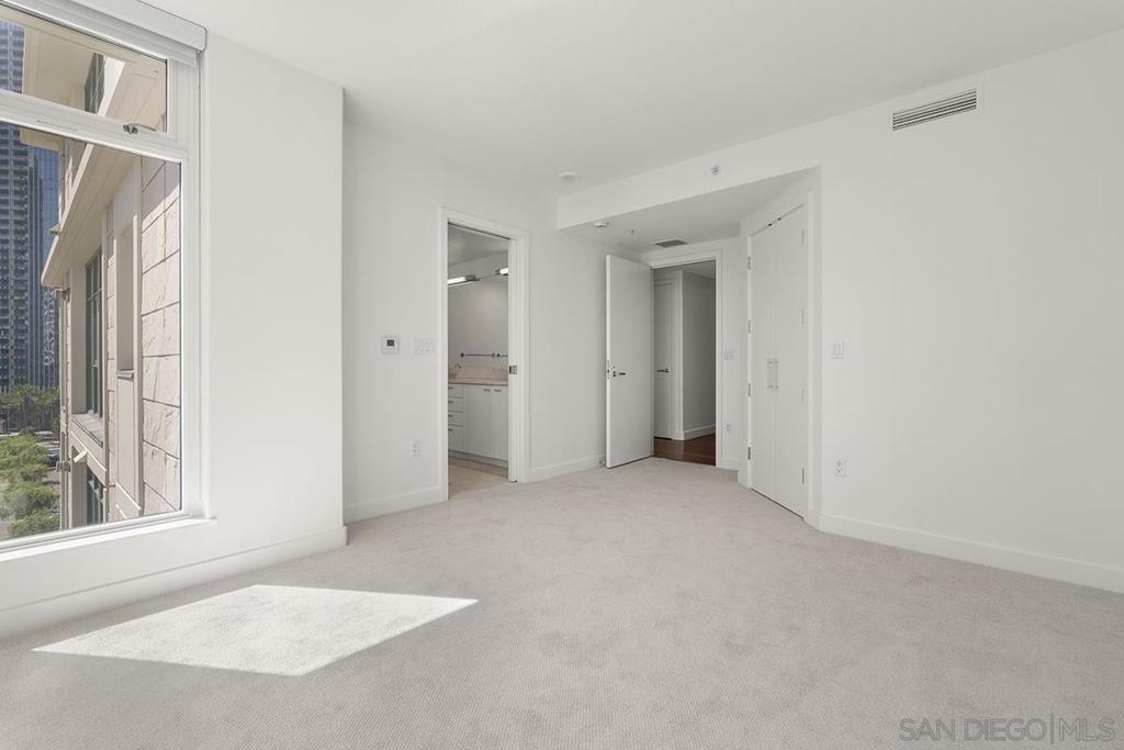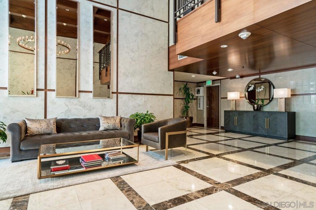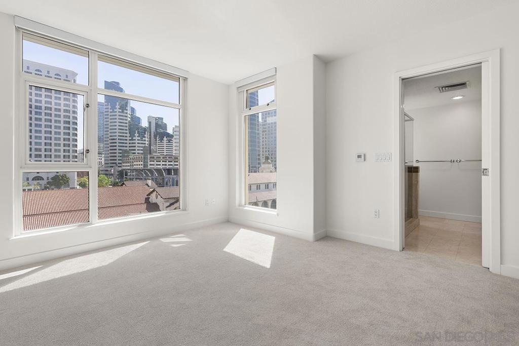 Come see what luxury living all is about at the Grande South! Polished & pristine, this gorgeous condo is highlighted by walls of windows bringing in great natural light while enjoying the beautiful cityscape and bay views from this lightly lived in southeast corner residence. This 7th floor unit features rich engineered wood floors, an ambient fireplace, and an expansive private balcony overlooking the ever-changing city and bustling Embarcadero. The chef’s kitchen boasts premium stainless appliances, recessed lighting, and gleaming granite surfaces plus a breakfast bar. The open living/dining area is perfect for entertaining with a tranquil backdrop to enliven the experience! The spacious primary suite offers sunrise mornings, walk-in closet, ensuite bathroom with frameless shower and dual vanity. Plus, newer upgraded LG ThinQ stackable washer and of storage throughout. Embrace sophisticated urban living on Millionaire’s Row! The Grande offers top-notch resort-style amenities including a newer updated and upgraded fitness center, sauna & steam room, 80-foot outdoor pool, barbecue area, club room, fully furnished meeting room, guest suite, and bicycle storage. Located across from the Embarcadero, you are sure to enjoy the prime location walkable to the waterfront, Little Italy, and Rady’s Shell at Jacobs Park, a unique live music venue and home of the San Diego Symphony! Also enjoy proximity to the future life science and biotechnology research development The Research and Development District (The RaDD) at the Embarcadero and the sustainable tech-focused Horton Plaza Redevelopment in the center of the city. Some photos are virtually staged. Builder indicated 1336sqft, assessor’s record states 1227sqft.