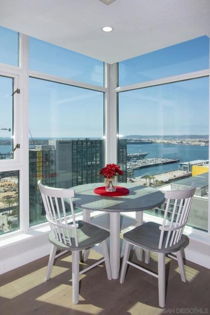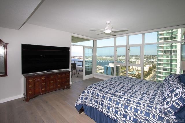 Stunning, stylish, fully furnished, exquisite 2022 remodel, move-in ready. Sweeping 180 degree panoramic Pacific Ocean views from La Jolla to Mexico from this spectacular 23rd floor downtown waterfront condo overlooking cruise ships, sailboats, marine traffic and gorgeous sunsets from the premier location on San Diego Bay. The most sought after 3 bedroom floor plan on the Front Porch of Millionaire's Row. Tasteful interior furnishings. Totally remodeled kitchen, dining room, living room, bedrooms, bathrooms & flooring. Floor to ceiling views from most every window + two balconies for wonderful entertaining. Includes Webpass internet and Amazon Fire Stick streaming services to three TVs. Turn key beautiful remodel! Remodeled light and bright kitchen with new countertops, S/S sink, single handle faucet fixture, reverse osmosis water filtration system and backsplash; new triple paned windows, LED lights throughout, new ceiling fans, new bathroom vanities, countertops, toilets, shower and wood vinyl flooring; and newly painted condo with color coordinated designer paints. Like new GE washer and dryer. Upgraded double hanging rods and double shelves in closets for additional hanging and stacking clothing. Separate Living Room and Master Bedroom patios (totaling 300 square feet) overlooking San Diego Bay. Two prime side by side parking spaces (each 9'x18') assigned to this unit on the premier P1 parking level plus a large private assigned 7ft x 4 ft x 8ft deep chain link storage unit (224 cu. ft.) in the fob locked storage room close by on the premier P1 level in the gated, underground parking area. The Grande South at Santa Fe Place combines exceptional architecture, extraordinary views, spacious landscaped gardens, private tree lined courtyards, visitor’s suite with parking to accommodate guests & family, and total comfort to its owners. Like no other. Located in downtown San Diego’s premier Columbia District, it rises 39 stories high with 221 residences directly above and the front door to San Diego Bay, providing spectacular 270 degree views of the Pacific Ocean and downtown San Diego Skyline. For those owners working from home, the front office/3rd bedroom adjacent to the living room has absolutely the most gorgeous setting over San Diego Bay and the Pacific ocean. The Grande South features all the luxuries of the finest resorts including 24 hour concierge service plus physical and closed circuit surveillance camera security, onsite professional property management, facilities director and building maintenance staff, 80 ft. outdoor swimming pool and spa, fully equipped fitness center, separate sauna and steam rooms with private men’s and women’s locker rooms with showers, central water conditioning system, window cleaning, 24 hour roaming attendant, water, electric fireplace, bicycle storage, huge meeting room and lounge area next to the newly designed lobby with full kitchen, entertainment and bar areas. Resident access only to all entrances and parking. Walking distance to international cruise ships, Little Italy, the Gaslamp District, Seaport Village, Waterfront Park, the Embarcadero, the USS Midway aircraft carrier museum, a multitude of shops and restaurants, the future Manchester Gateway project and much more. Five minutes to the San Diego Airport; PETCO Park, home of the San Diego Padres; Sea World and, of course, the famous San Diego Zoo. You have everything at your fingertips.