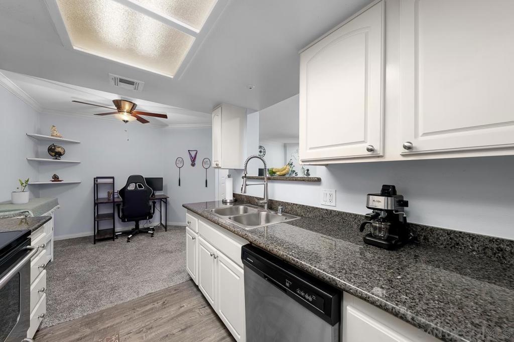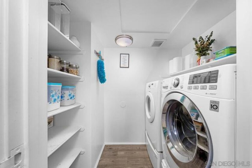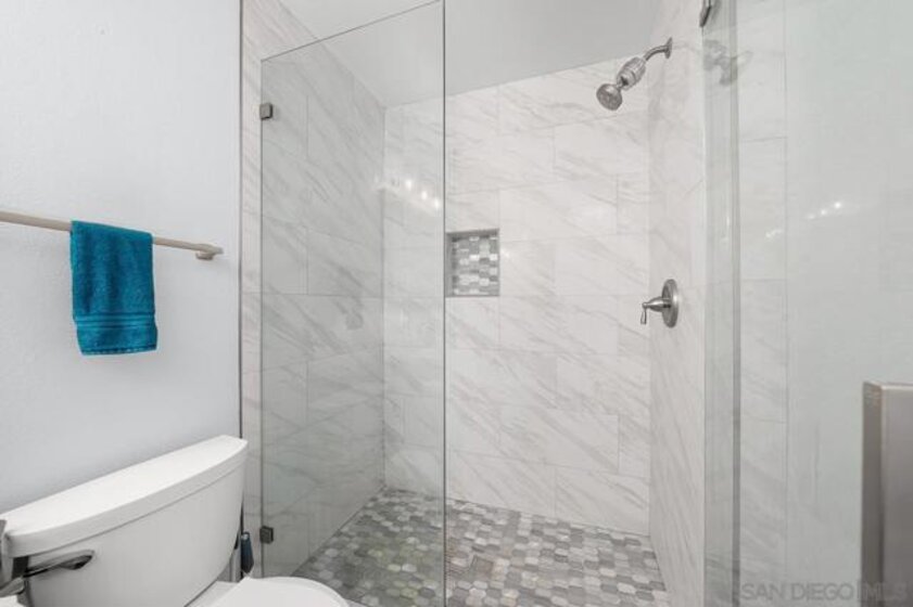 Welcome to this beautifully upgraded top-floor condo in the highly sought-after Poway Unified School District. This turnkey home is filled with natural light, has no neighbors above, and overlooks one of the serene pools in the community. Inside, you’ll find thoughtful updates throughout, including a newer central AC unit (installed last year), a brand-new water heater, newer recessed lighting, and a newer microwave. The spacious bathroom was remodeled in 2022 with a sleek modern tile shower, dual sinks, a stylish vanity, and enhanced plumbing to help prevent clogs. Additional recent upgrades include a newer shower pilot, a dual-pane balcony door for noise reduction & a dual-pane bedroom window complemented by plantation shutters. The balcony also features two sets of exterior blinds for added privacy and comfort, while a newer steel security door at the entry is perfect for letting in the breeze. One of the standout features is the full-sized in-unit laundry room that doubles as a pantry, a rare convenience in condo living. The community offers resort-style amenities, including two pools, a spa, gym, sauna, tennis/basketball court, and racquetball court. The location is truly unbeatable! Just steps from Rancho Bernardo High School and Rancho Carmel Village Shopping Center, and a short drive to Carmel Mountain Plaza, which boasts Costco, Trader Joe’s, Target, Sprouts, Home Depot, and countless other shops and dining options. Easy access to both the 15 and 56 freeways makes commuting a breeze. With its prime location, extensive upgrades, and highly desirable school district, this home is a rare find that combines comfort, convenience, and lifestyle.