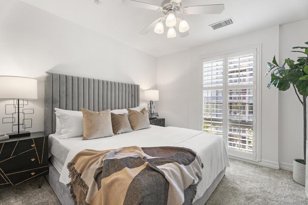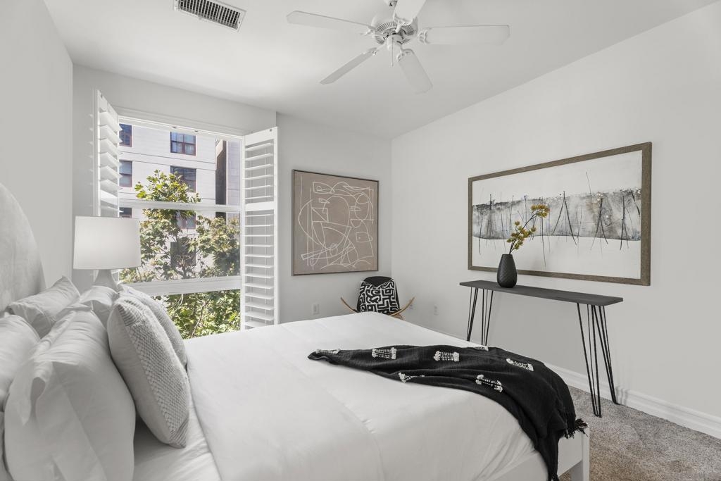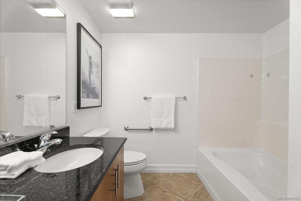 Huge price improvement and interest rates dropping! Snap this one up RIGHT NOW! The perfect East Village retreat! This fantastic 4th floor condo at Park Boulevard faces West and has a spacious layout with the bedrooms located on either side of the living room. It's just perfect for any living arrangement! Granite counters, stainless Kitchen Aid appliances, and bountiful cabinet space finish off the Kitchen. The generous living space provides for a dedicated dining area and a delightful balcony extends your living room to the outdoors. Plantation shutters dress up the double paned bedroom windows and custom window coverings accent the living room slider. Gorgeous enginereed hardwood gives a rich feel to the great room while the modern pendant lighting ties it all together. Full sized laundry, and walk in closets make living here even more enticing. TWO car parking in the garage (tandem) is included. Walking distance to so many downtown attractions and just steps to the trolley line to zip you just about anywhere in SD county with ease. Truly an urban residence with tons of convenience!
